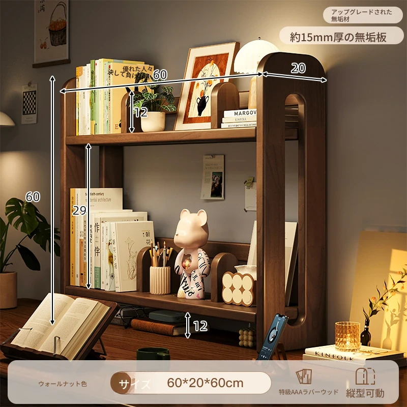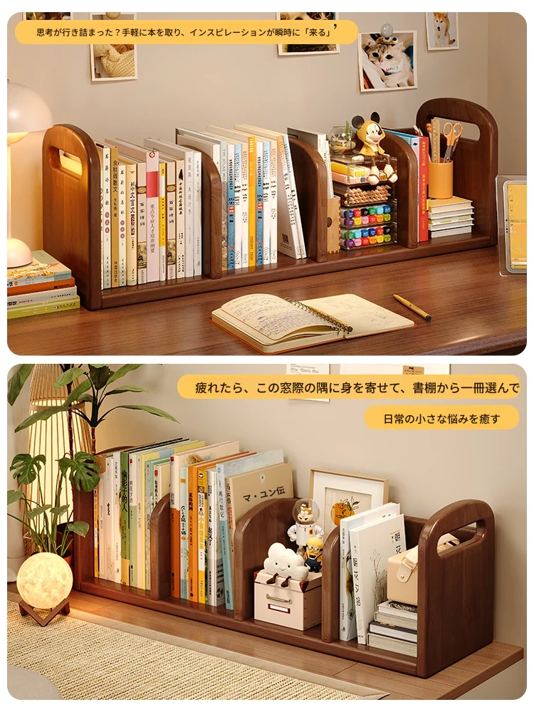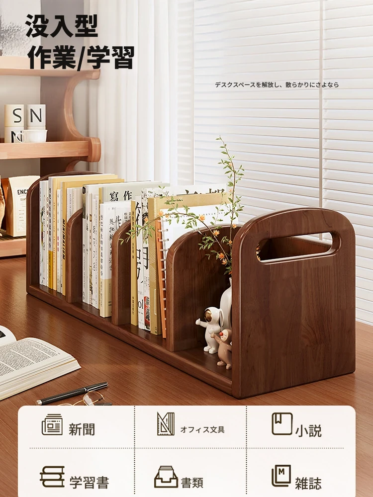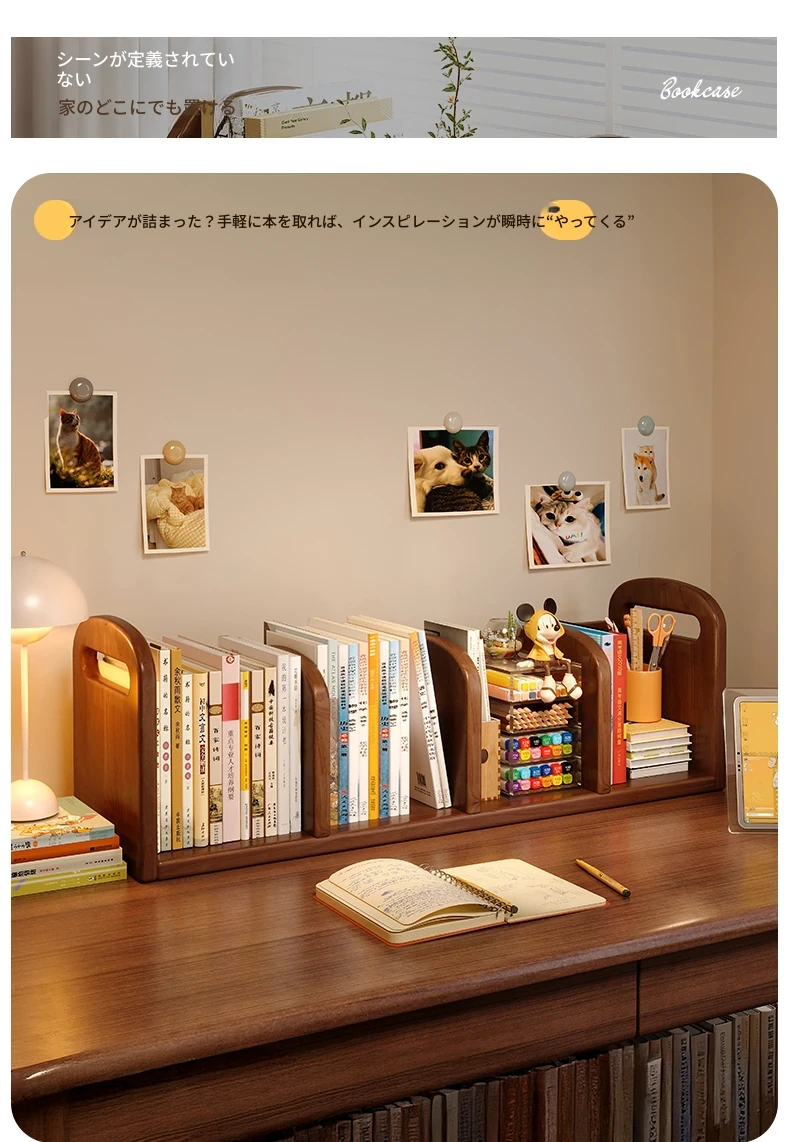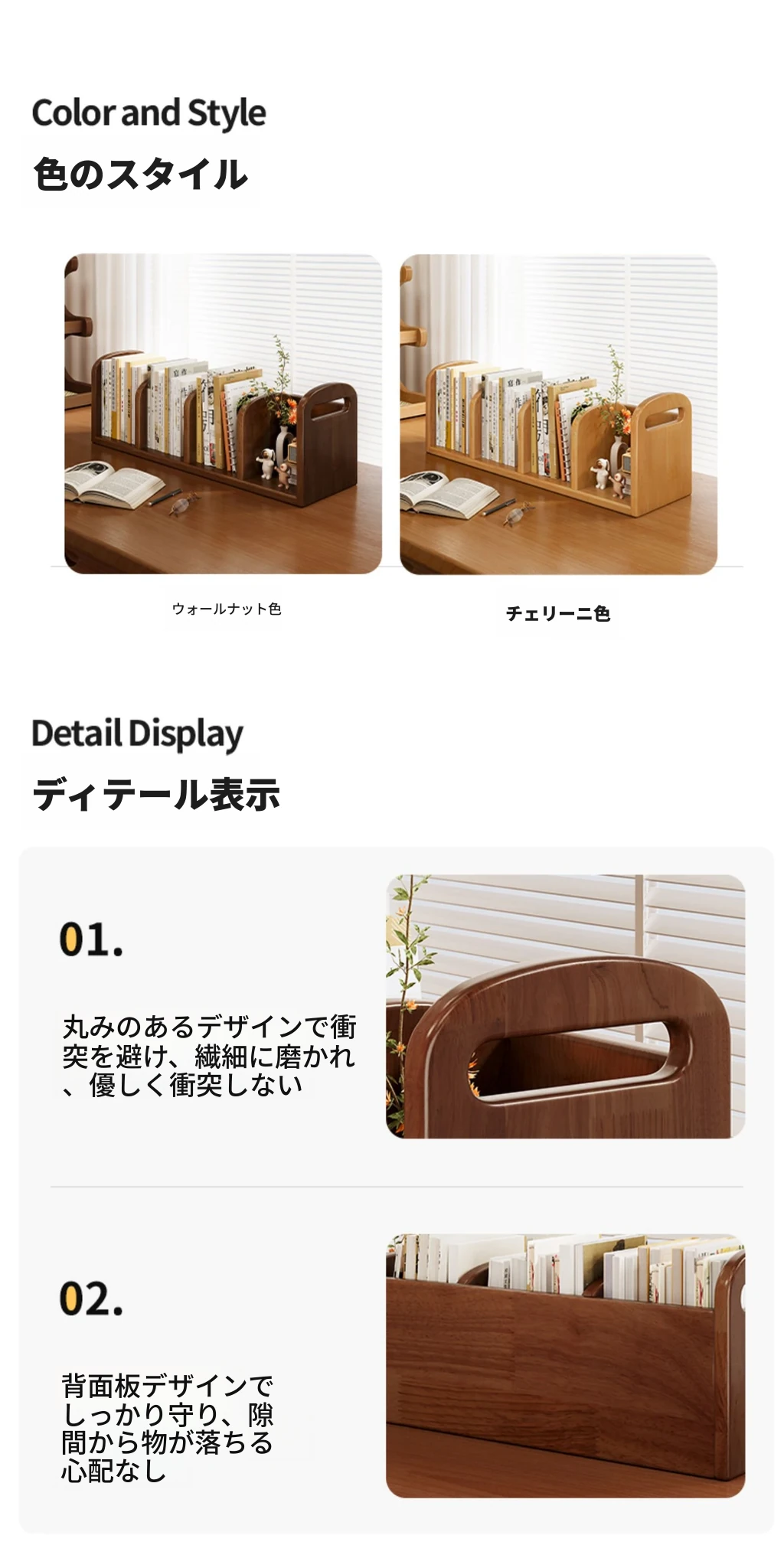 高級感あふれる無垢材デスクシェルフ - スタイリッシュなデスク上の収納ラック!寝室やリビングに最適な本や小物を美しく整理できるアイテムです。あなたの空間を格上げする収納ソリューション!