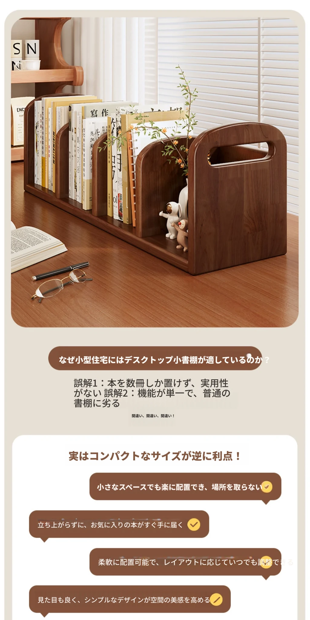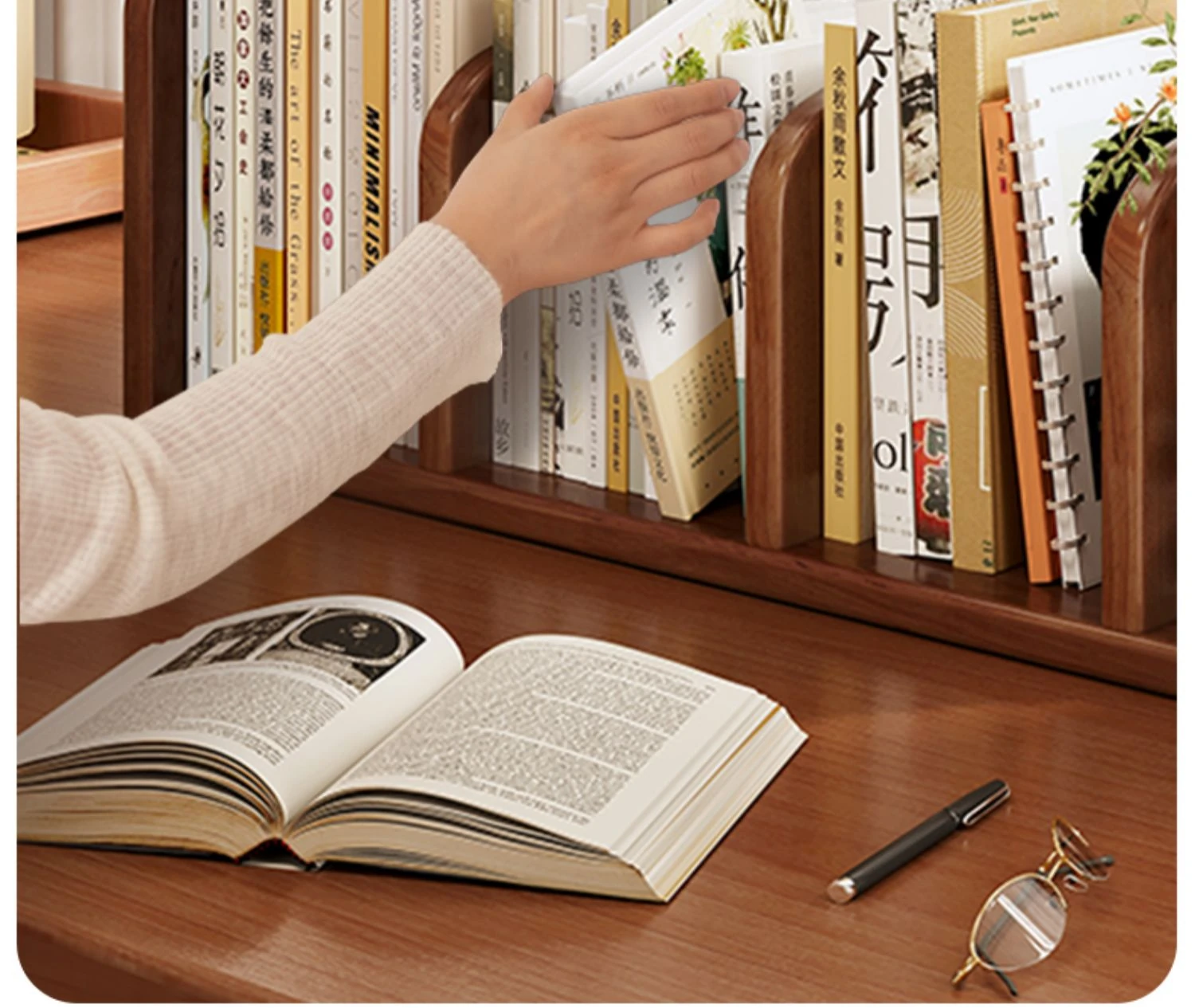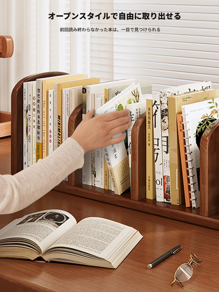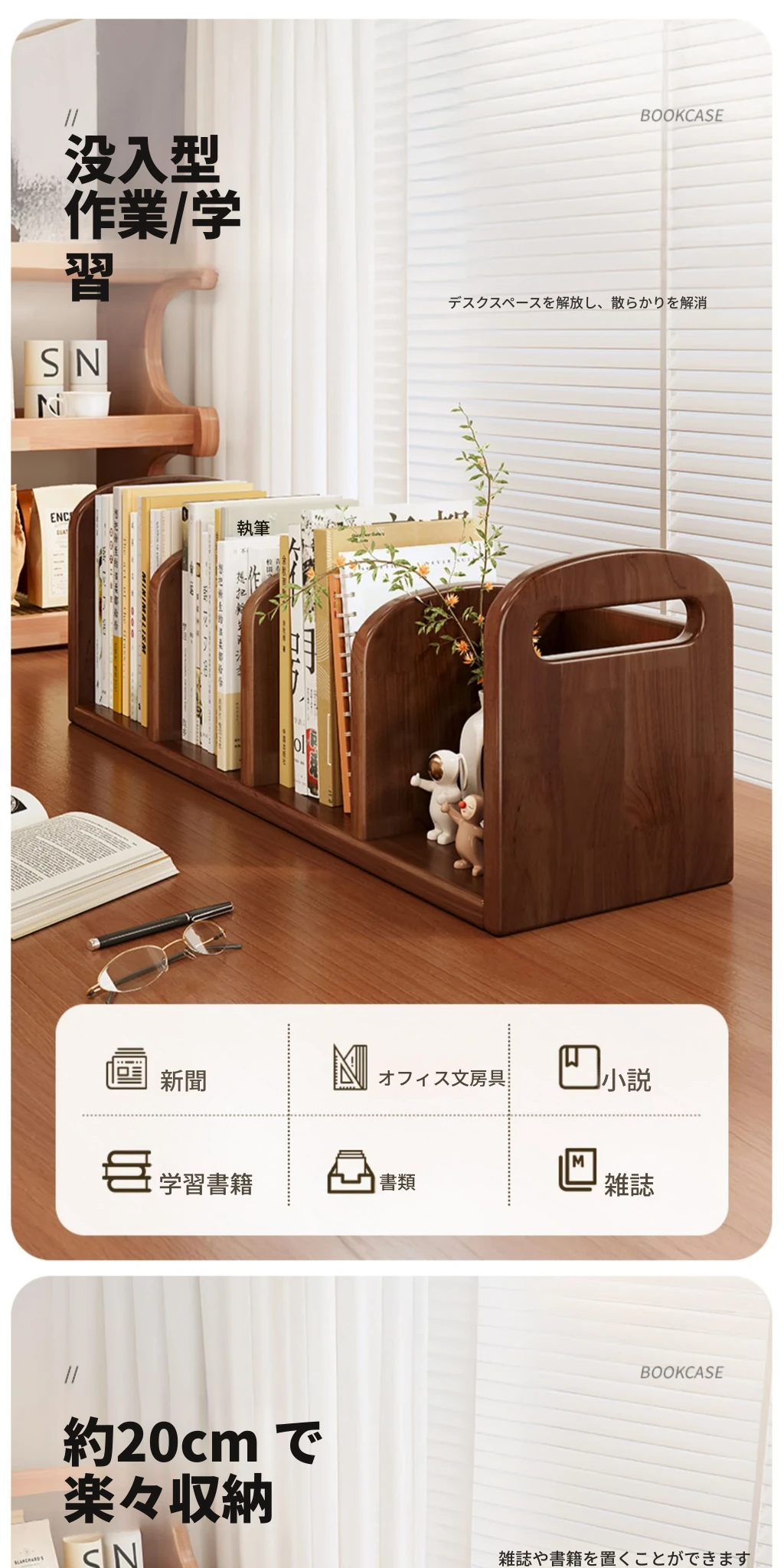 高級感あふれる無垢材デスクシェルフ - スタイリッシュなデスク上の収納ラック!寝室やリビングに最適な本や小物を美しく整理できるアイテムです。あなたの空間を格上げする収納ソリューション!