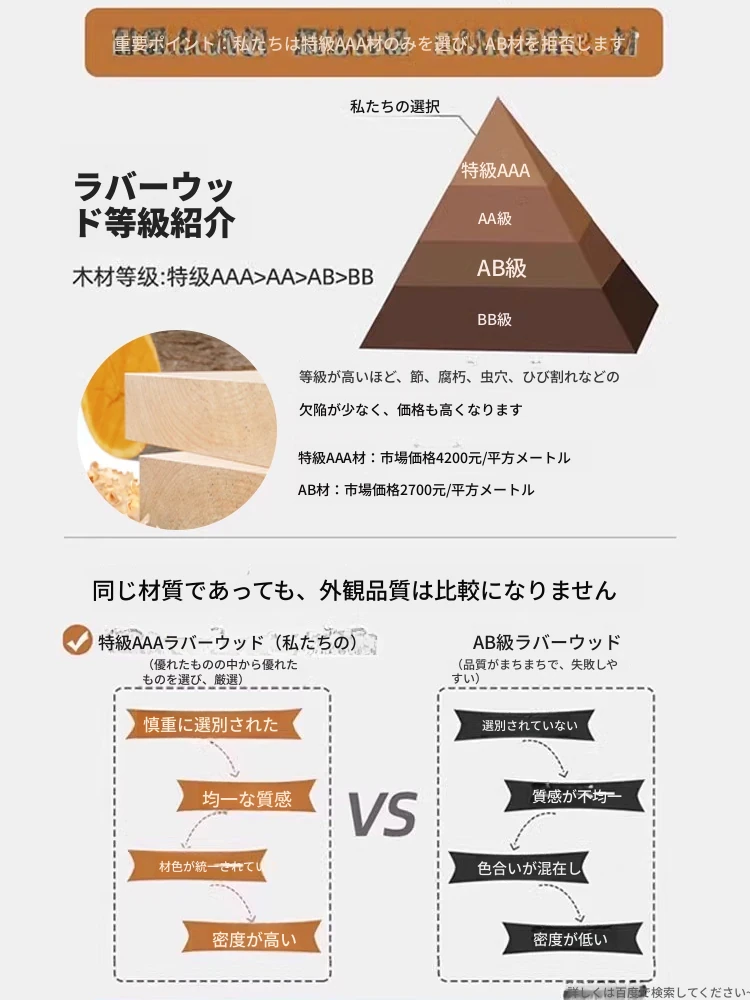 【全実木特級AAA輸入ゴムの木】三段チェリー色