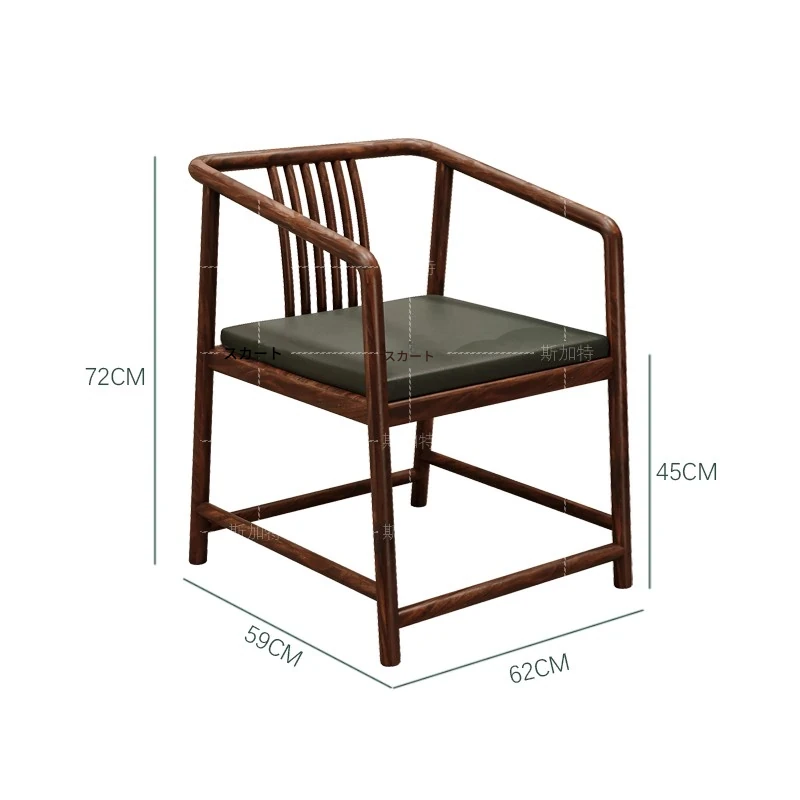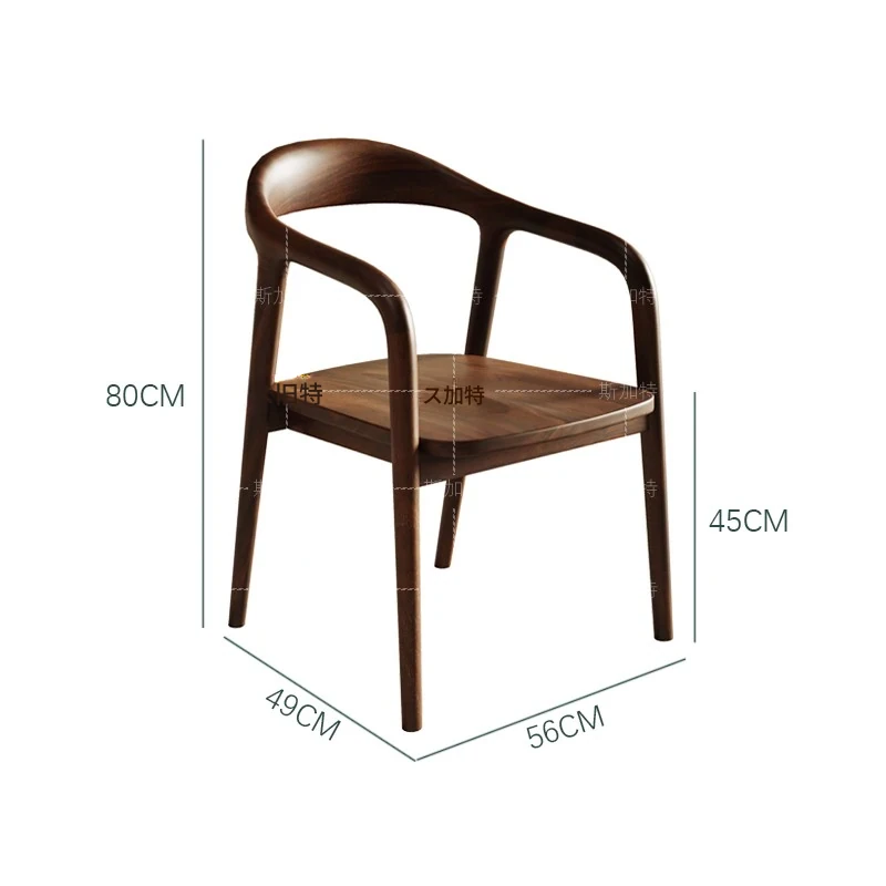 南米産ウォールナット無垢材の高級ダイニングチェア - 新しい中式のシンプルでモダンなデザイン、オーク材を使用した家庭用・オフィス用のリラックスチェア!快適さとスタイルを両立させた一品。