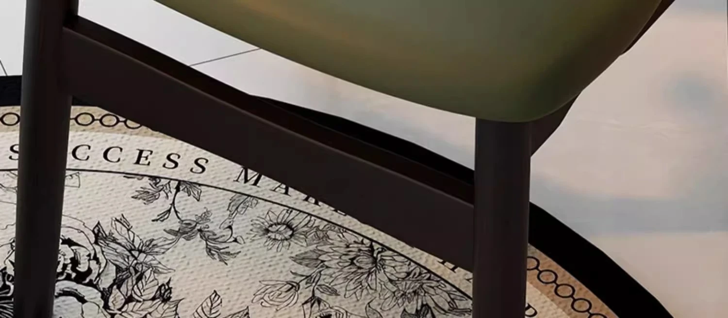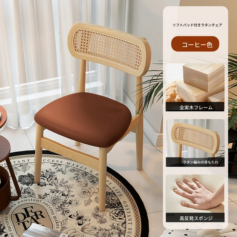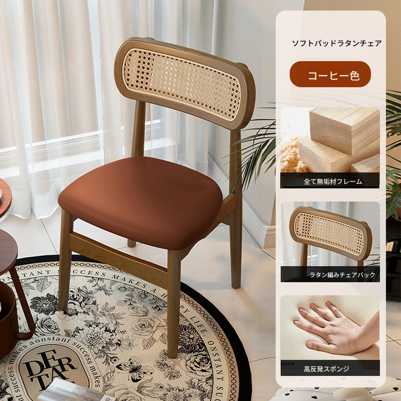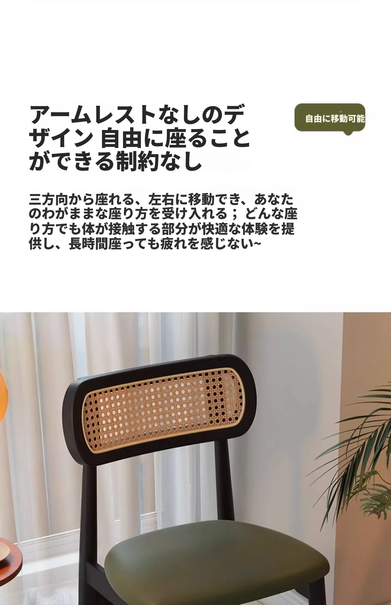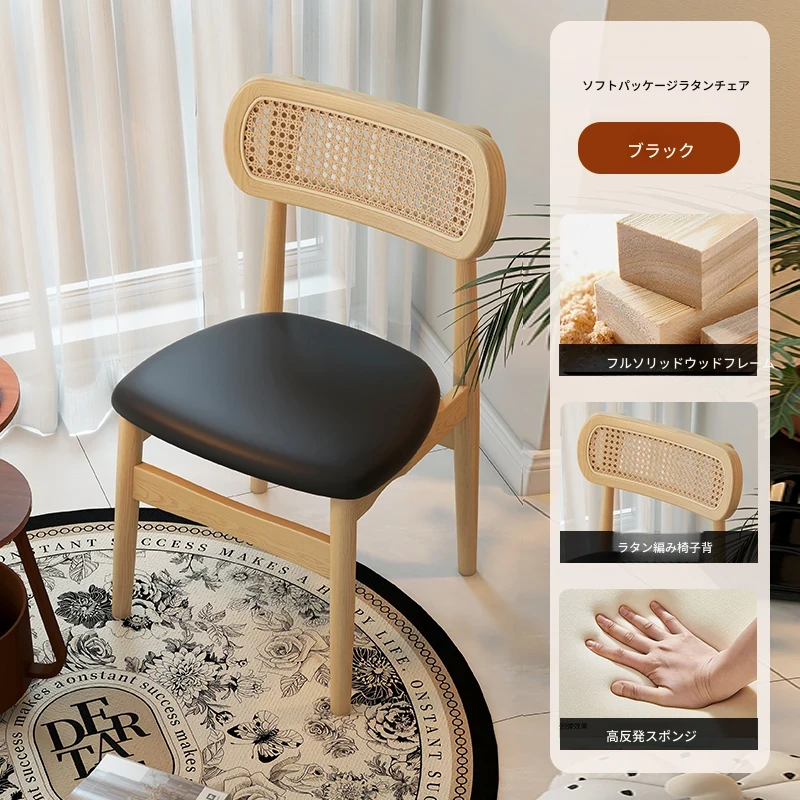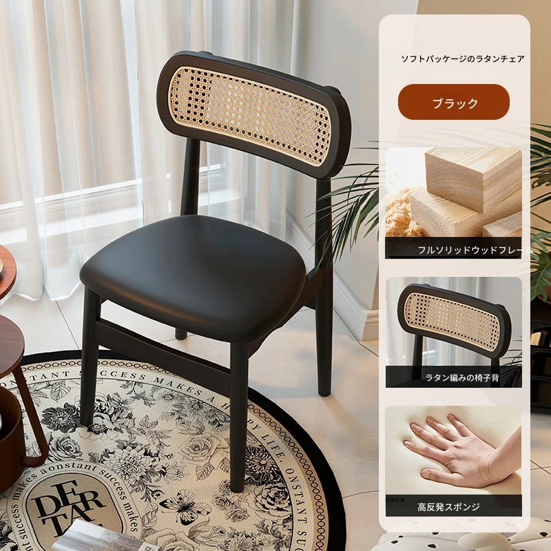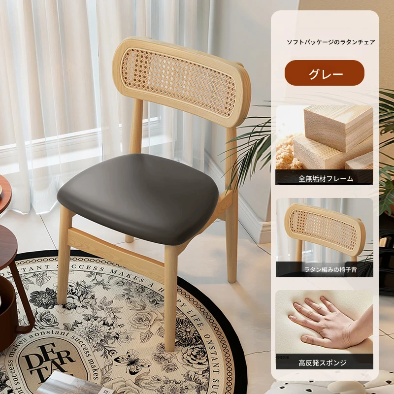 高級感漂う実木製ダイニングテーブルセット|レトロな背もたれ付きフランス風ラタン編みダイニングチェア|リラックスできる家庭用チェア|グリーンアイデザインの特別な椅子で、食事の時間をより特別に!