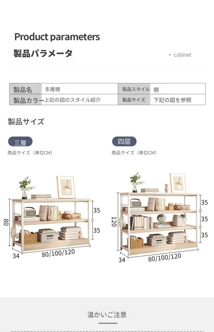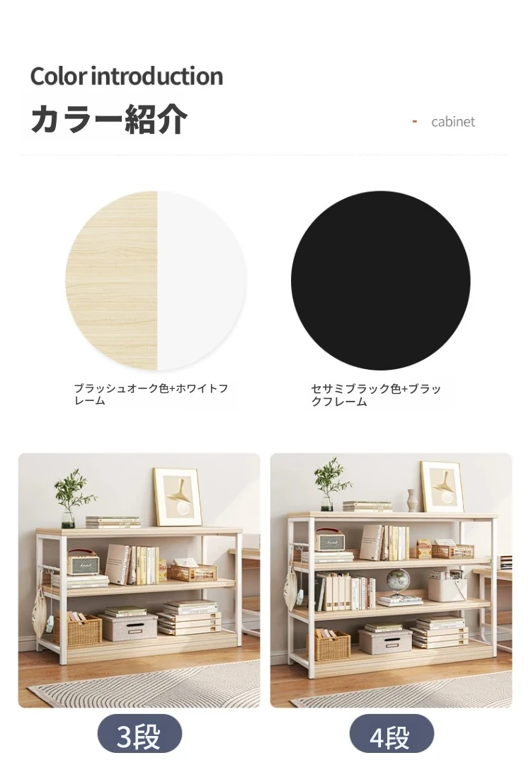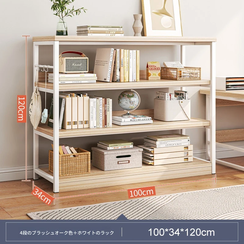 【太いスチールフレーム-4段】100cm-ブロンズオーク色+ホワイトフレーム★
