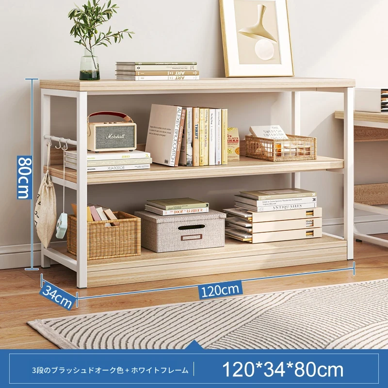 【太いスチールフレーム-3段】120cm-ブロンズオーク色+ホワイトフレーム★