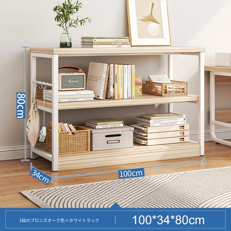 【太いスチールフレーム-3段】100cm-ブロンズオーク色+ホワイトフレーム★