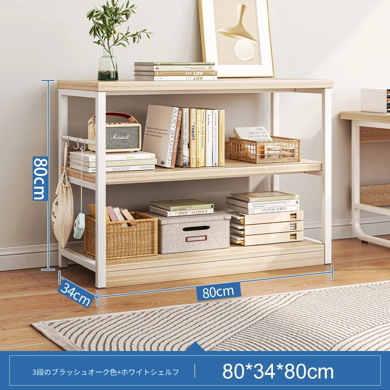 【太いスチールフレーム-3段】80cm-ブロンズオーク色+ホワイトフレーム★