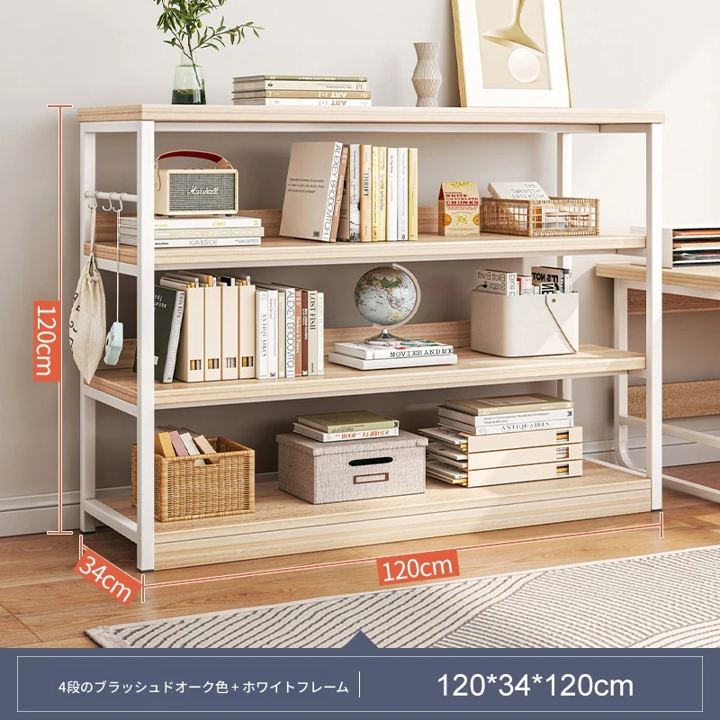 【太いスチールフレーム-4段】120cm-ブロンズオーク色+ホワイトフレーム★