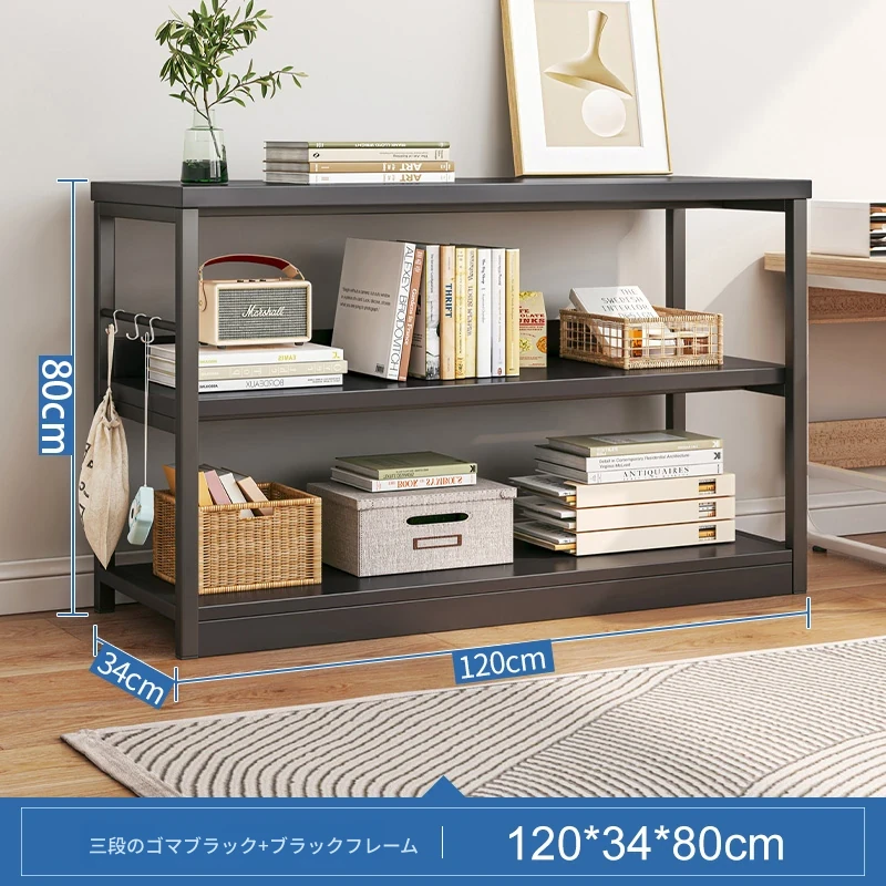 【太いスチールフレーム-3段】120cm-ゴマブラック色+ブラックフレーム★