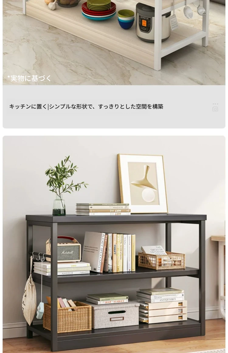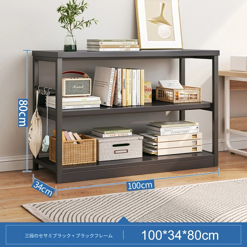 【太いスチールフレーム-3段】80cm-ゴマブラック色+ブラックフレーム★