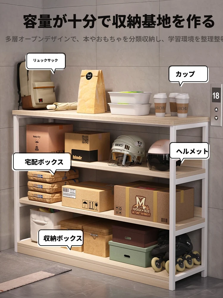 エレベーター前の宅配便ラック - 便利な多層収納棚で、荷物をスッキリ整理!玄関を美しく保つための必需品、雑貨や小物もすっきり収納できます。