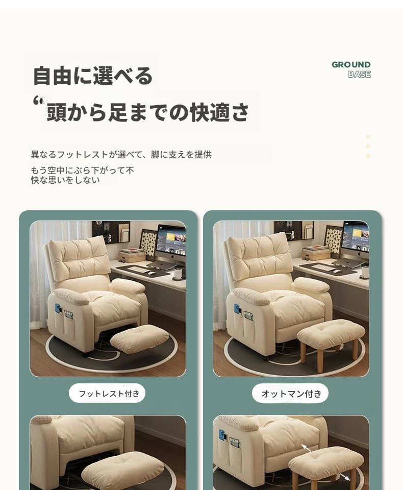 リラックスできる!快適で柔らかいレイジーチェア - 家庭用・オフィス用、レッグレスト付きの多機能パソコンチェア。通気性抜群で、長時間の作業も楽々!ネットカフェやリラックスタイムにも最適な一品です。