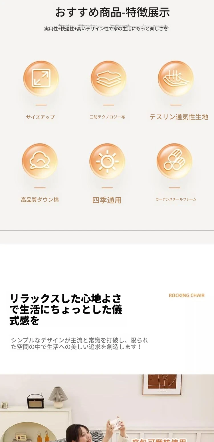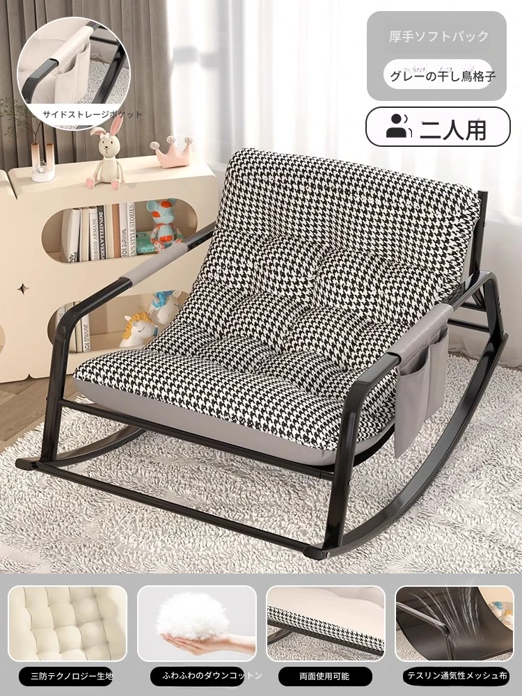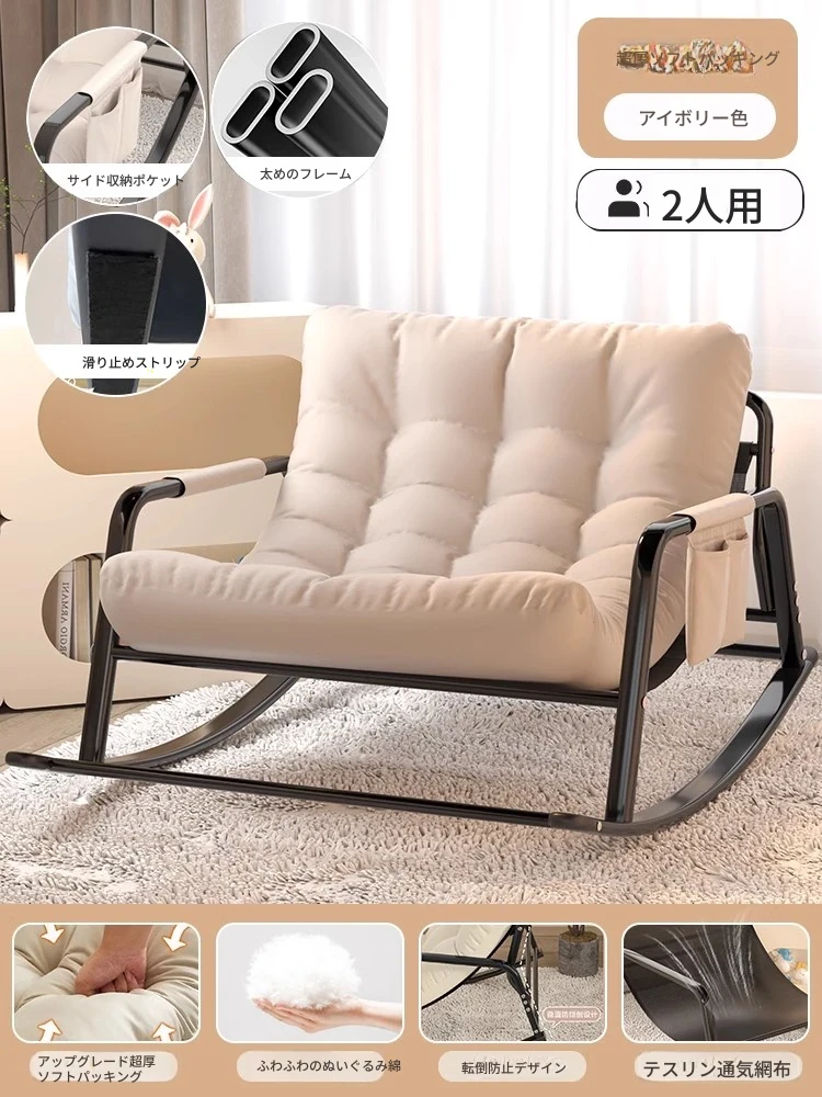 【香港送料無料】リラックスできる二人用ロッキングチェア!バルコニーでのくつろぎに最適な大人向けソファーベッド。心地よい揺れで、あなたのリラックスタイムをさらに充実させます!