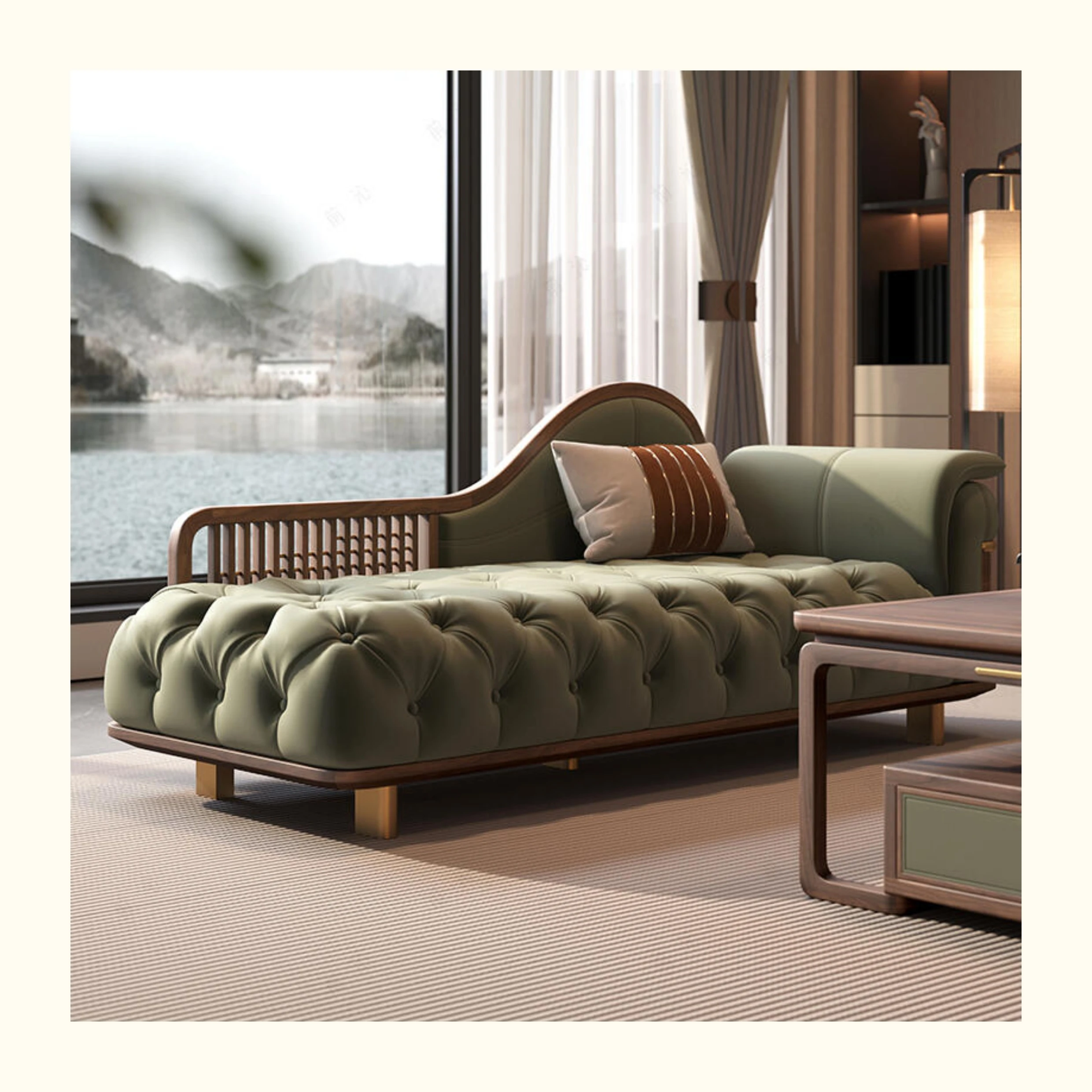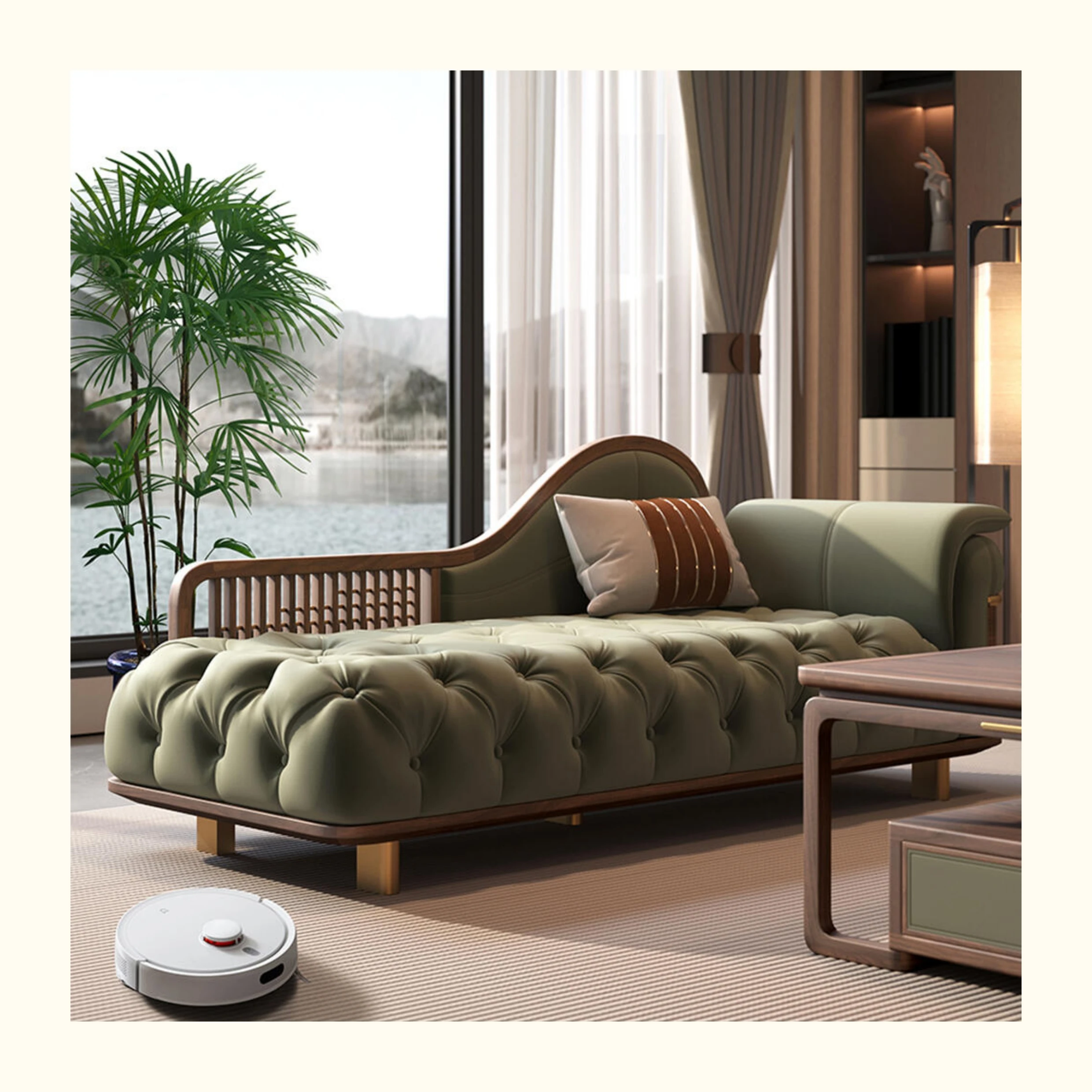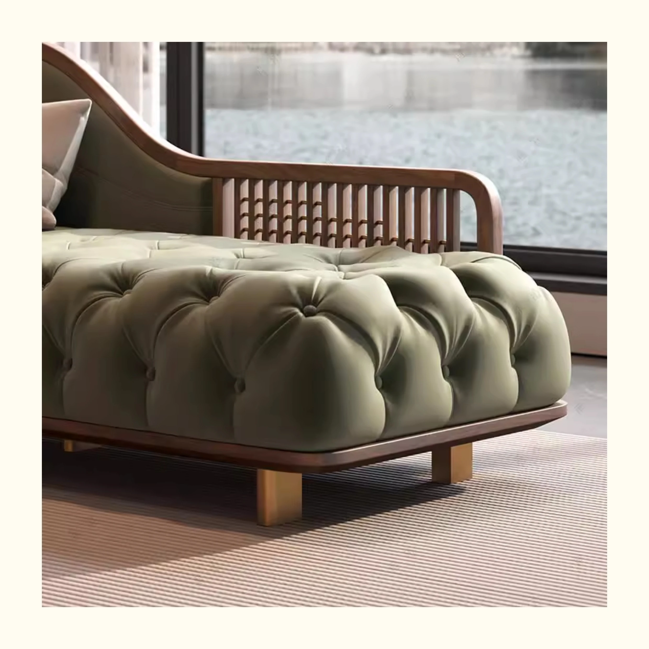 フランス風ヴィンテージ無垢材のカウチソファ、リビングにぴったりの優雅なデザインで、くつろぎの時間を演出。おしゃれな貴妃椅子で、特別な空間を演出しましょう!