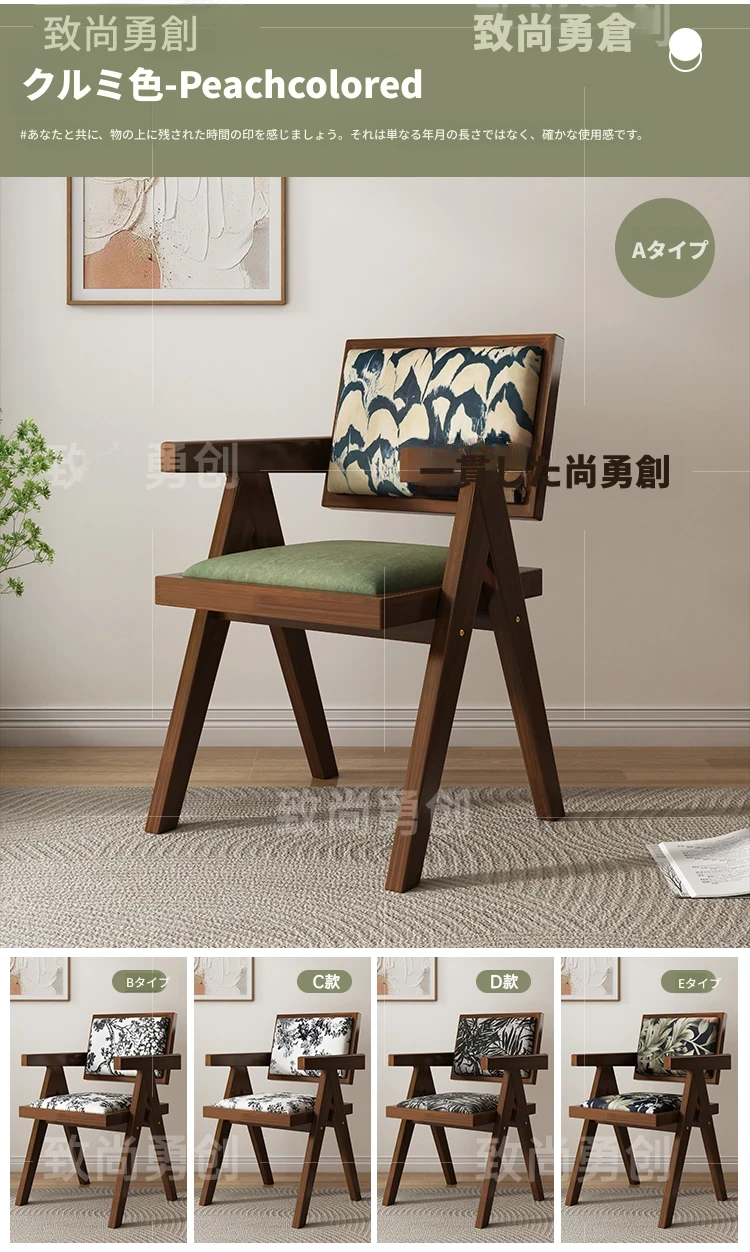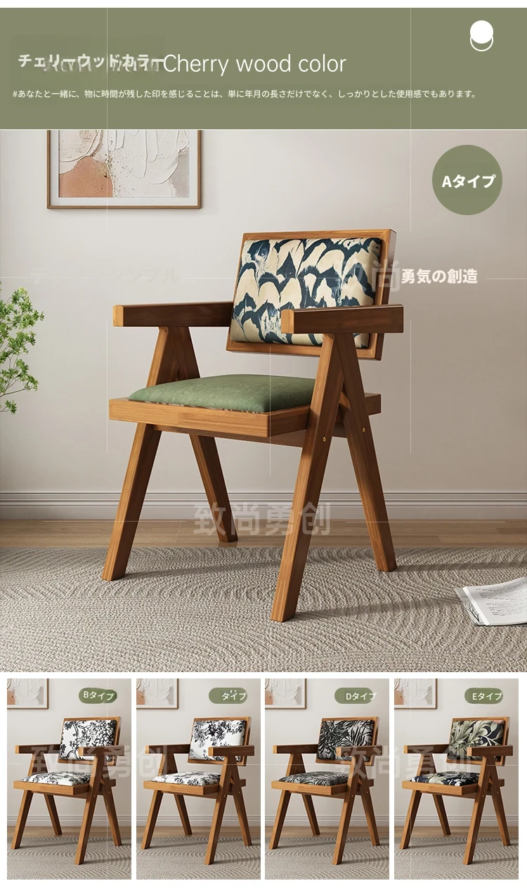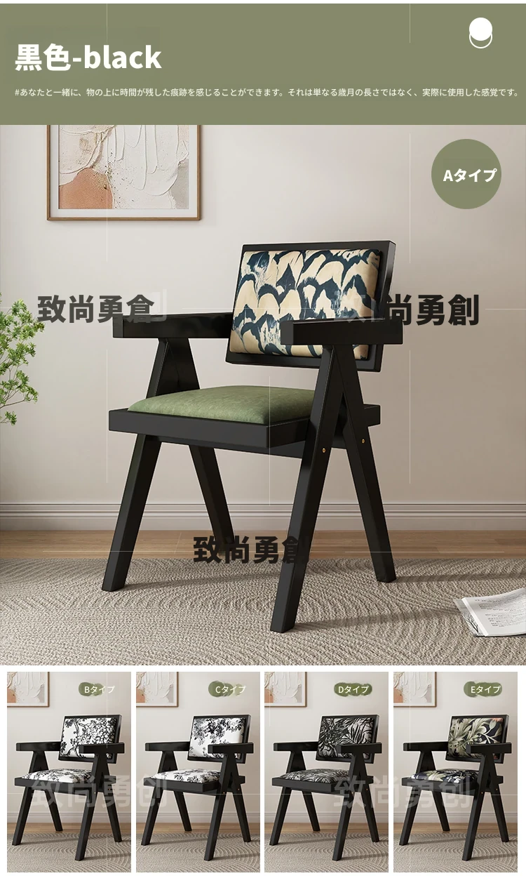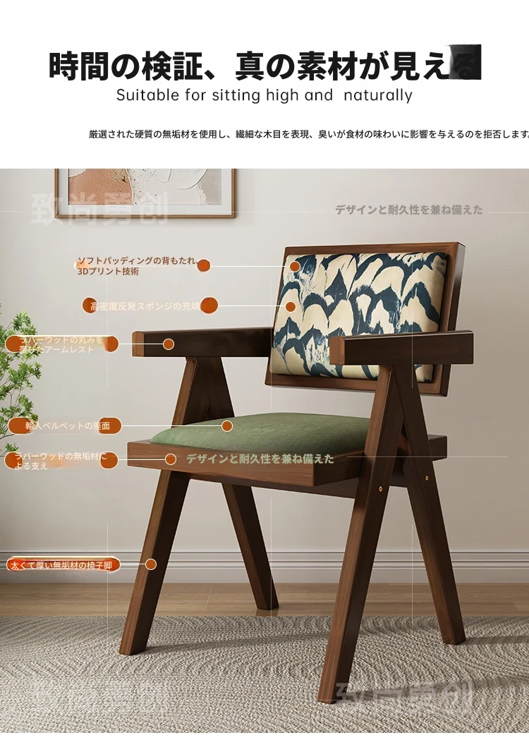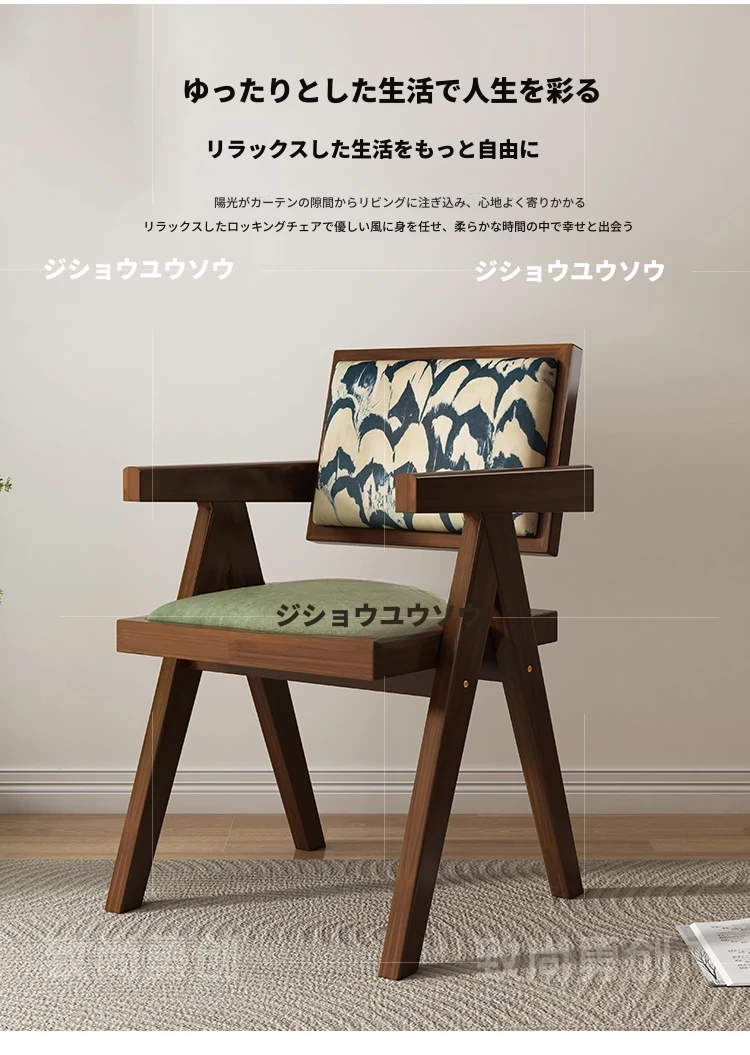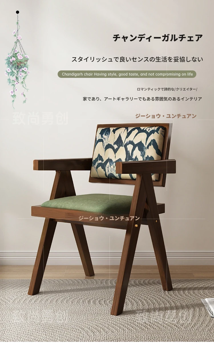フレンチアンティーク無垢材ダイニングチェア、侘寂スタイルのソフトパッケージ、ヴィンテージ感溢れる背もたれ付きアームチェア、チャンディガールデザインでおしゃれな空間を演出!
