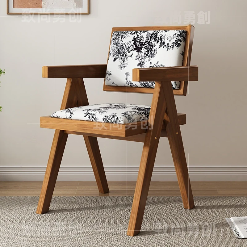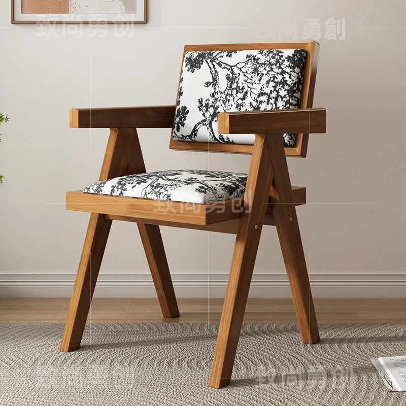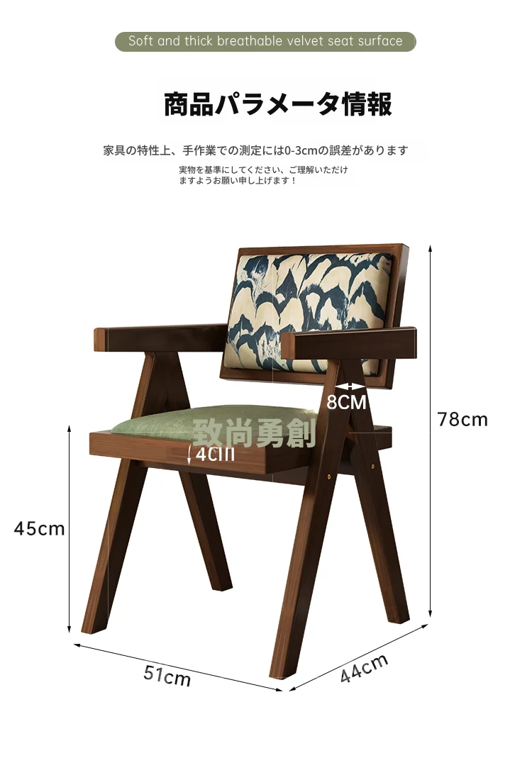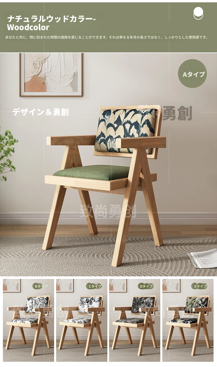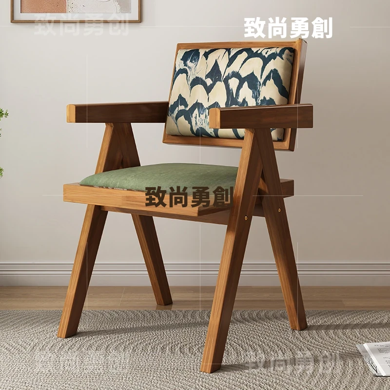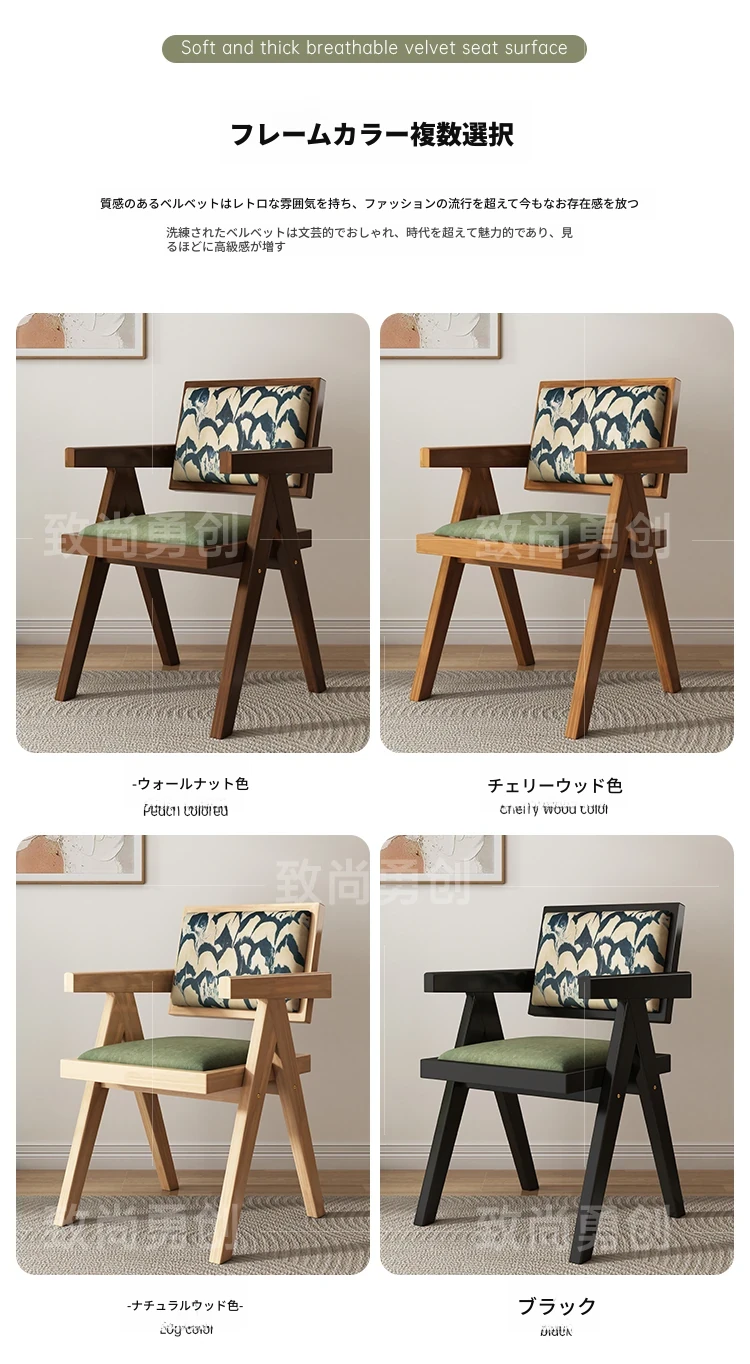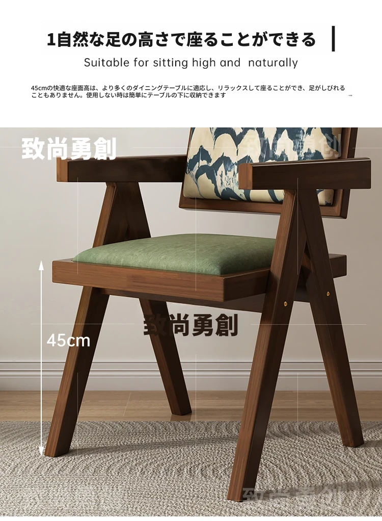 フレンチアンティーク無垢材ダイニングチェア、侘寂スタイルのソフトパッケージ、ヴィンテージ感溢れる背もたれ付きアームチェア、チャンディガールデザインでおしゃれな空間を演出!