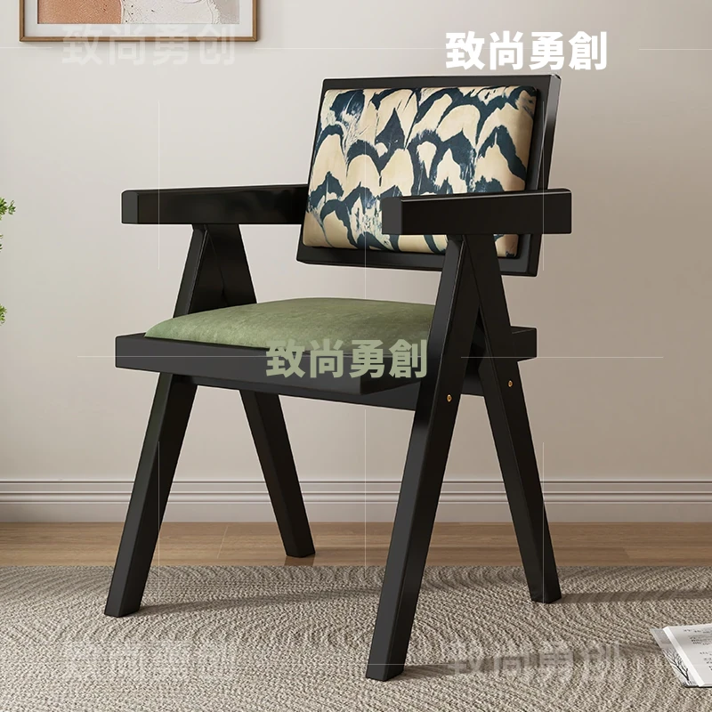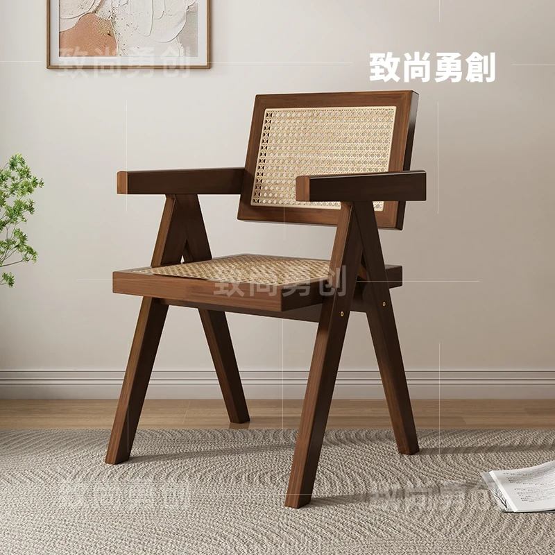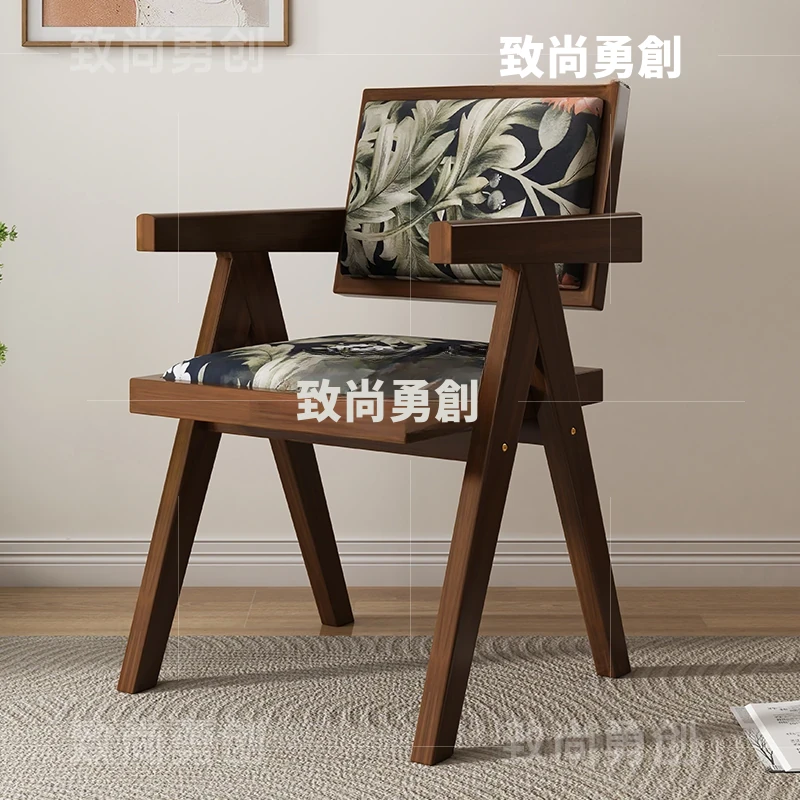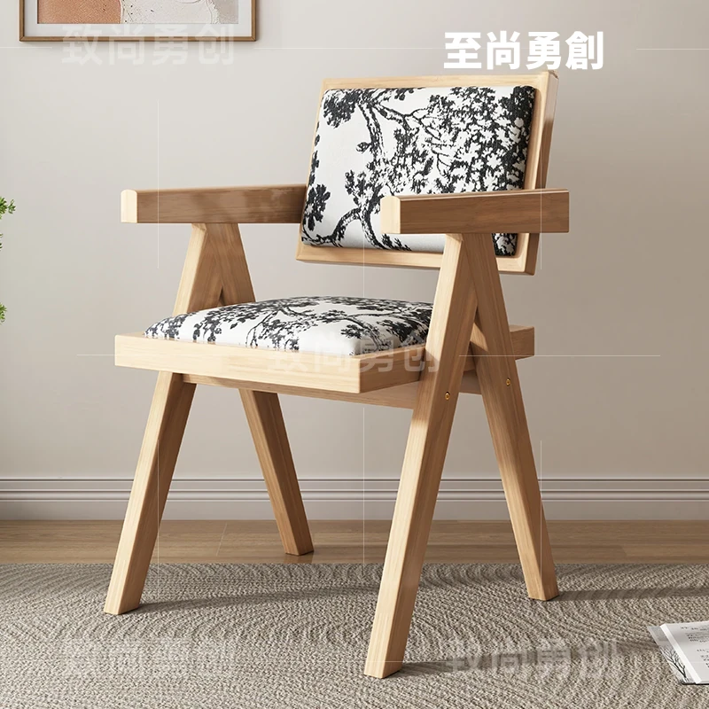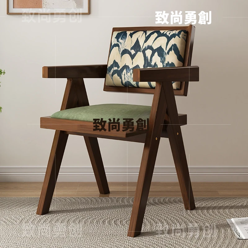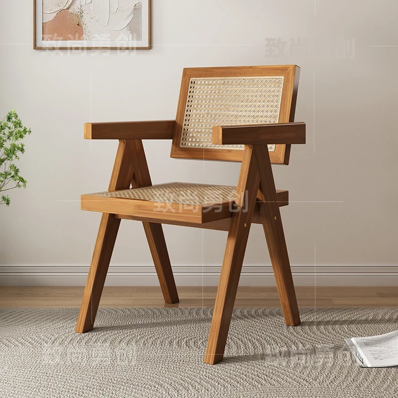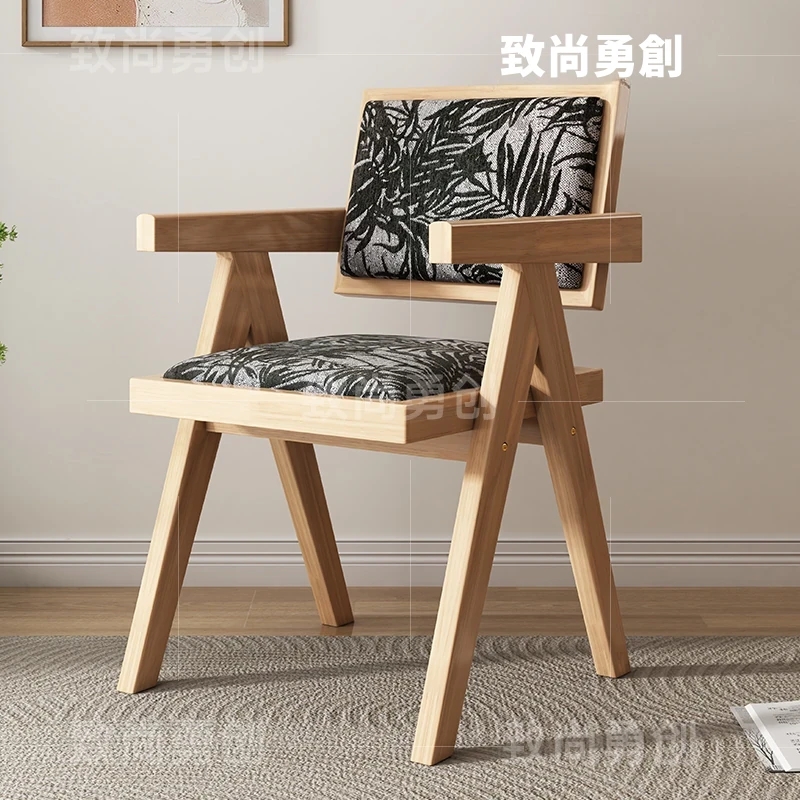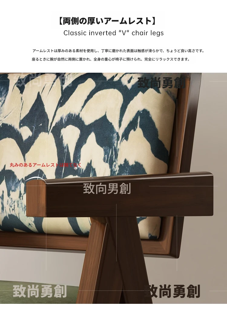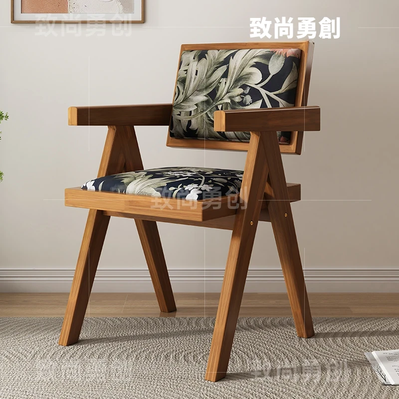 フレンチアンティーク無垢材ダイニングチェア、侘寂スタイルのソフトパッケージ、ヴィンテージ感溢れる背もたれ付きアームチェア、チャンディガールデザインでおしゃれな空間を演出!