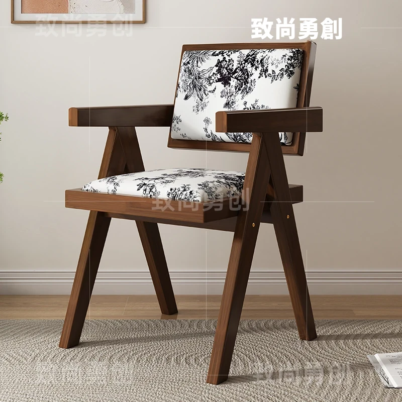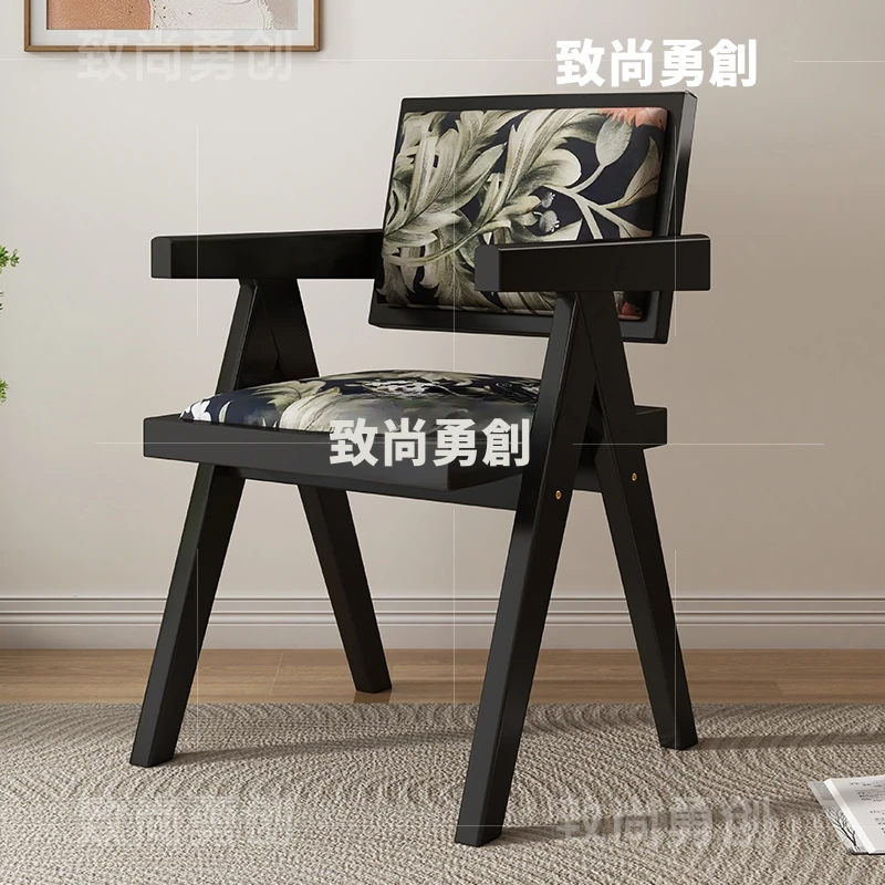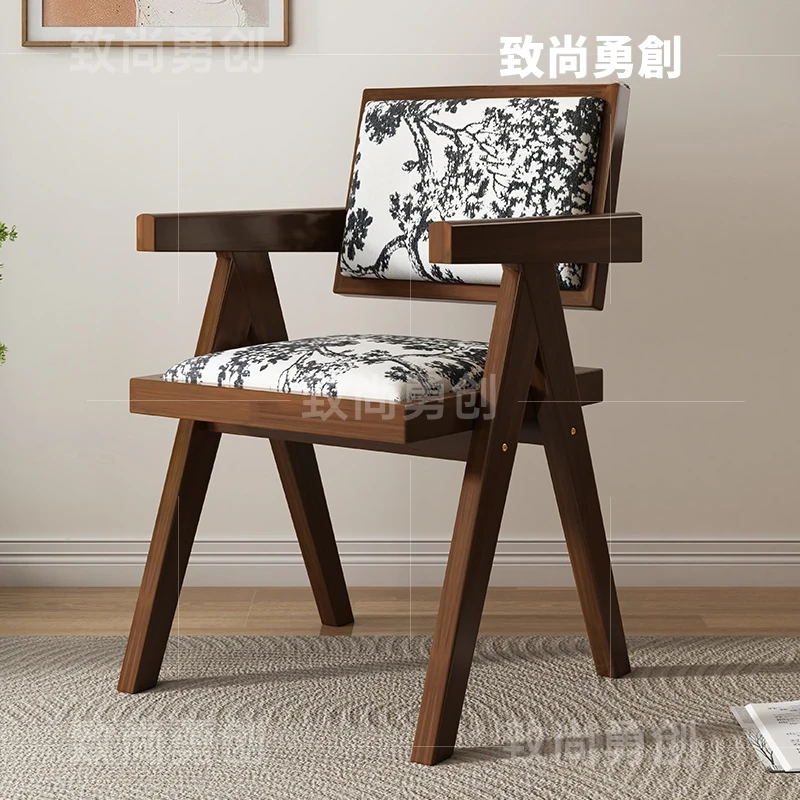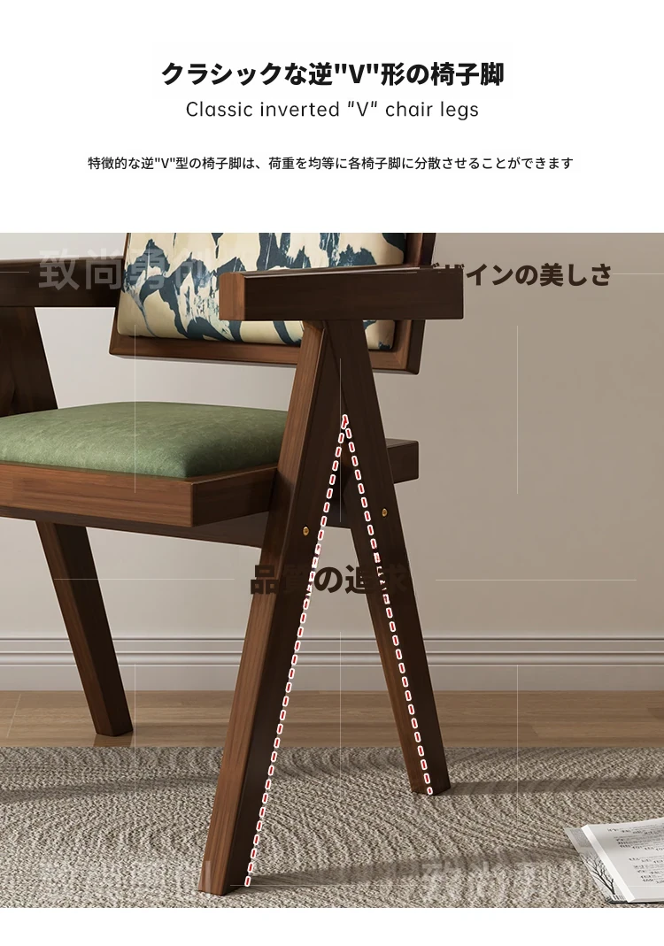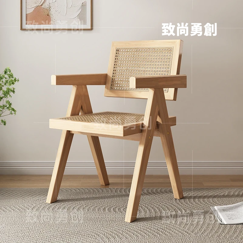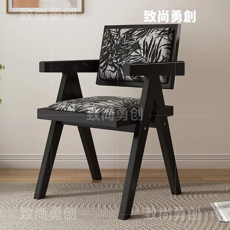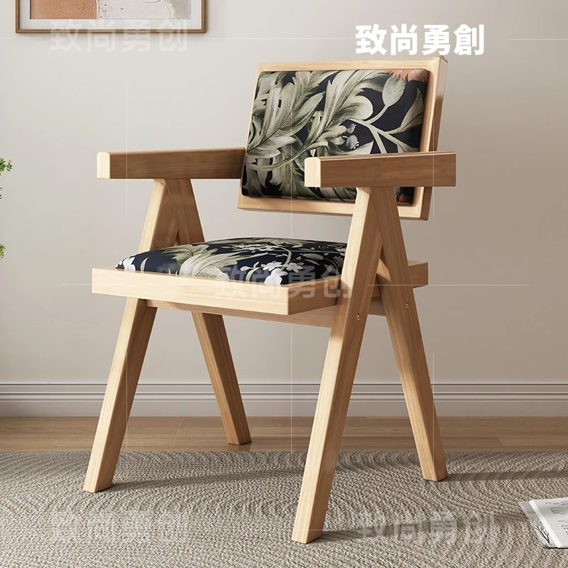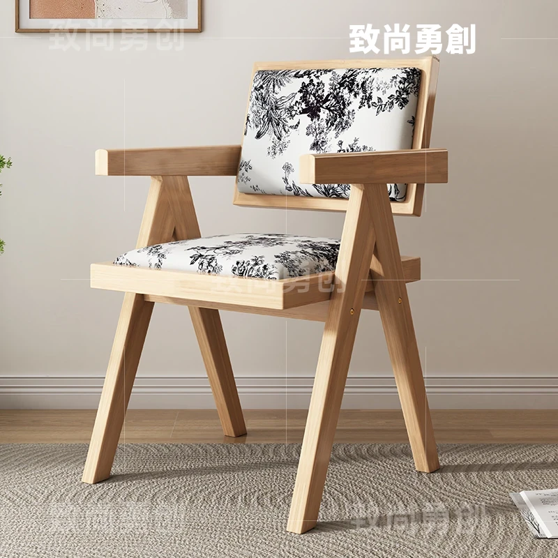 フレンチアンティーク無垢材ダイニングチェア、侘寂スタイルのソフトパッケージ、ヴィンテージ感溢れる背もたれ付きアームチェア、チャンディガールデザインでおしゃれな空間を演出!