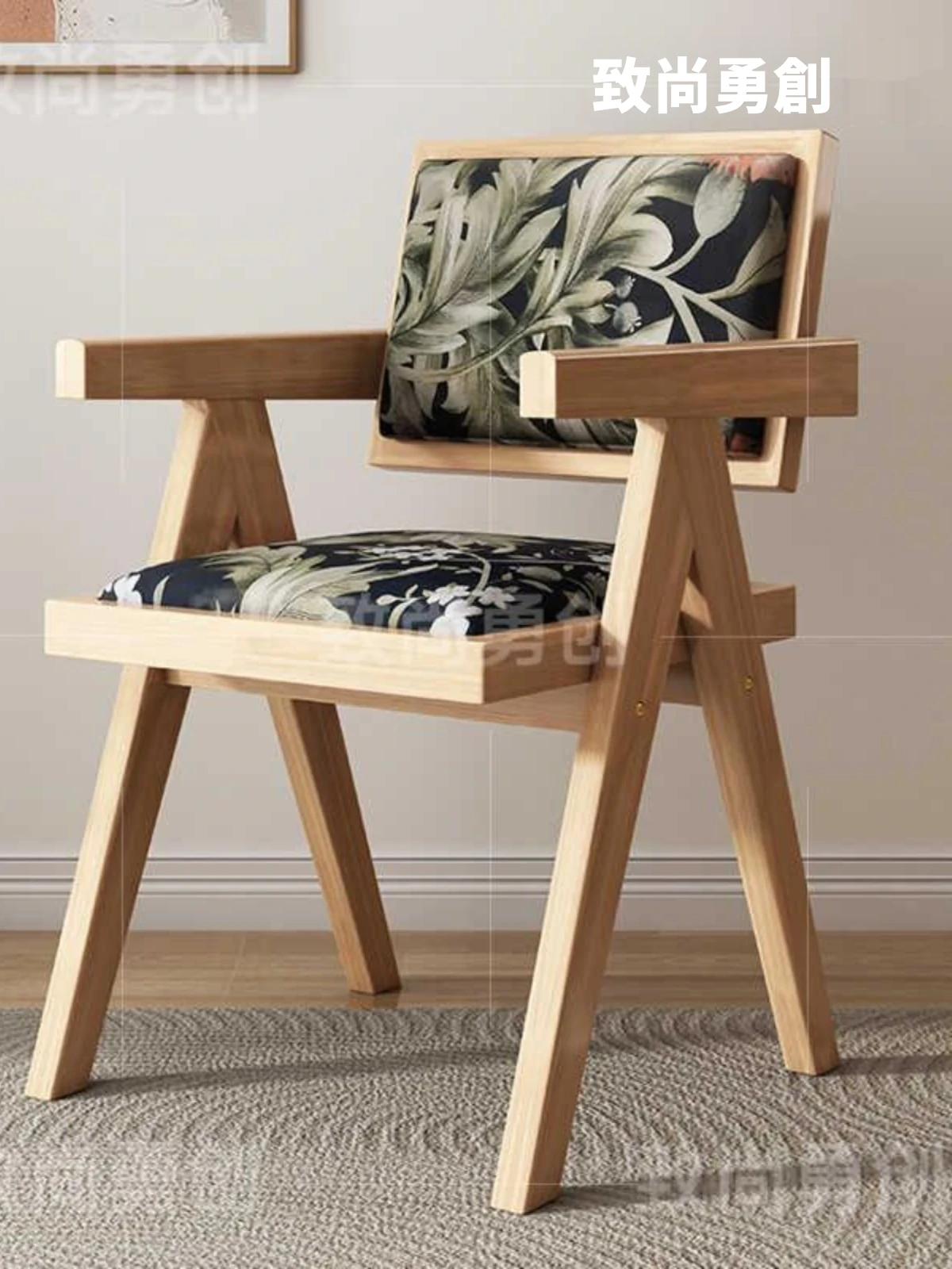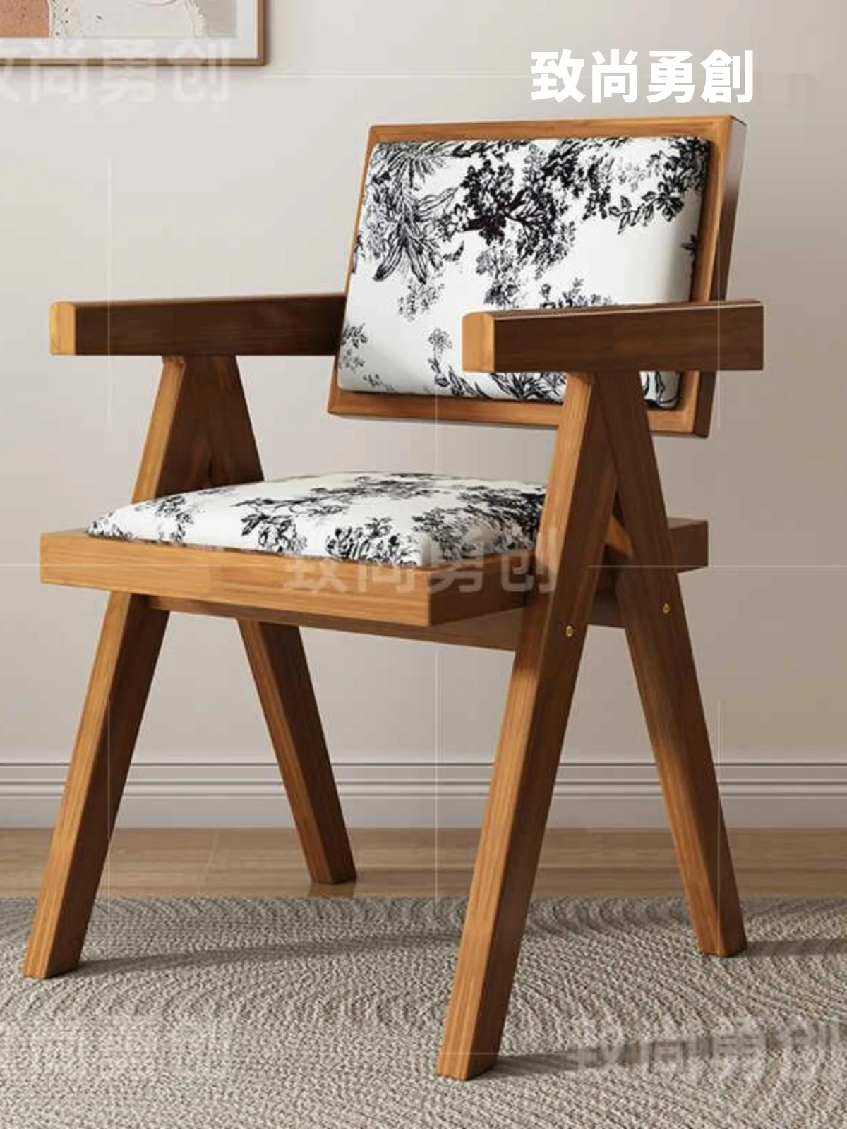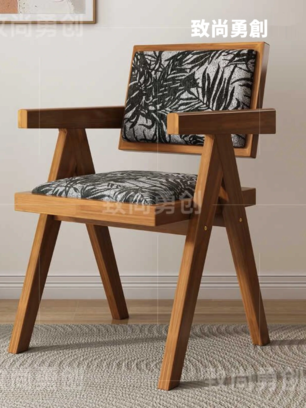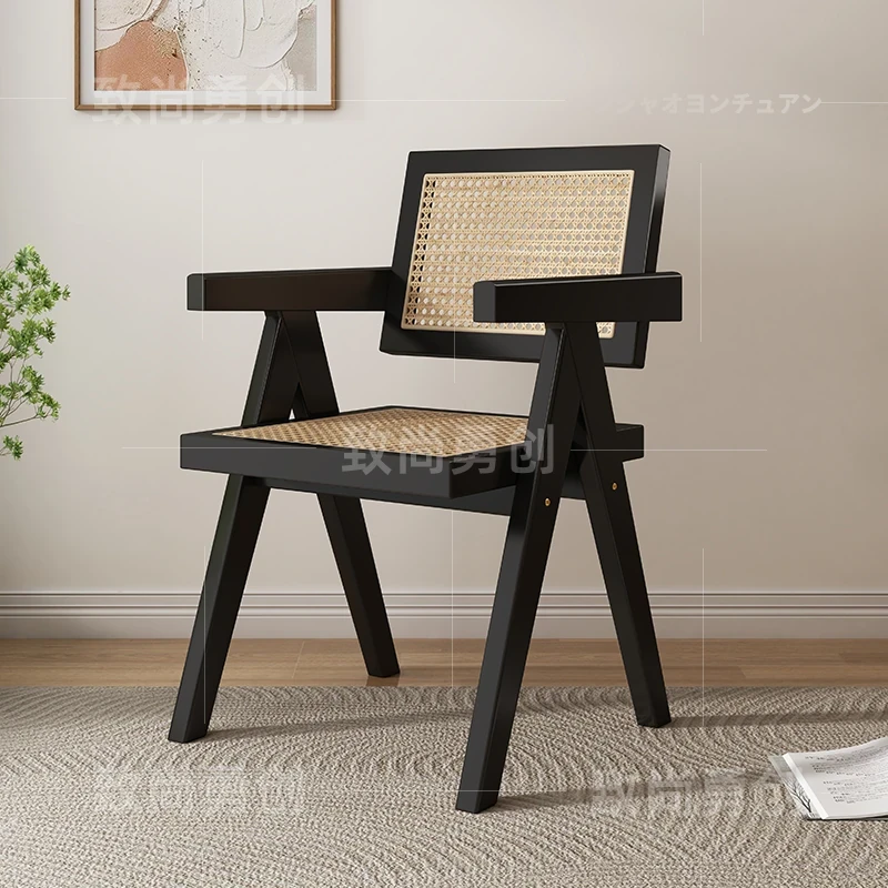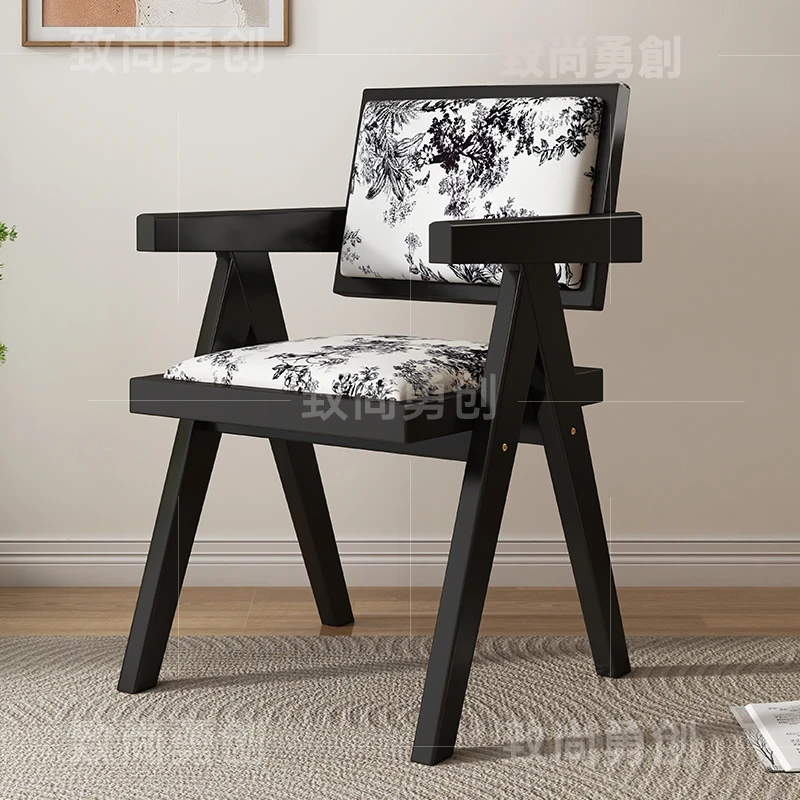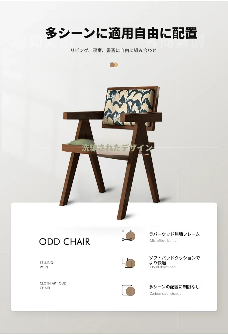 フレンチアンティーク無垢材ダイニングチェア、侘寂スタイルのソフトパッケージ、ヴィンテージ感溢れる背もたれ付きアームチェア、チャンディガールデザインでおしゃれな空間を演出!