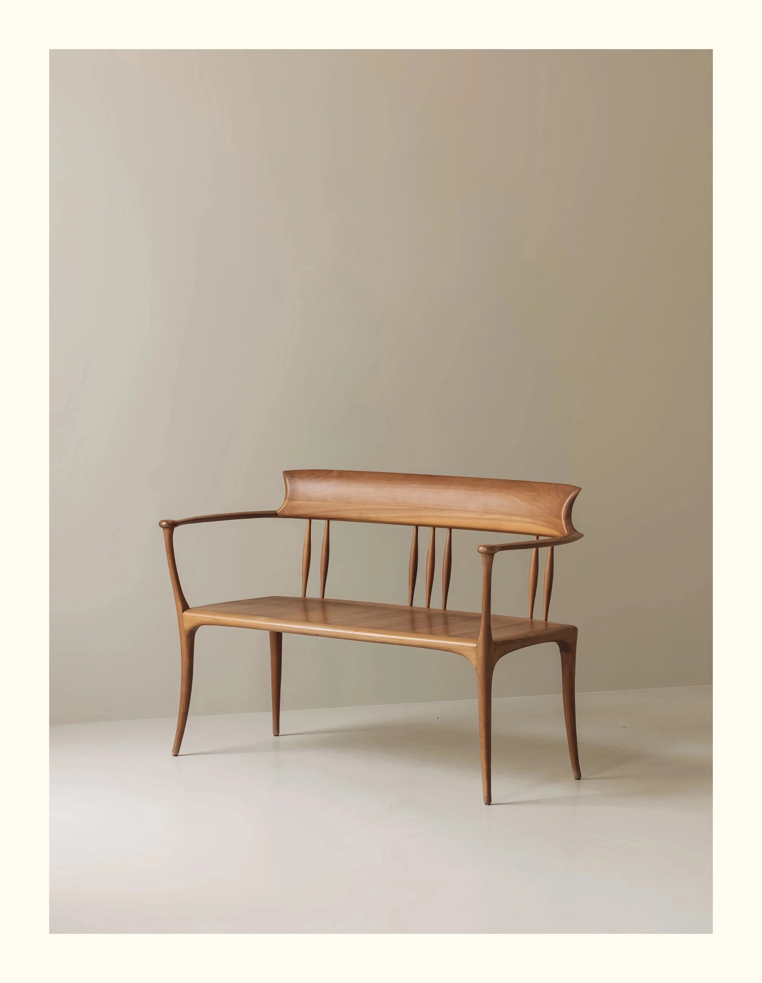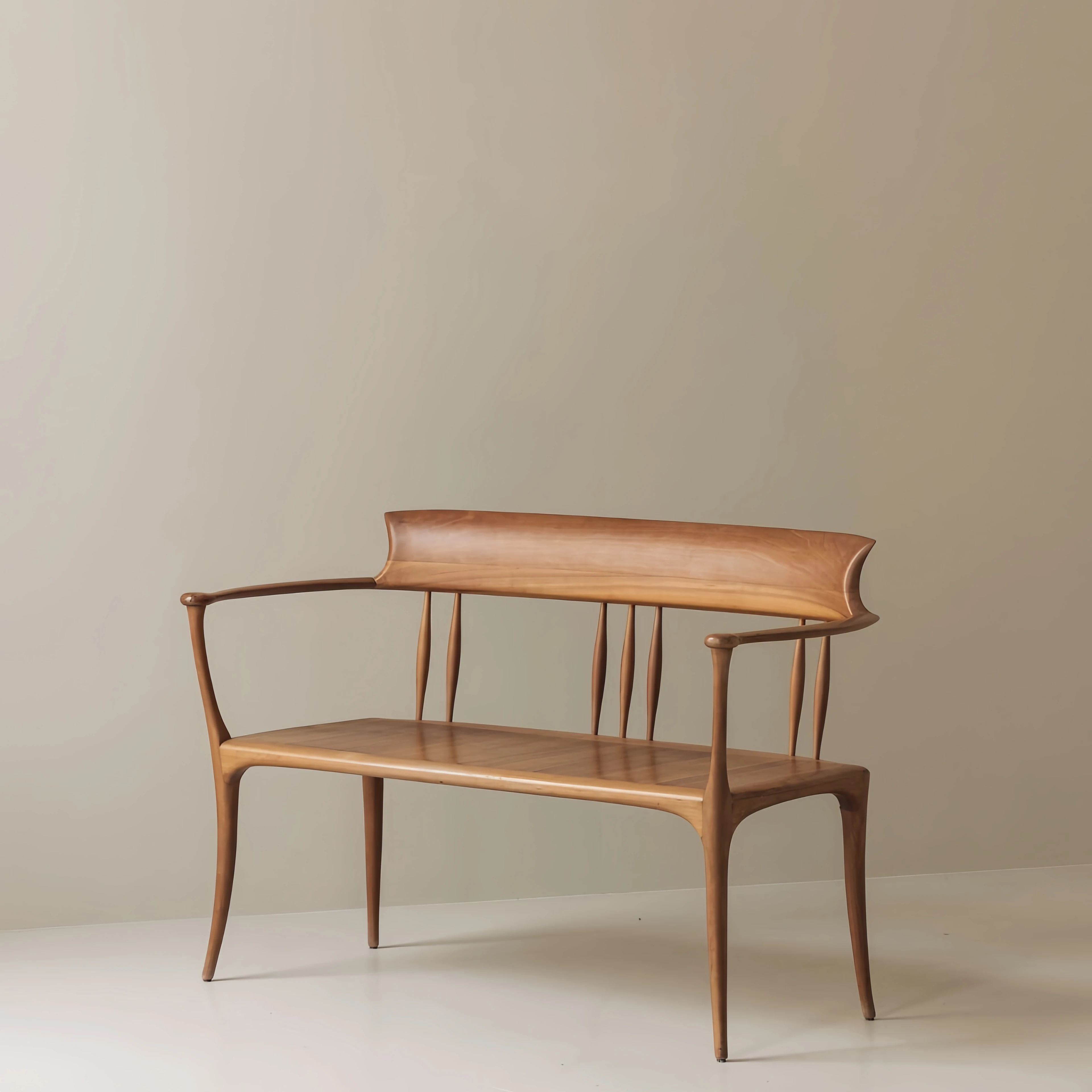 イタリアンラグジュアリー ブラックウォールナット製 ロマンティックなデザインのカウチソファ チェア ホテル用ダブルベンチ 背もたれ付き リビングルームにぴったりのスタイリッシュなロングチェア
