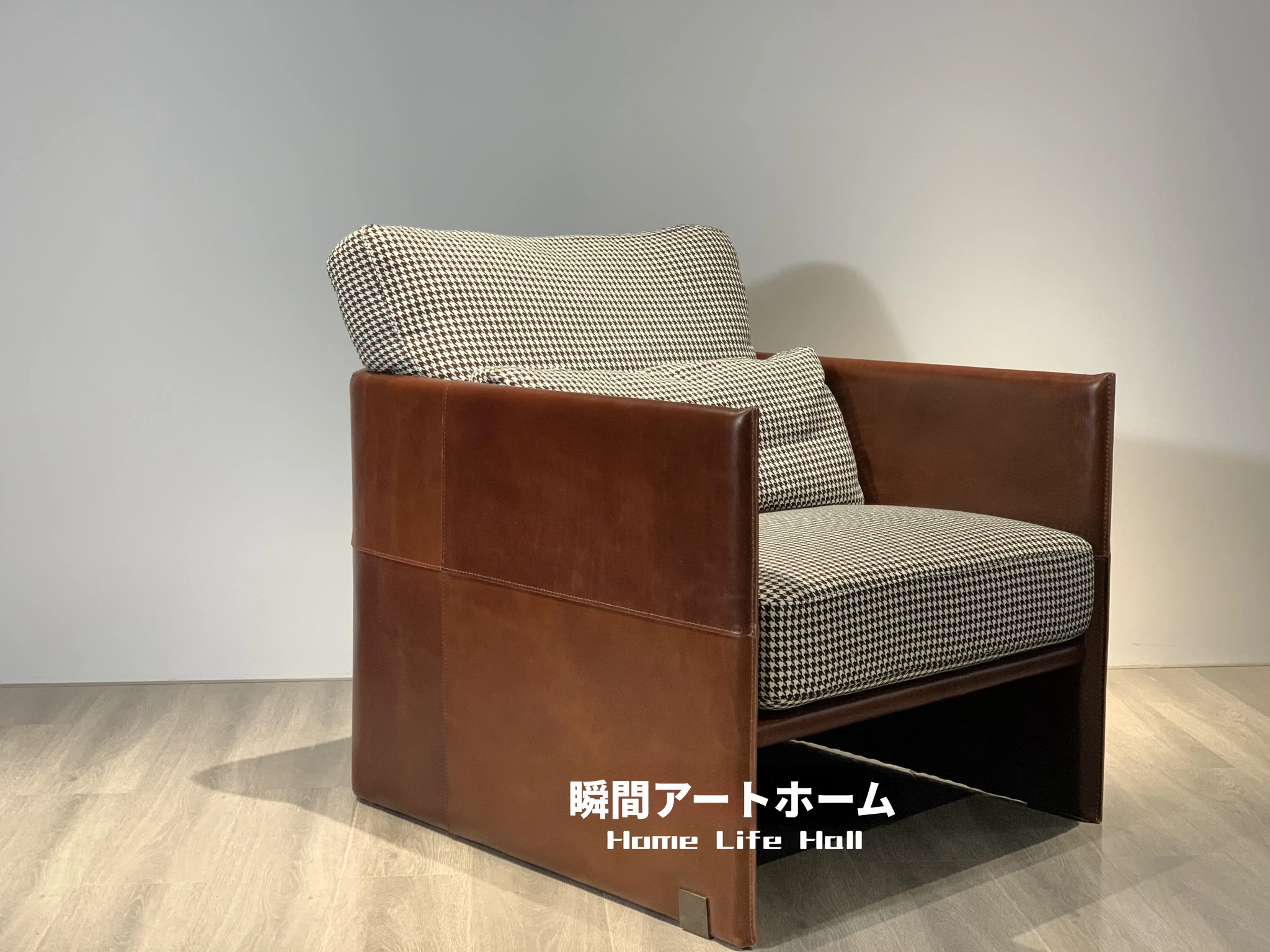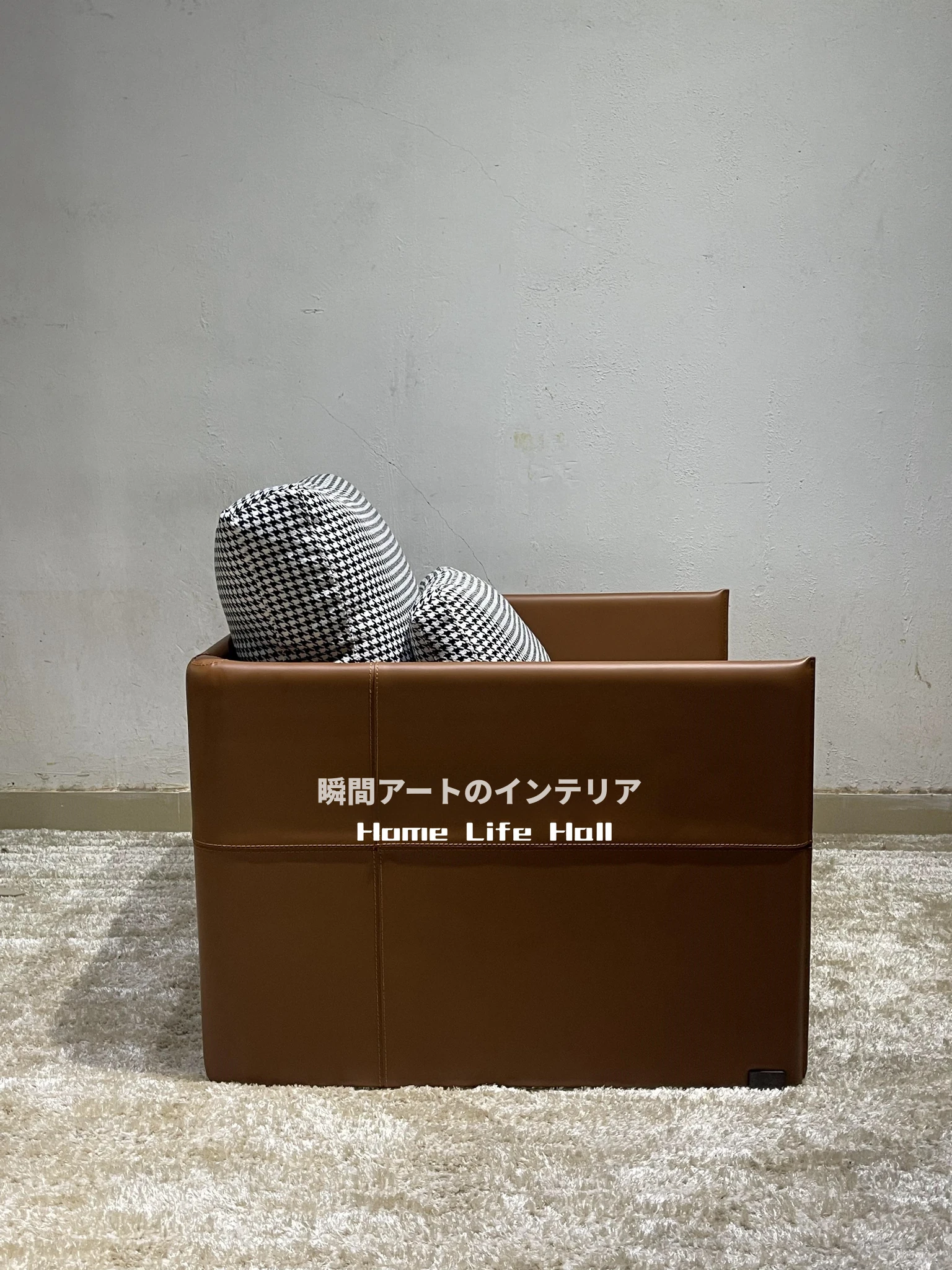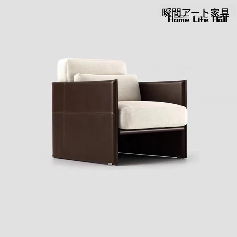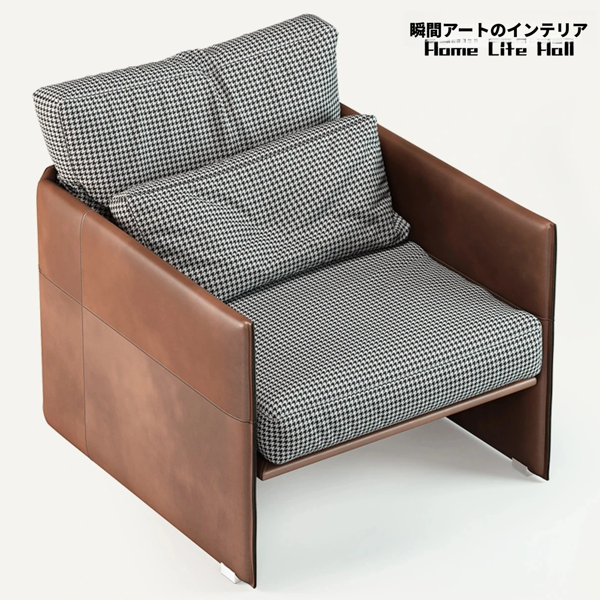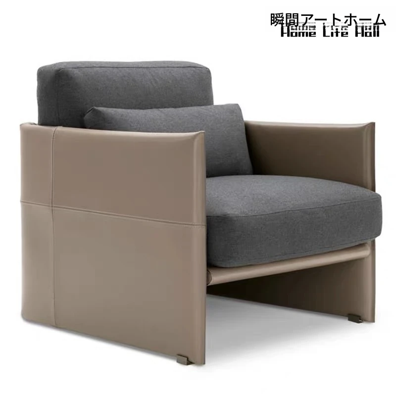 イタリアンラグジュアリーサドルレザー一人掛けソファ - デザイナーが手がけた高級感あふれるリビング用リラックスチェア。真皮仕様で、あなたの居住空間を一層魅力的に演出します。