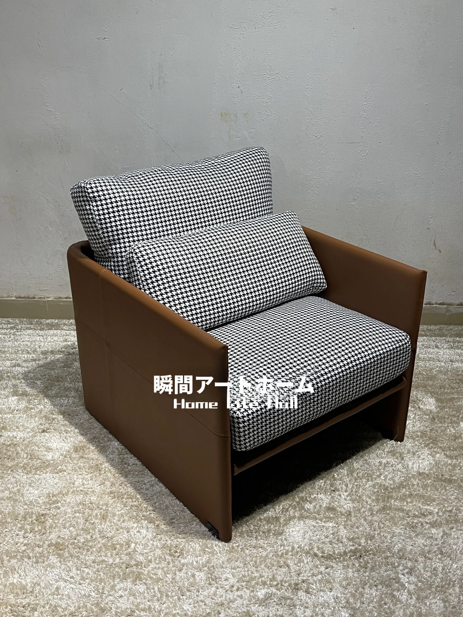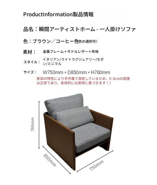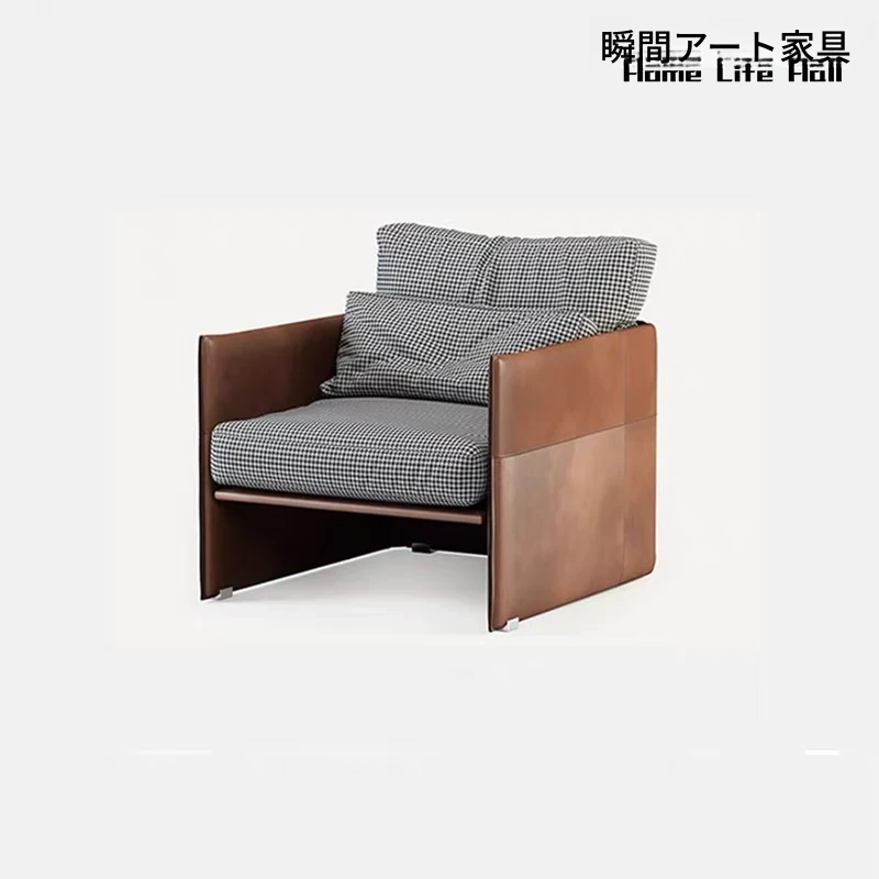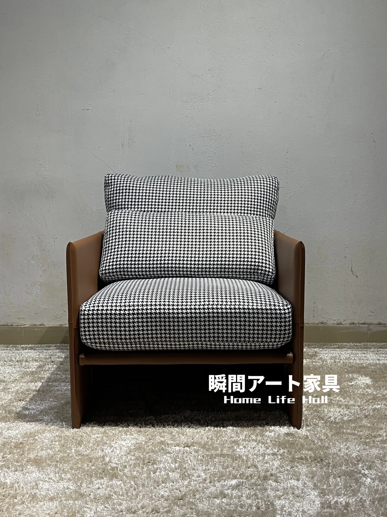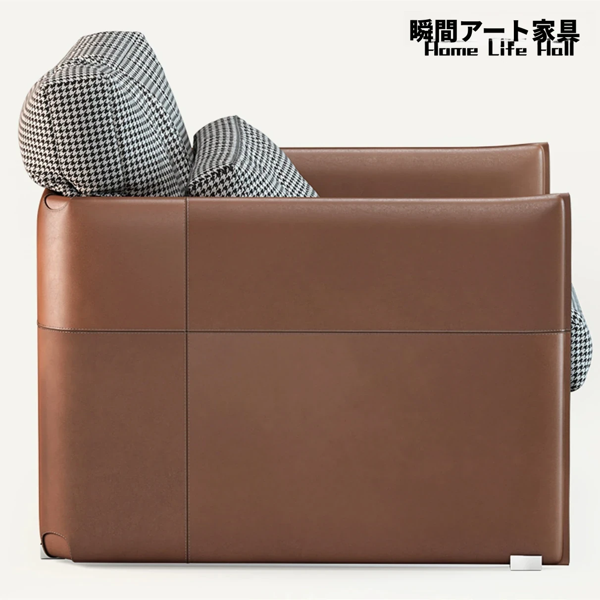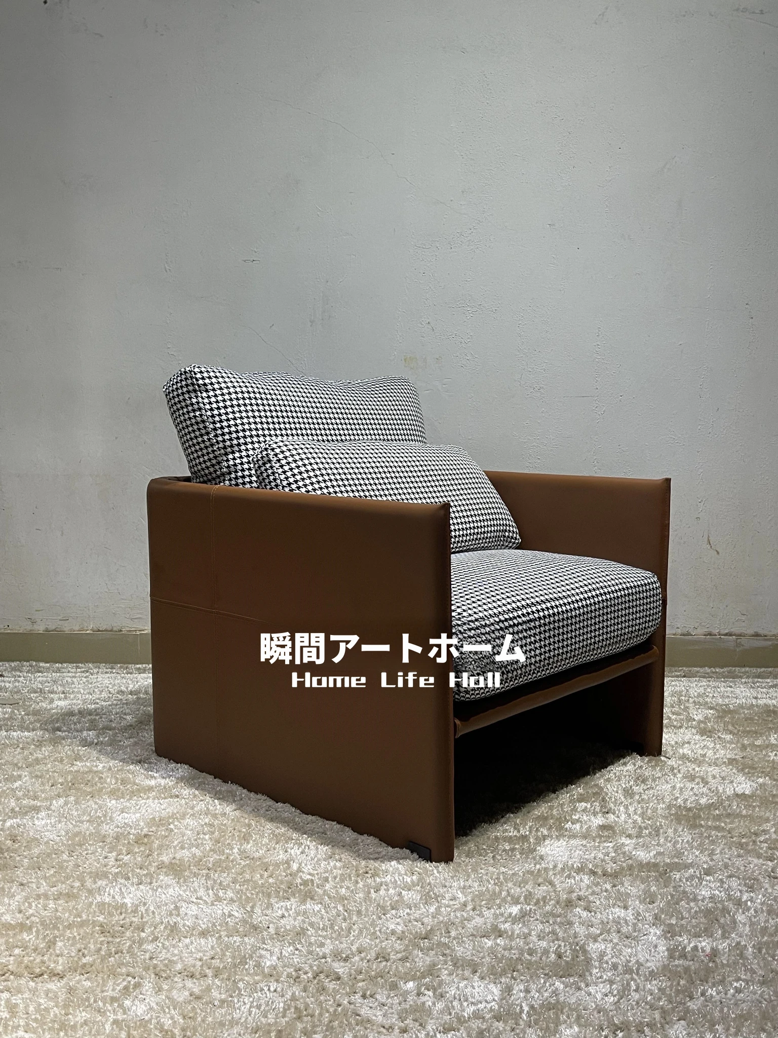 イタリアンラグジュアリーサドルレザー一人掛けソファ - デザイナーが手がけた高級感あふれるリビング用リラックスチェア。真皮仕様で、あなたの居住空間を一層魅力的に演出します。