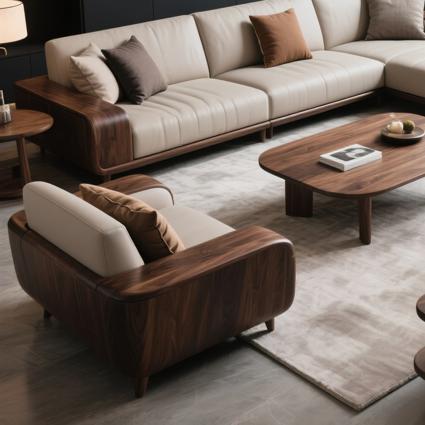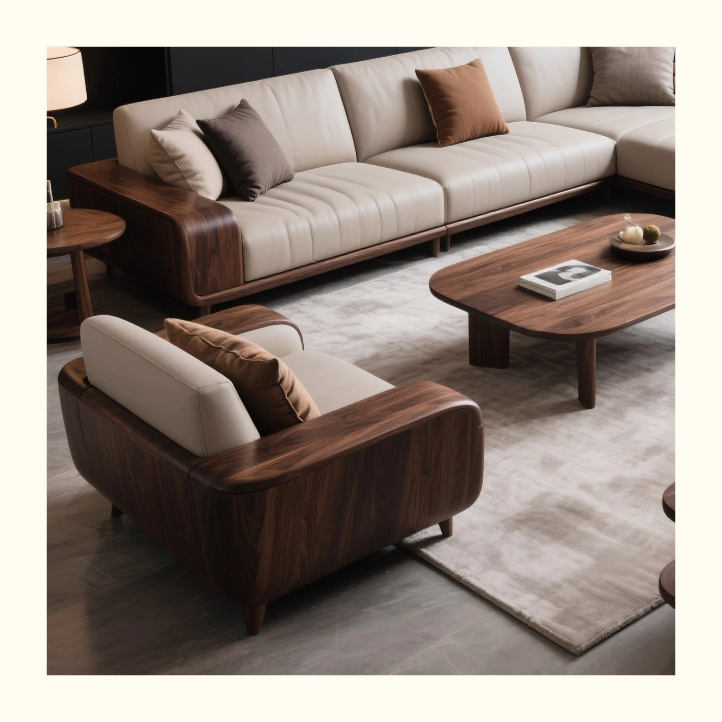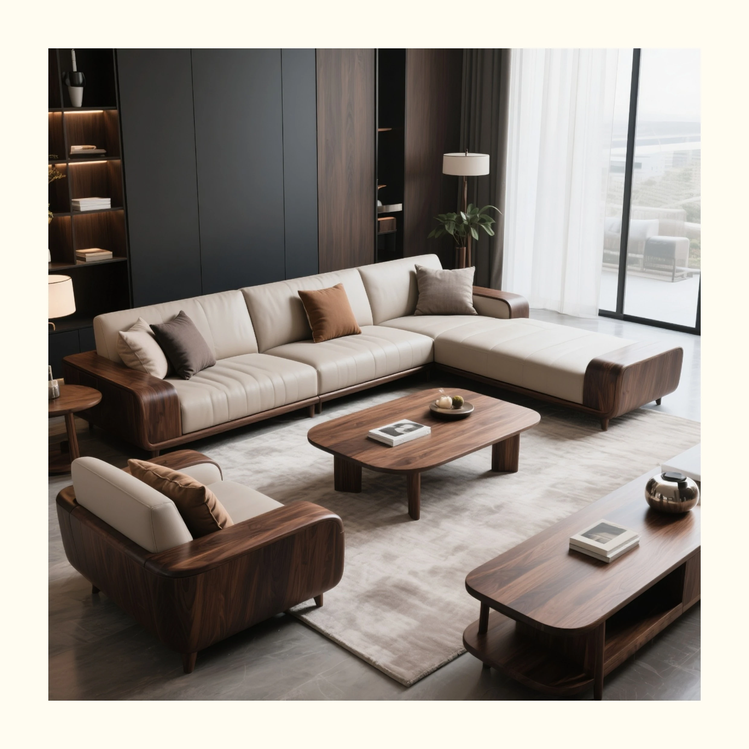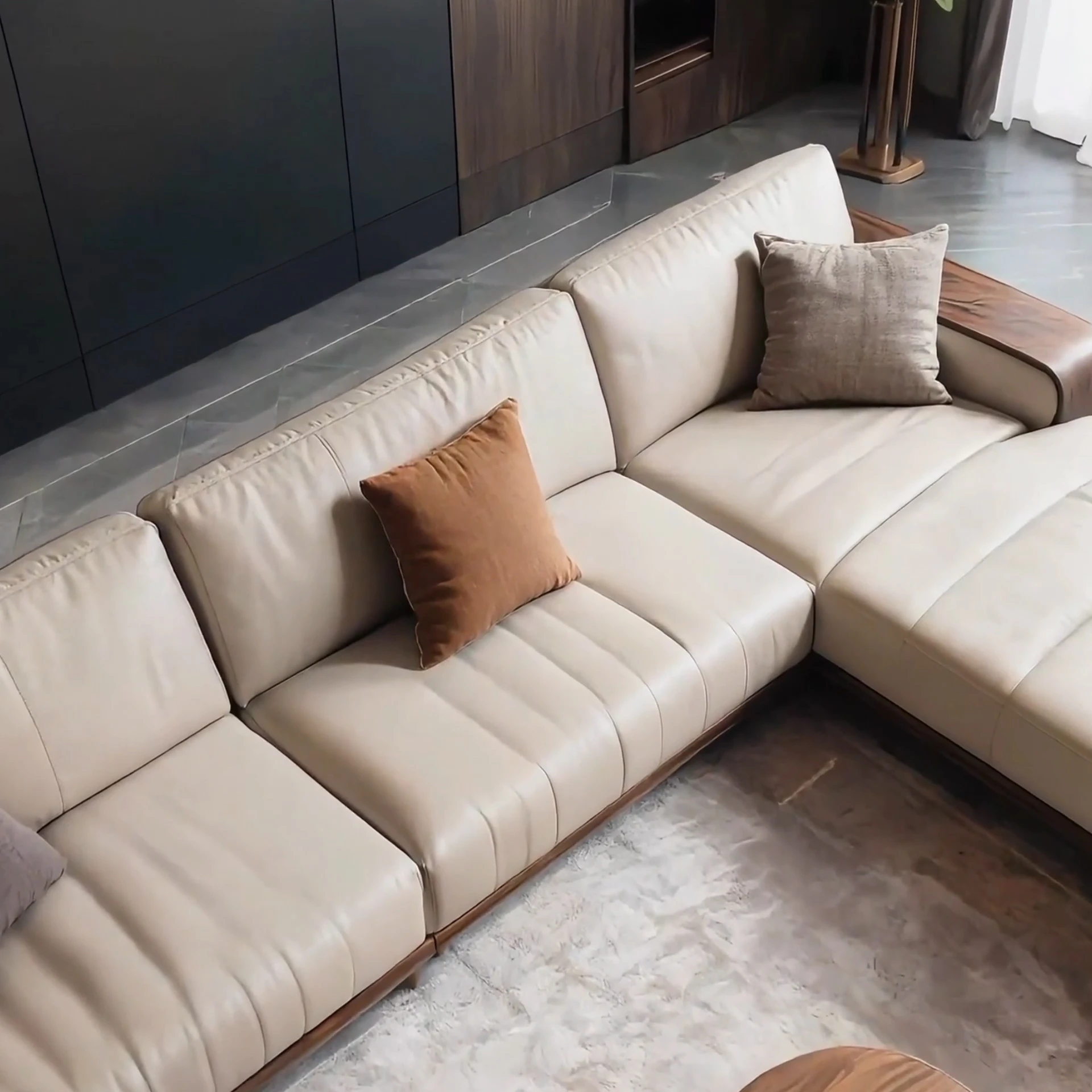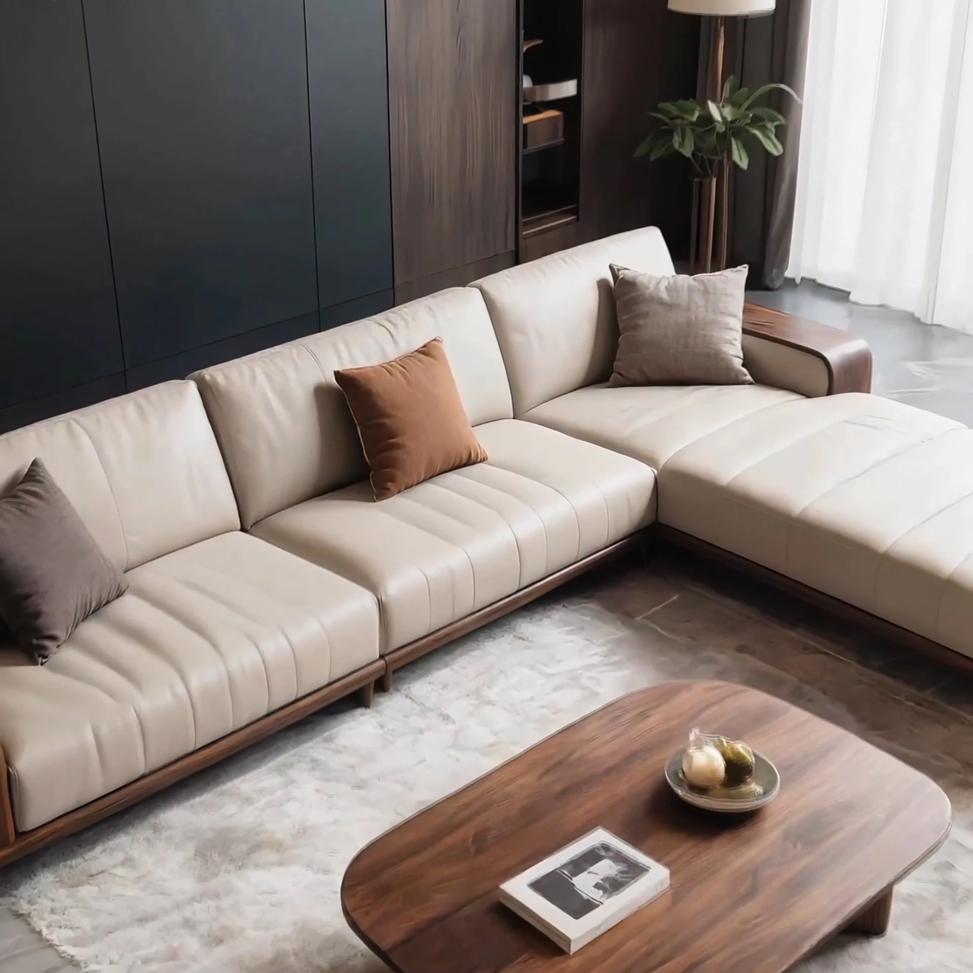 イタリアンラグジュアリー無垢材コーナーソファセット - ヴィラや高級住宅に最適な洗練されたデザイン、上質な本革使用。贅沢な空間を演出する、居心地抜群のソファです。