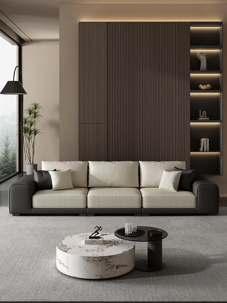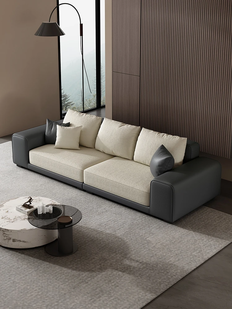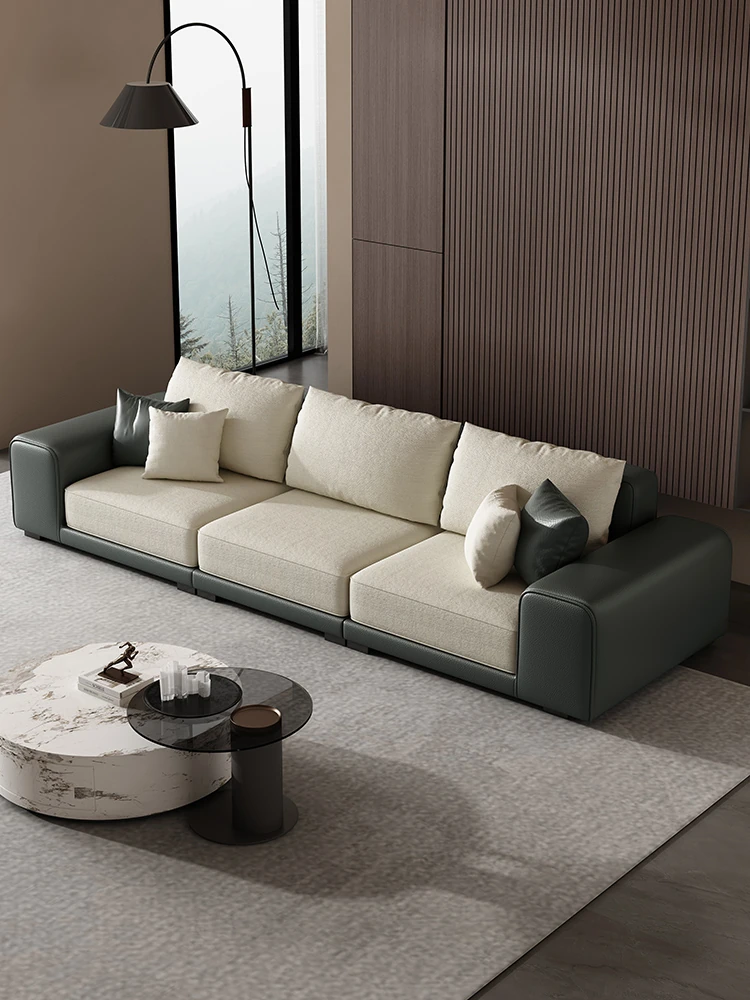 イタリアンミニマルデザイン!豪華で快適な728218リネンコットン直線ソファ - 猫爪に優しい高級デザイナーズソファ(リビング用の究極の選択)