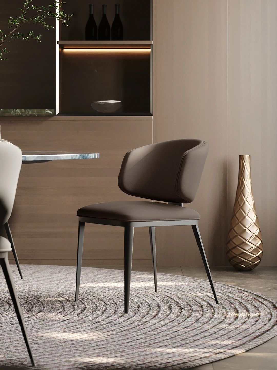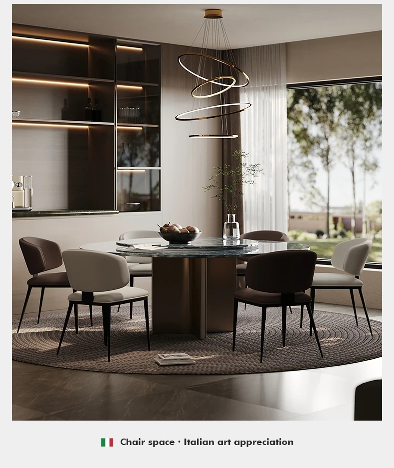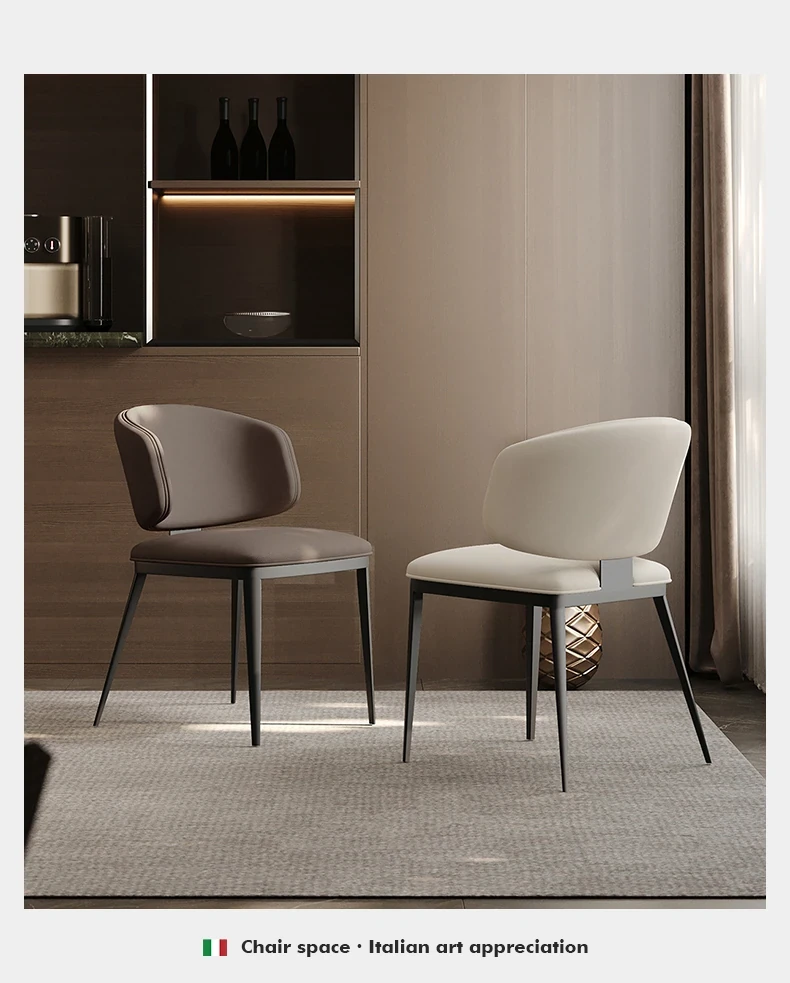 イタリアンミニマリストダイニングチェア 北欧スタイルの現代的なシンプルデザイン 家庭用の背もたれ付き椅子 高級感あふれるダイニングテーブル用チェア 人気の本革スツール