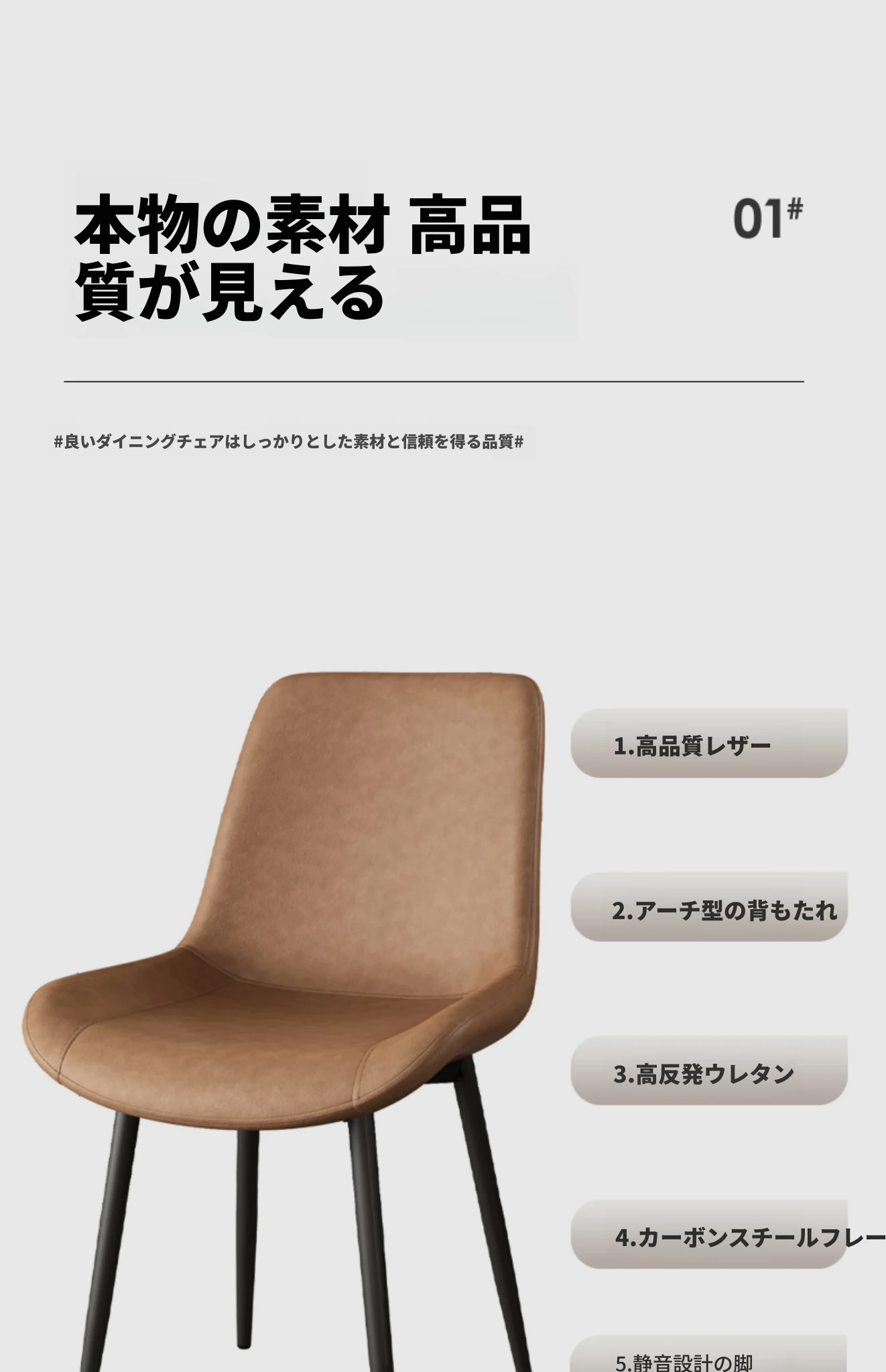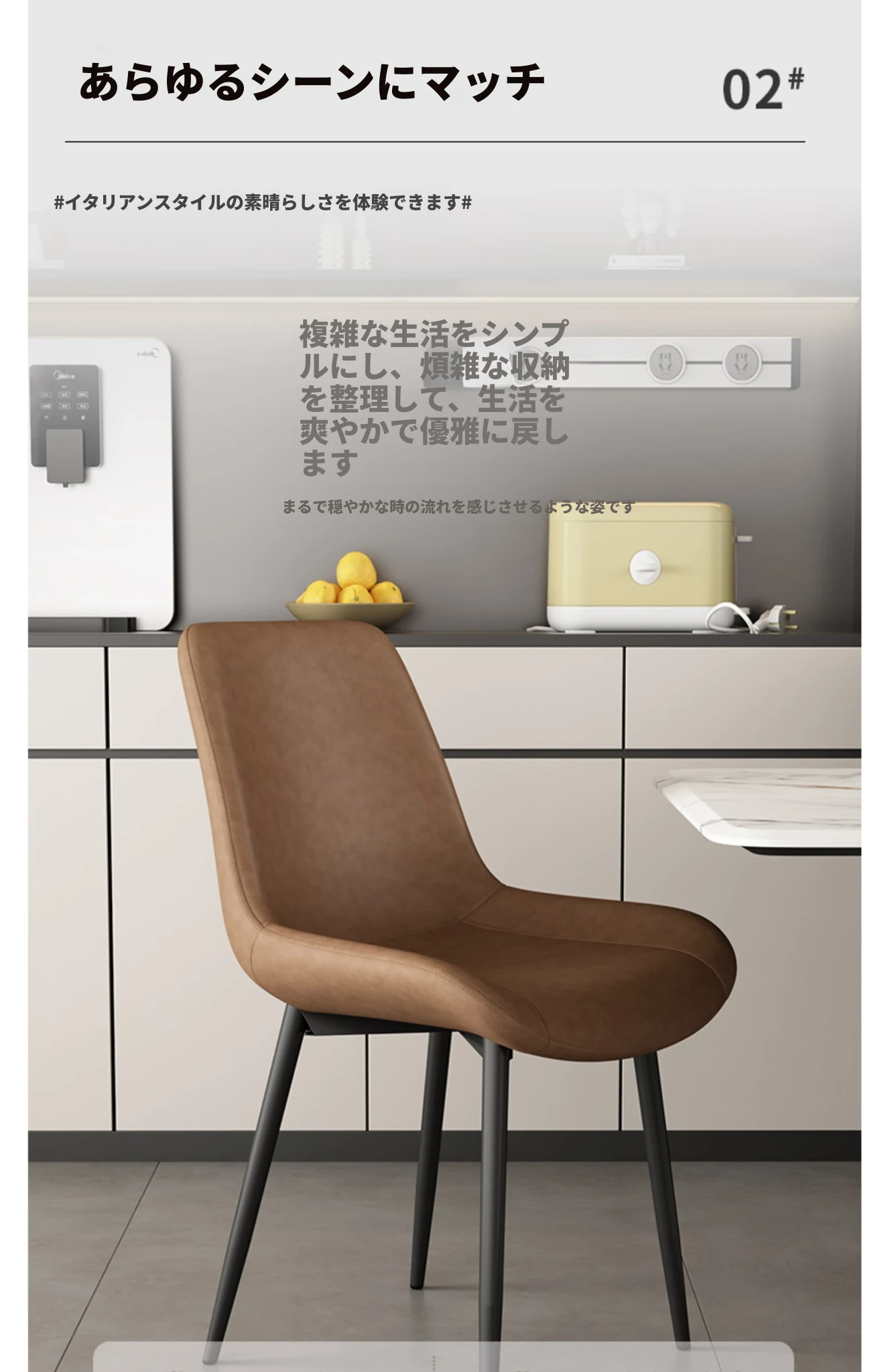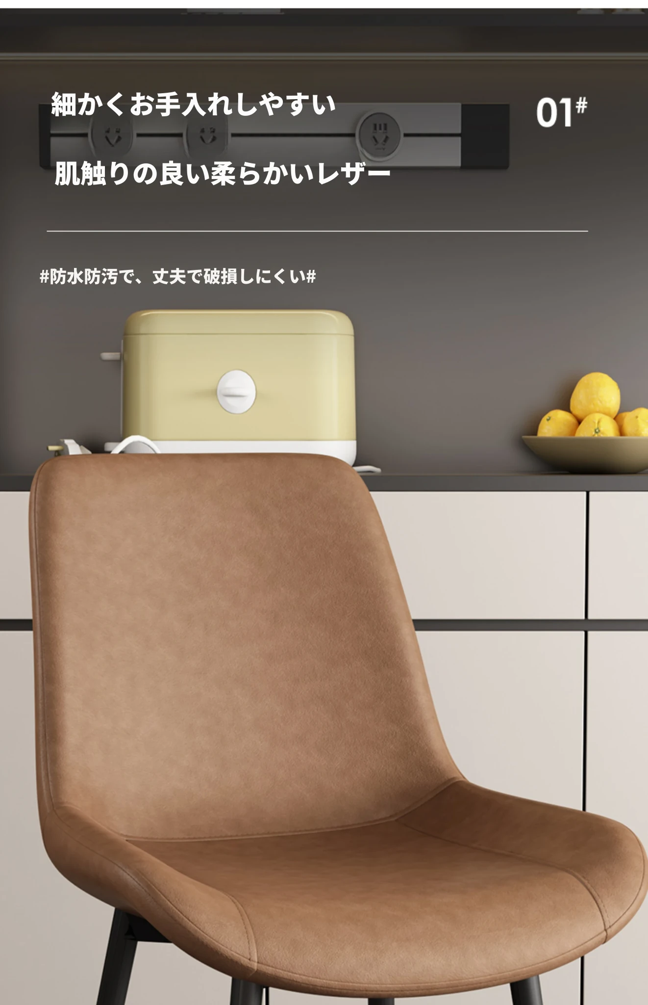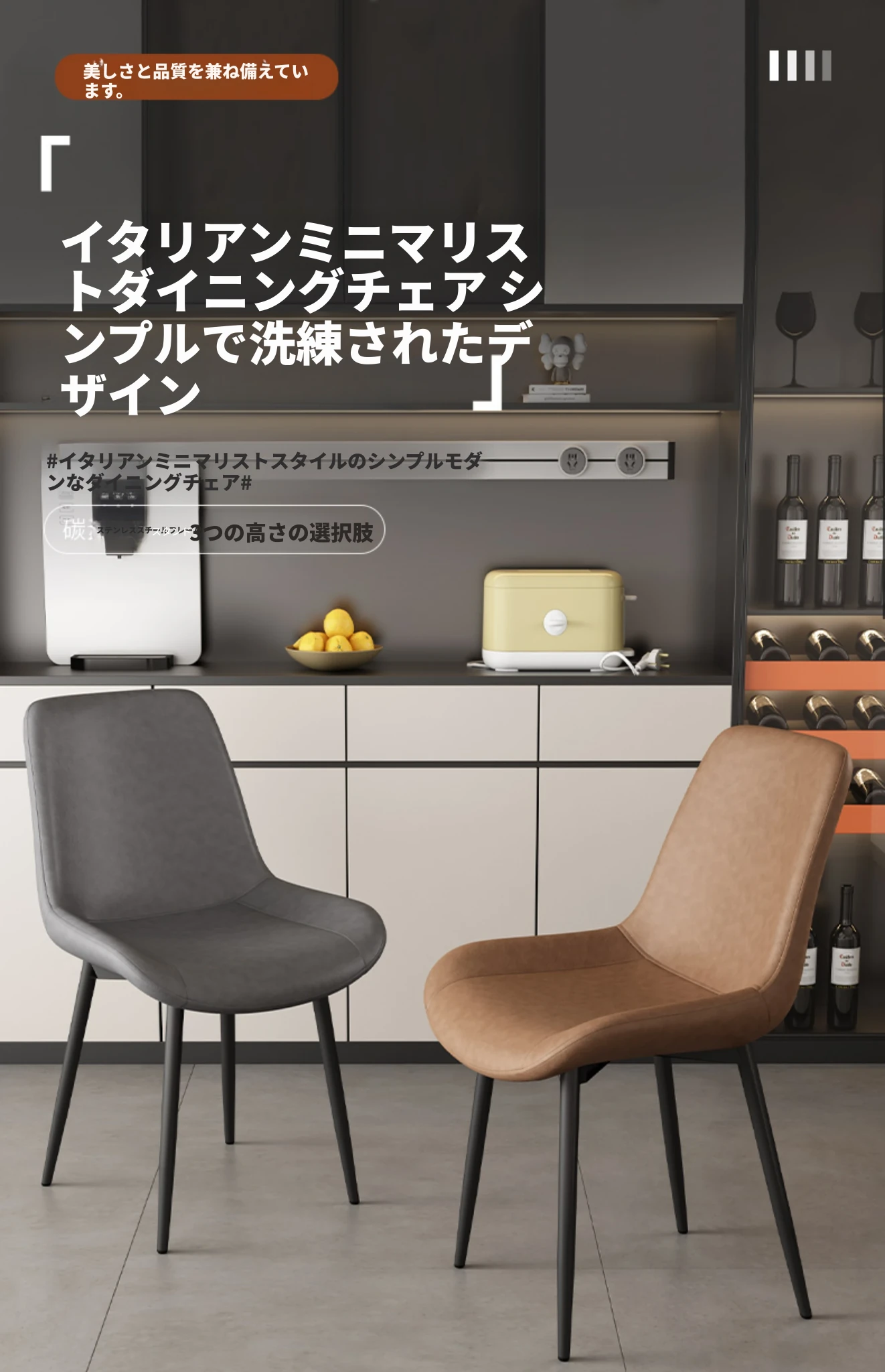 イタリアンミニマルレザー仕上げの高級ダイニングチェア - 家庭用・座面高50cm、55cmのテーブルやアイランドカウンターに最適!洗練されたデザインで、上質な食事空間を演出します。