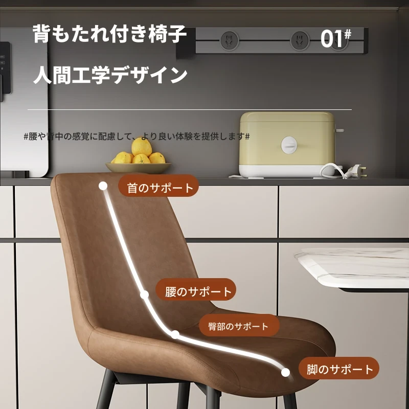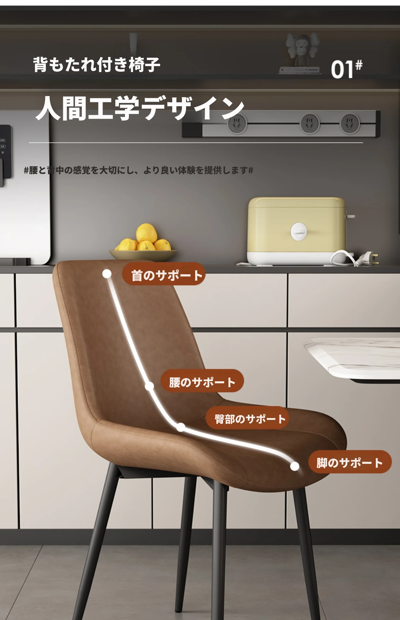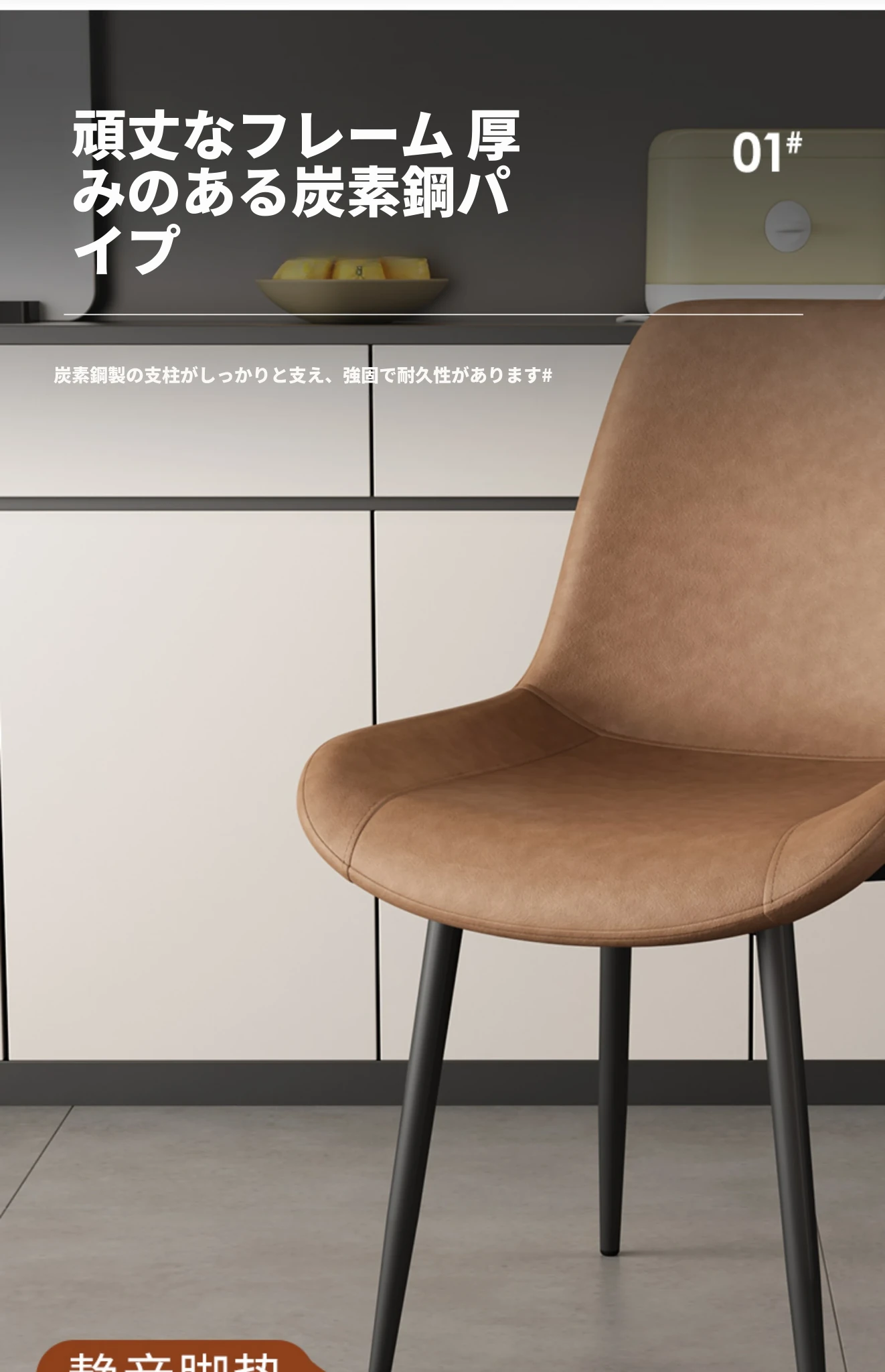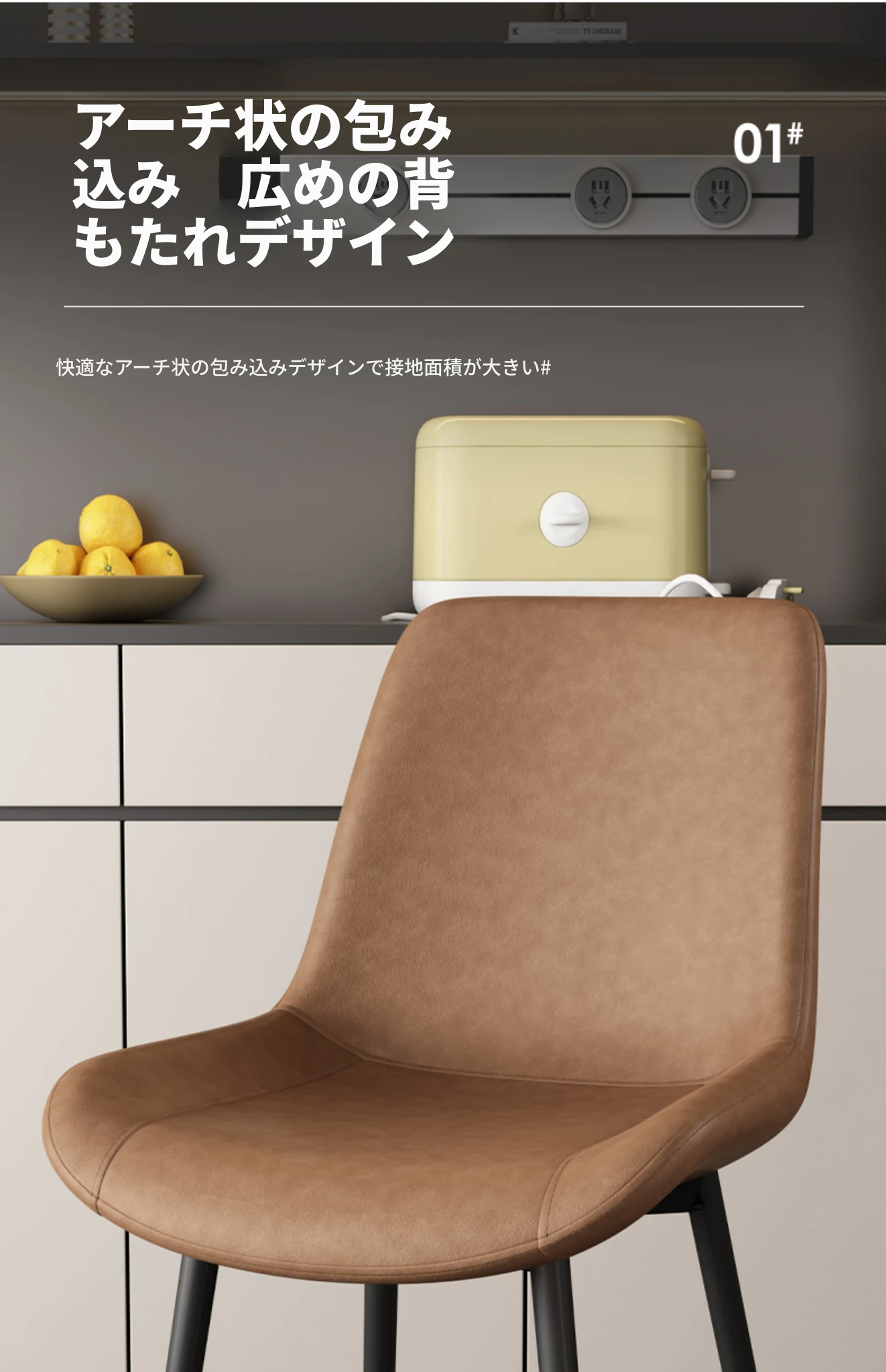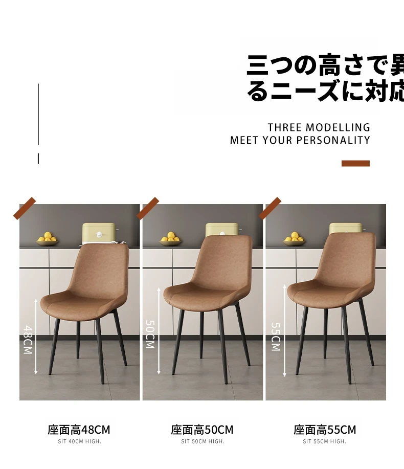 イタリアンミニマルレザー仕上げの高級ダイニングチェア - 家庭用・座面高50cm、55cmのテーブルやアイランドカウンターに最適!洗練されたデザインで、上質な食事空間を演出します。