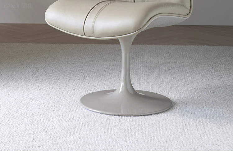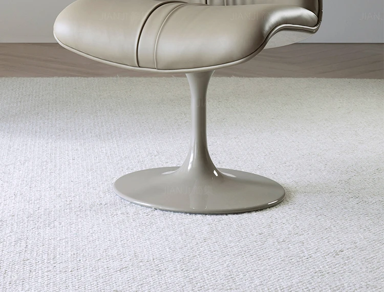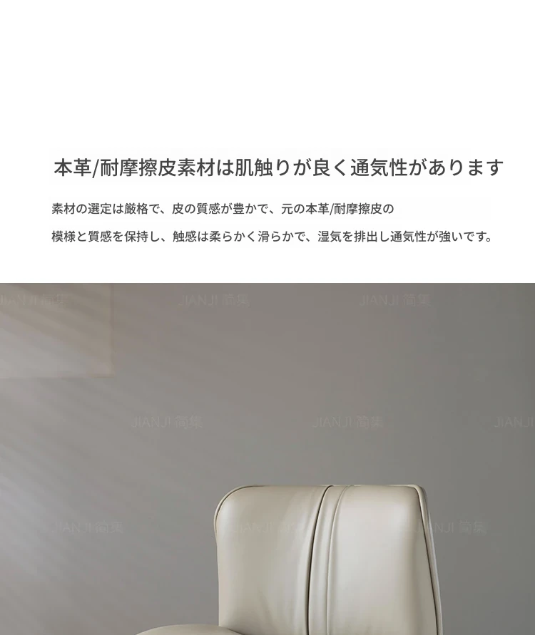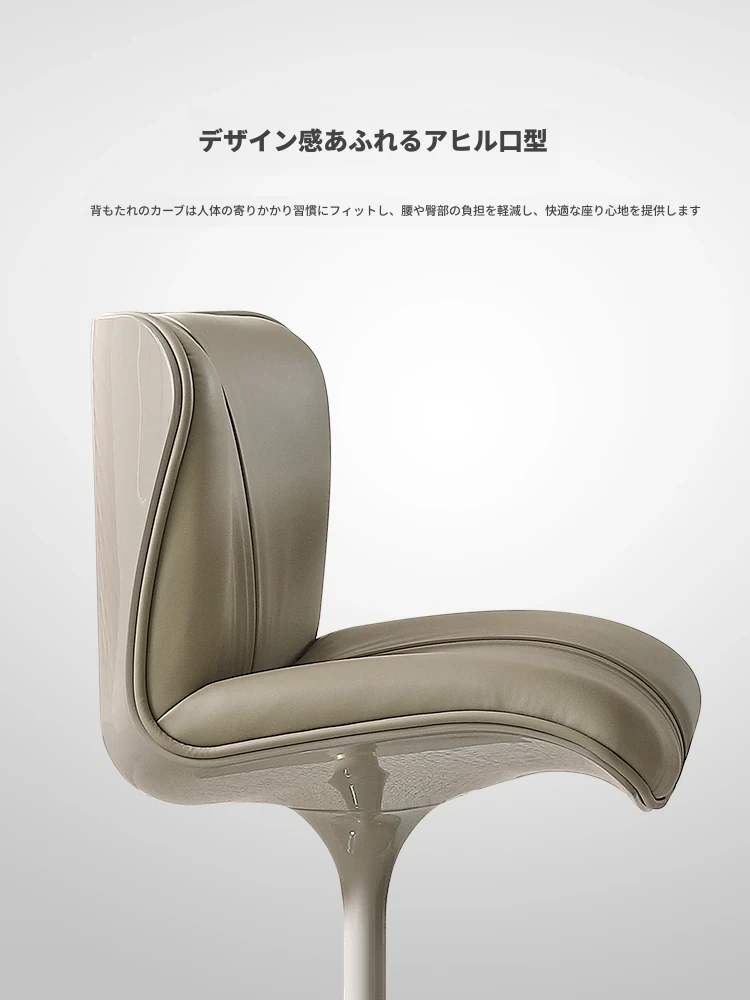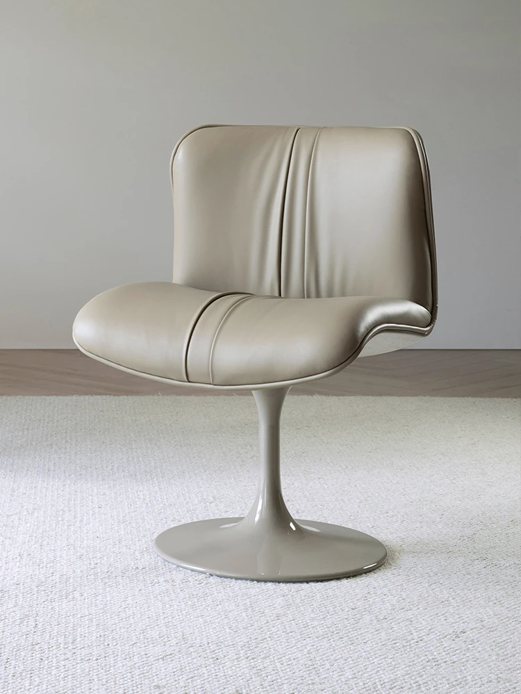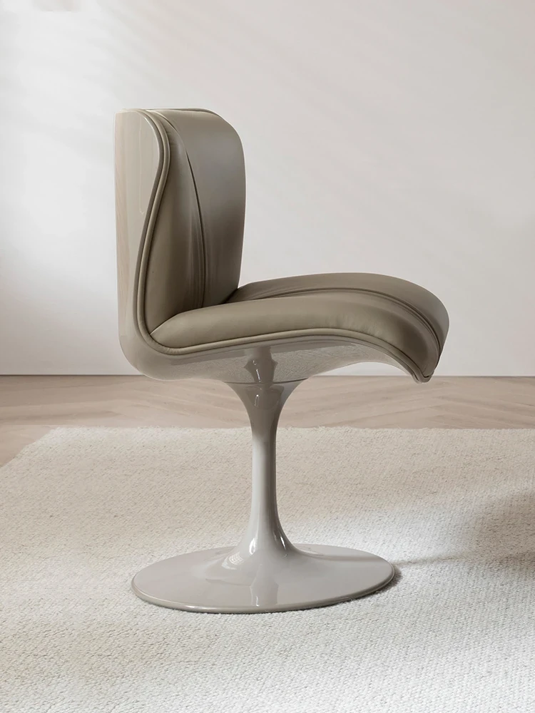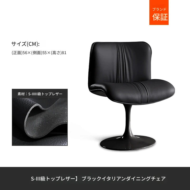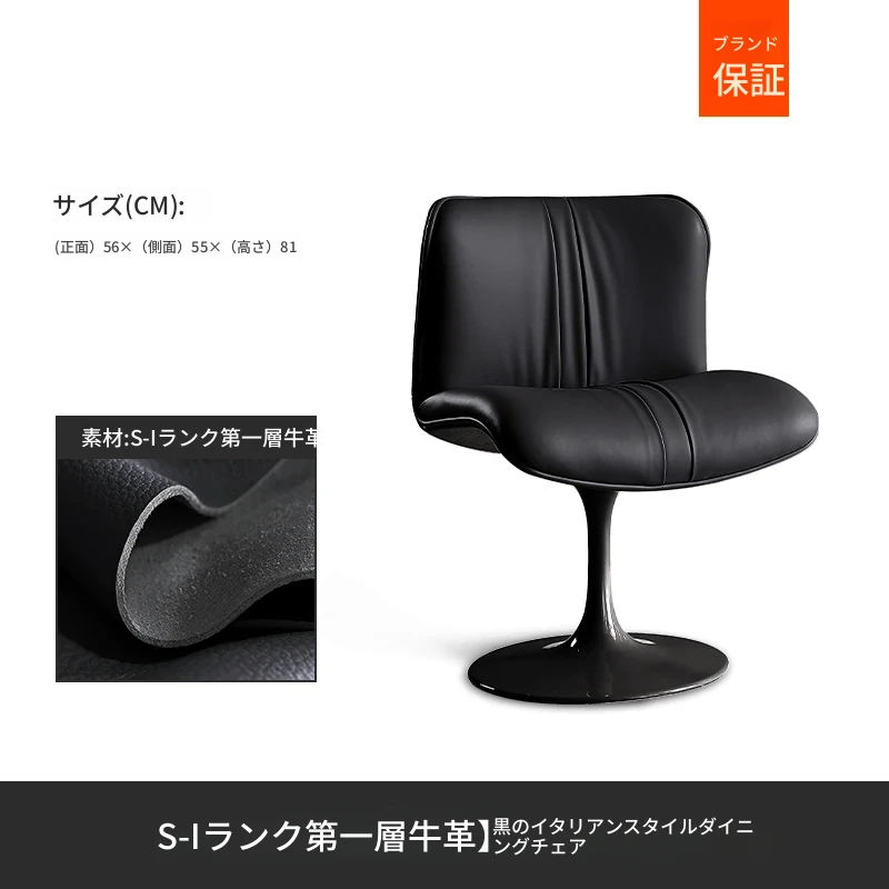 イタリアンミニマリズムの高級レザー製回転ダイニングチェア - モダンデザインのリッチな雰囲気を演出する、軽やかな贅沢感のある家庭用レストランチェア。