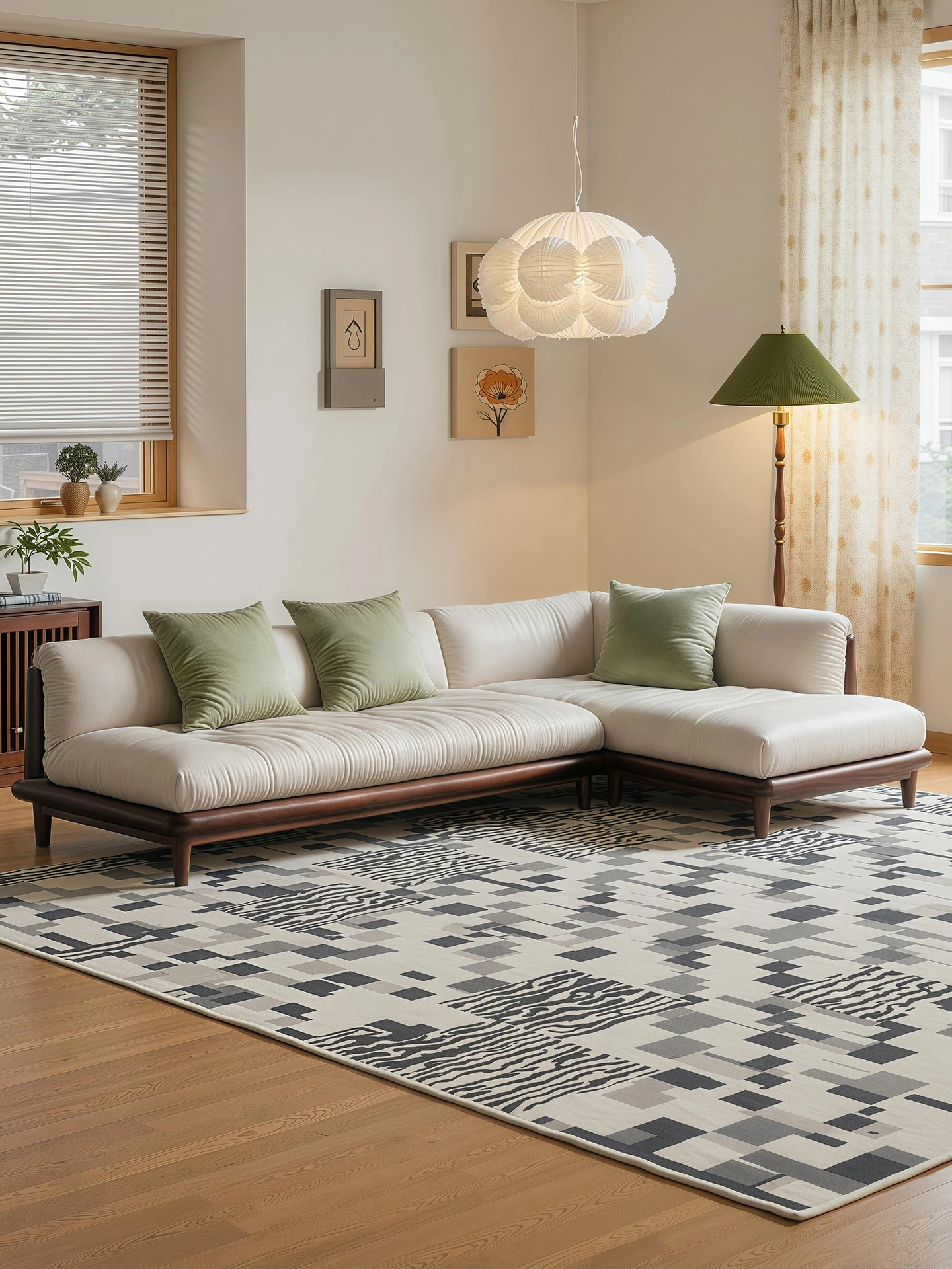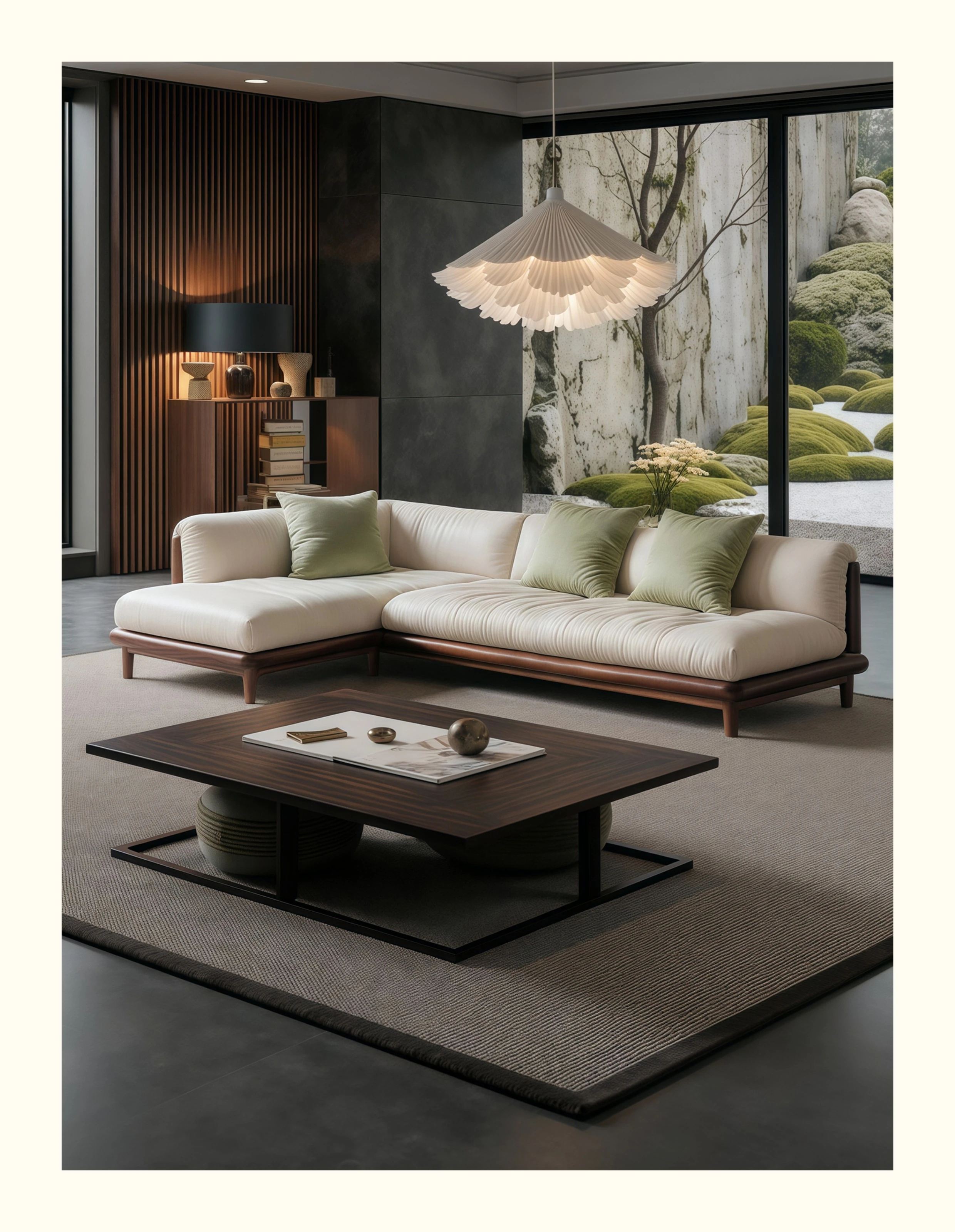 イタリアンミニマルデザインの無垢材ソファセット - ヴィラスタイルのラグジュアリーな曲線型コーナーソファ。洗練された高級感で、リビングルームにぴったりのスタイリッシュな選択。
