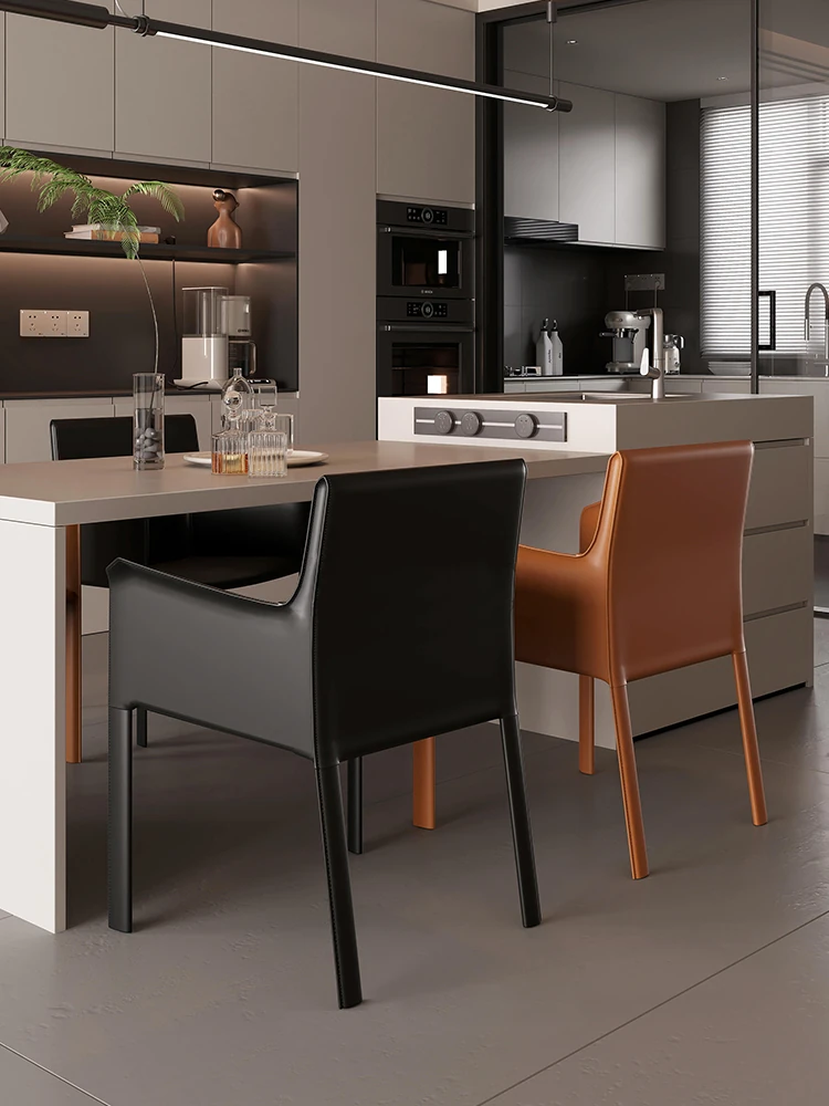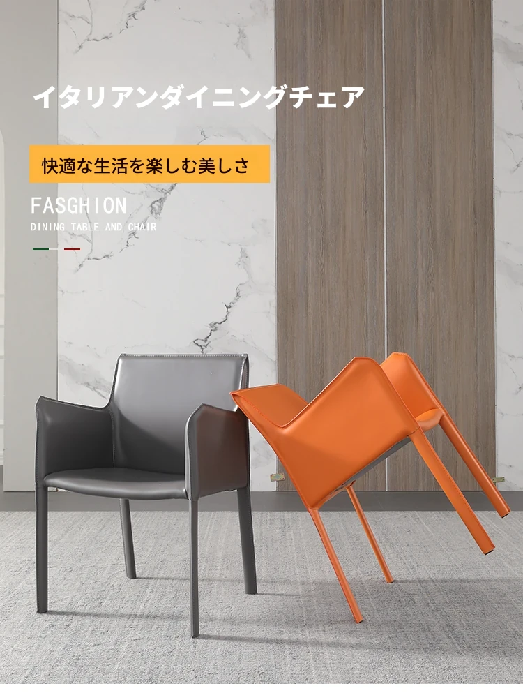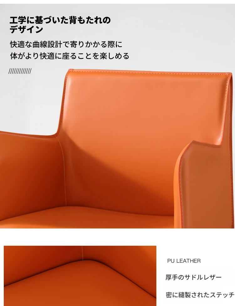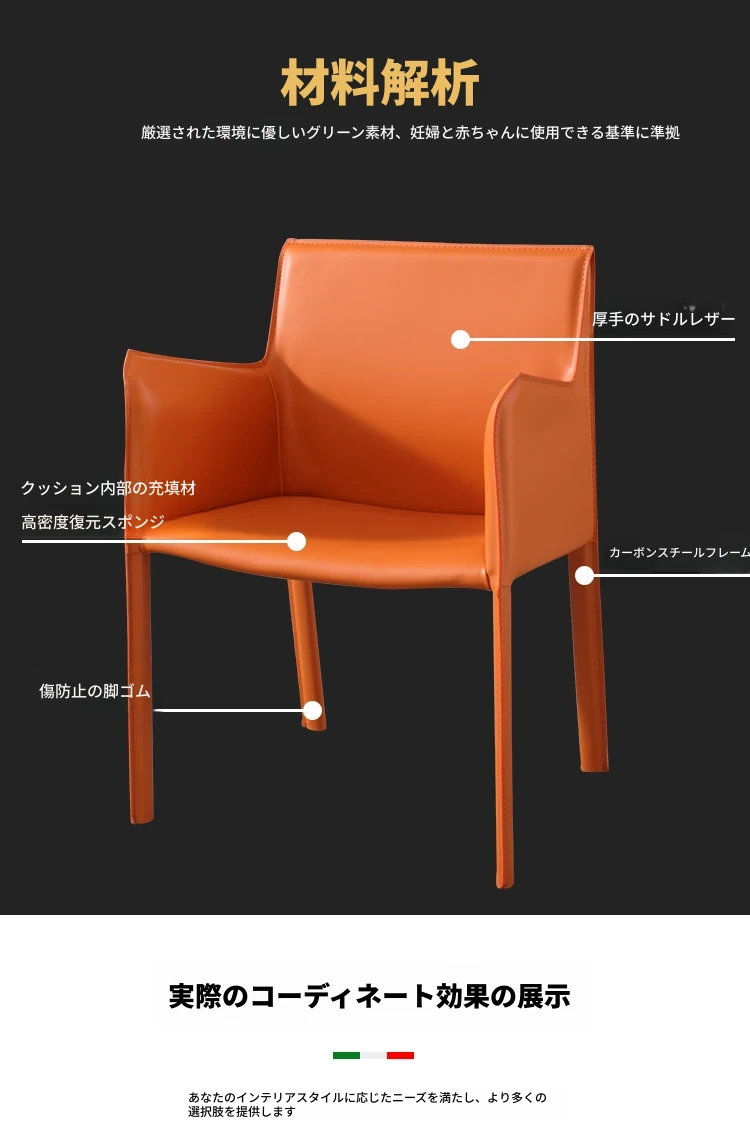 イタリアンレザーのサドルチェア|北欧スタイルの軽やかさと快適さを兼ね備えたダイニングチェア|長時間座っても疲れにくいリラックスチェア|モダンでミニマルなデザインのデスクチェア