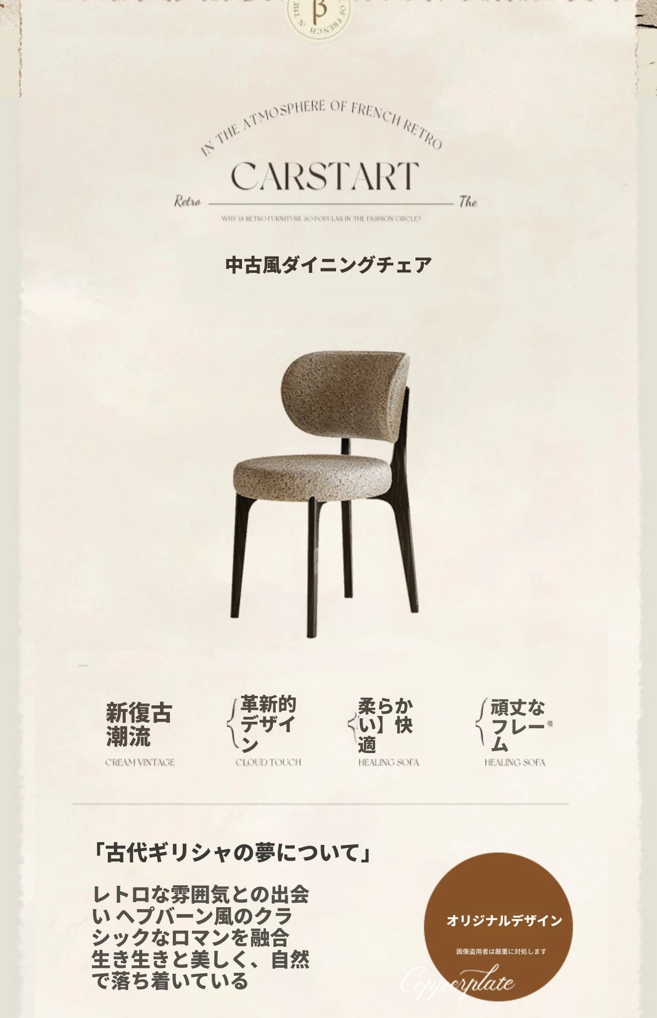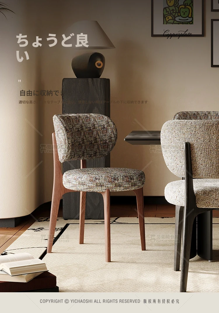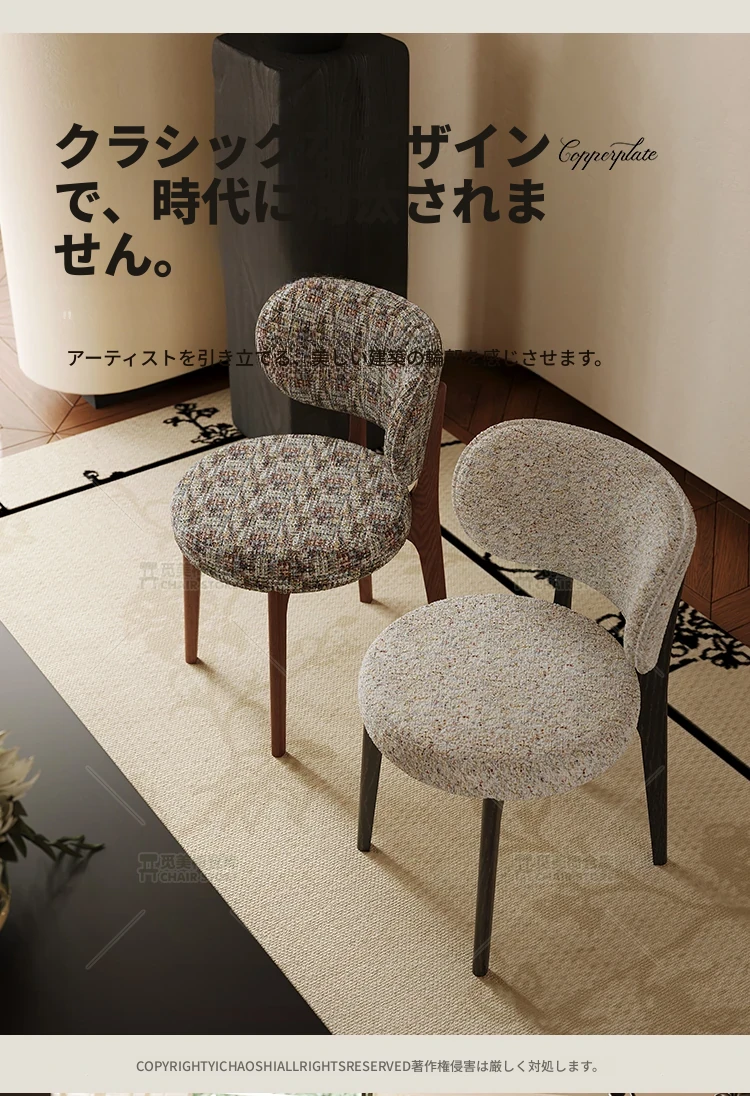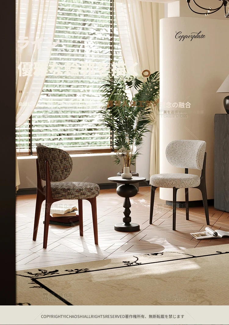 イタリアンスタイルの無垢材クリーム色ダイニングチェア、シンプルで洗練されたデザイン。ブラック&ホワイトのトレンドスタイル、インスタ映えする軽やかなラグジュアリー感。フレンチスタイルの背もたれで、食卓を華やかに演出します!