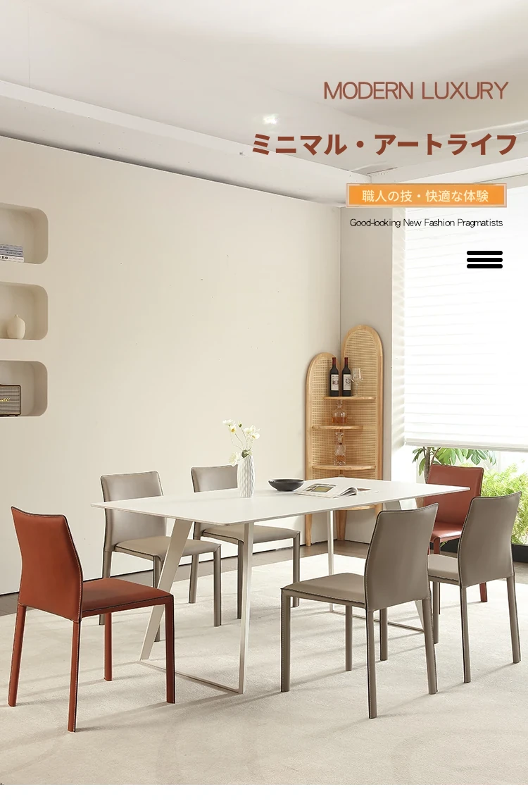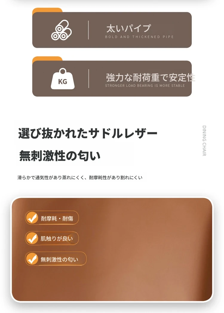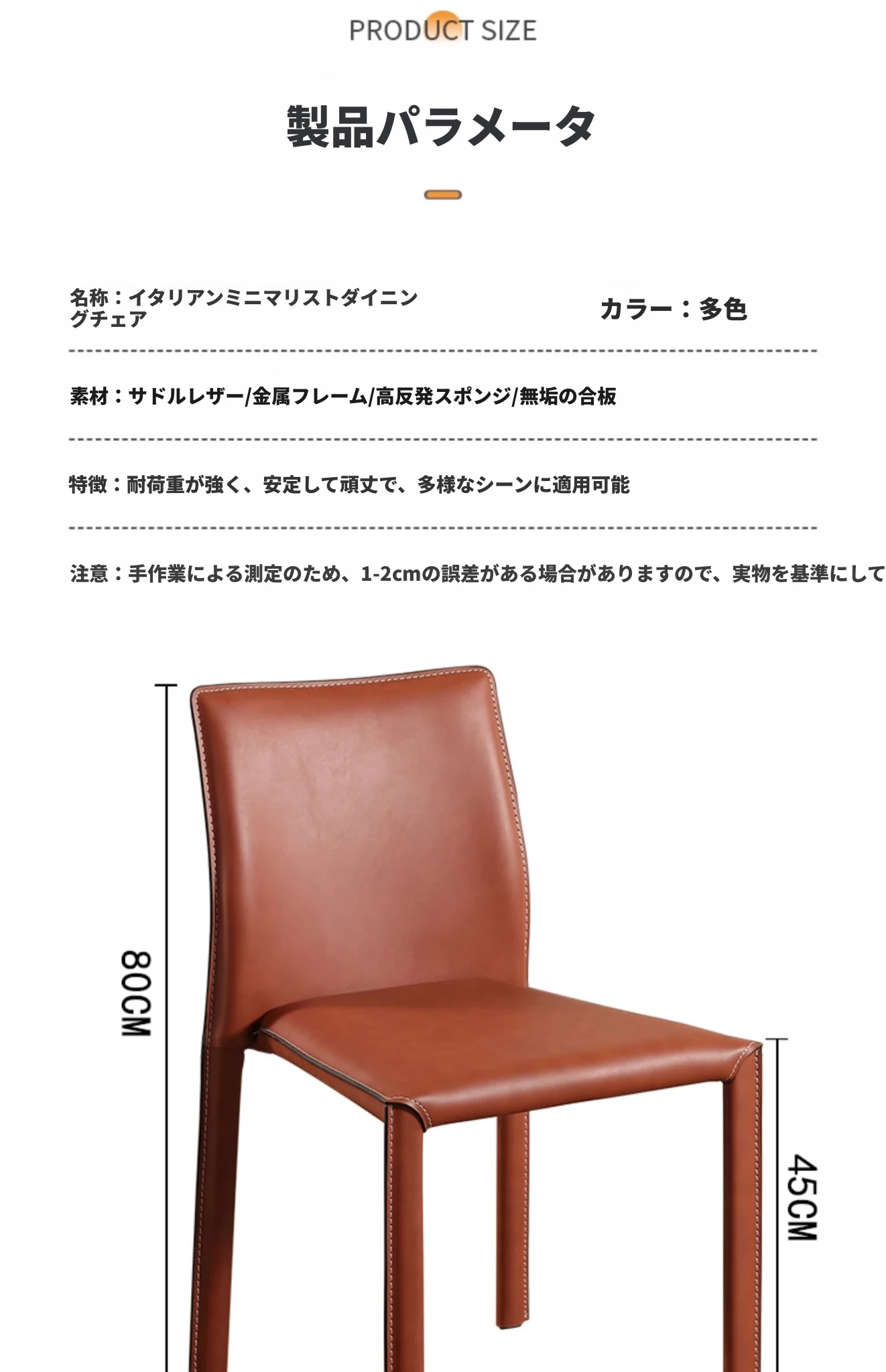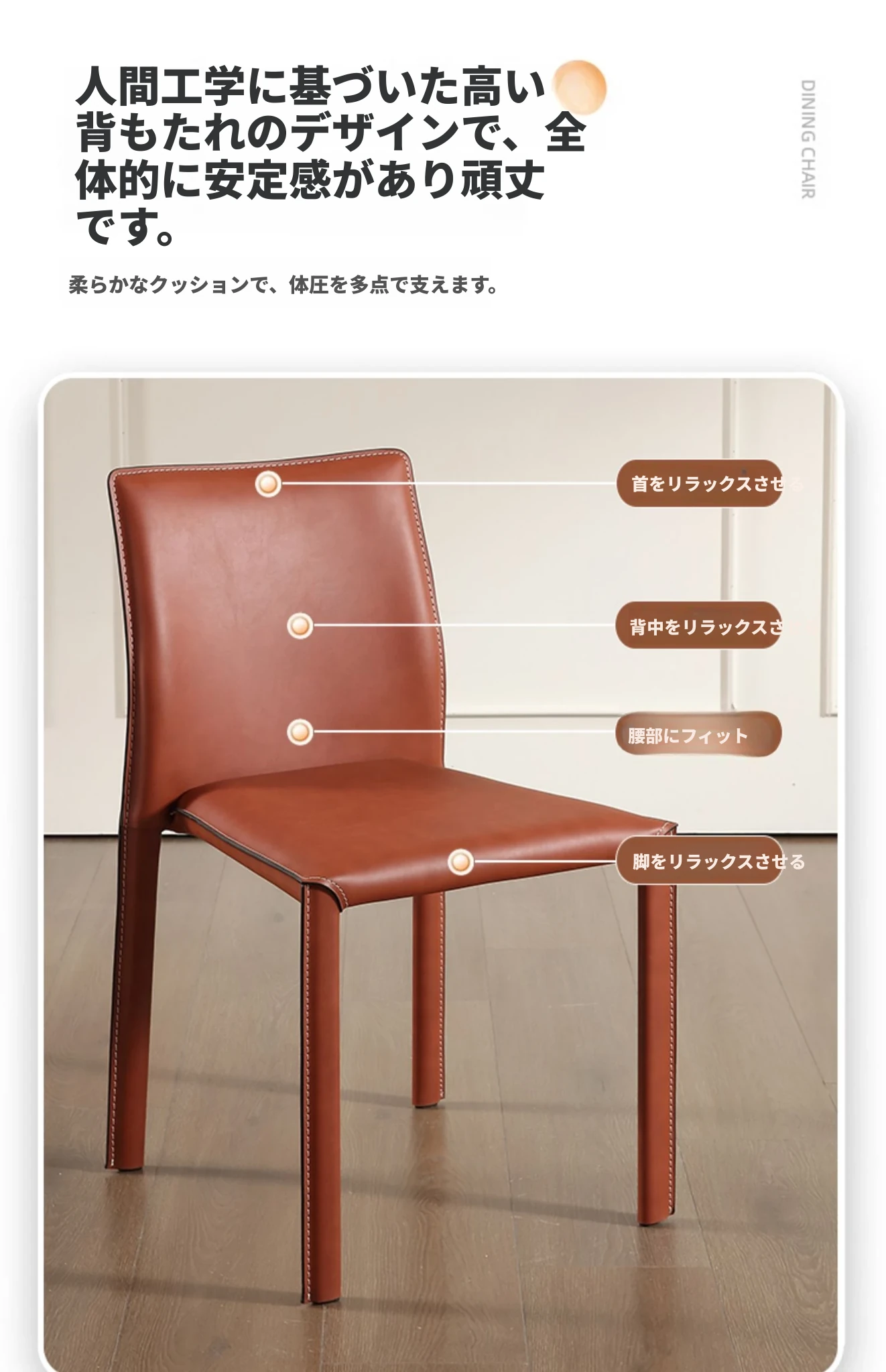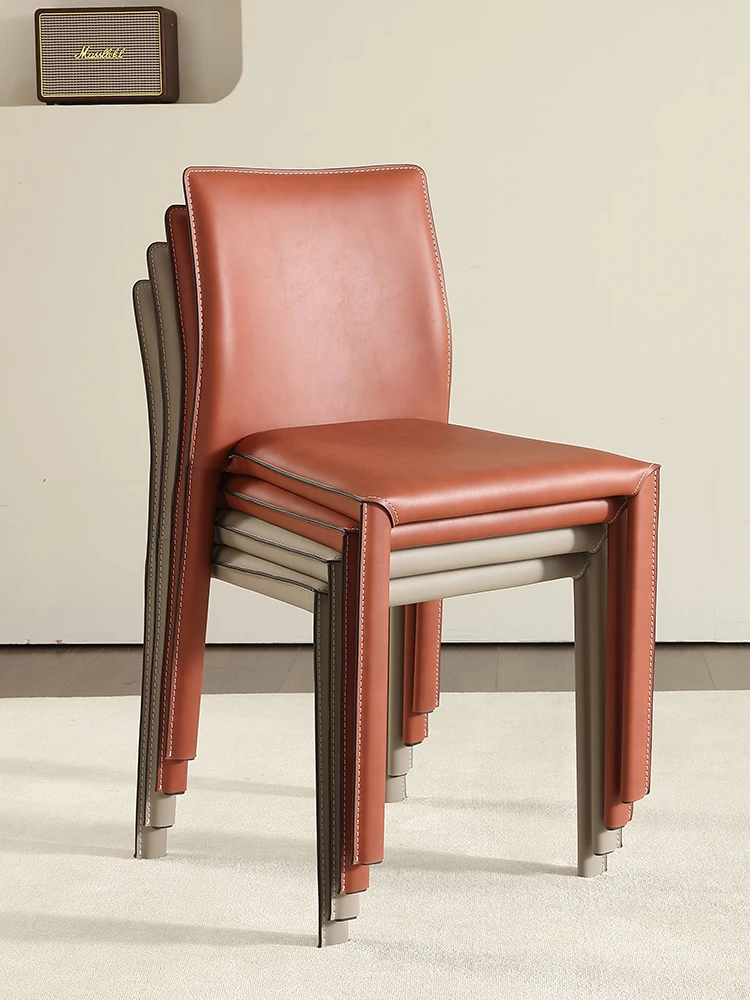 イタリアンスタイルのスタッキングダイニングチェア|高級サドルレザー使用|シンプルでおしゃれ|省スペース設計|北欧風ダイニングにぴったりの椅子