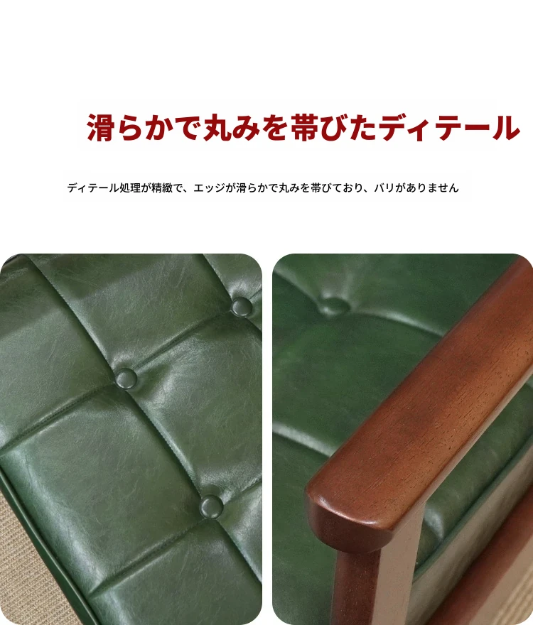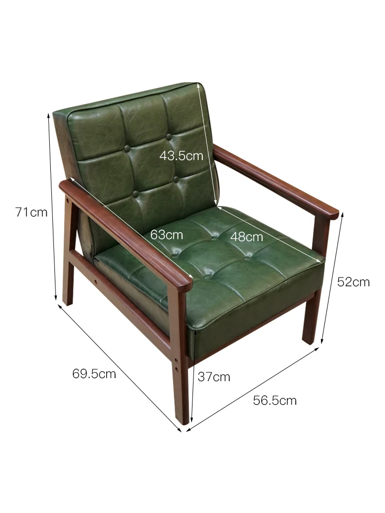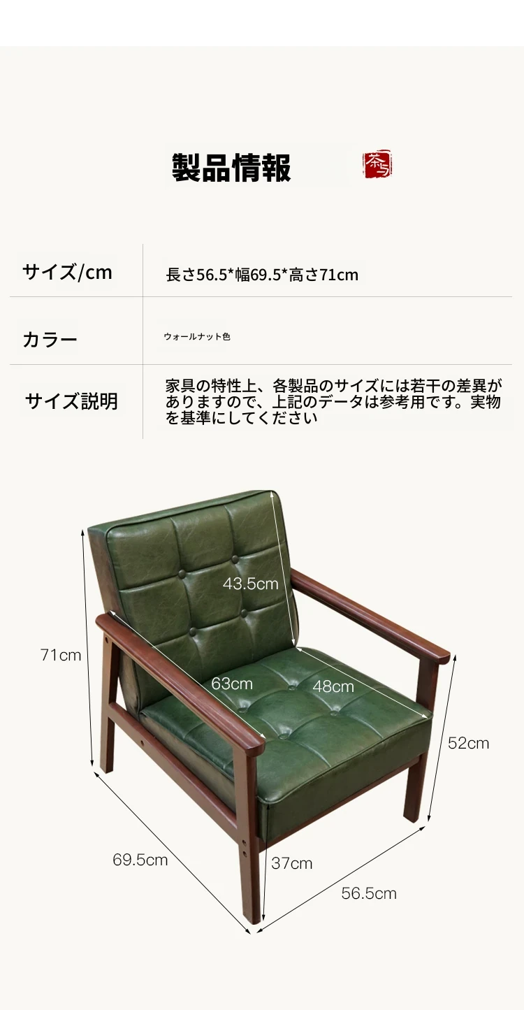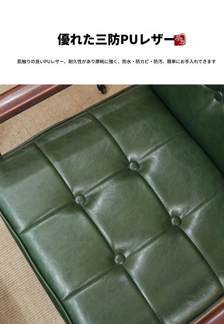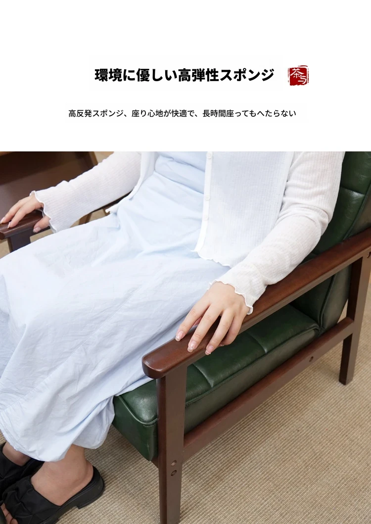 【エメラルドスクエアソファチェア】シンプルでおしゃれなレザー製一人用ソファ、リビングにぴったりな木製背もたれ付き。快適なくつろぎ空間を演出!