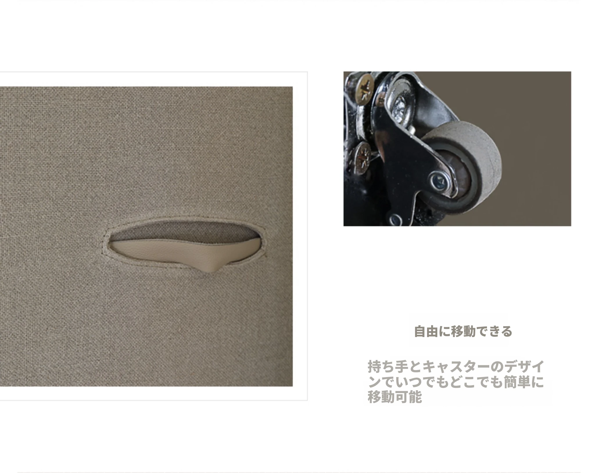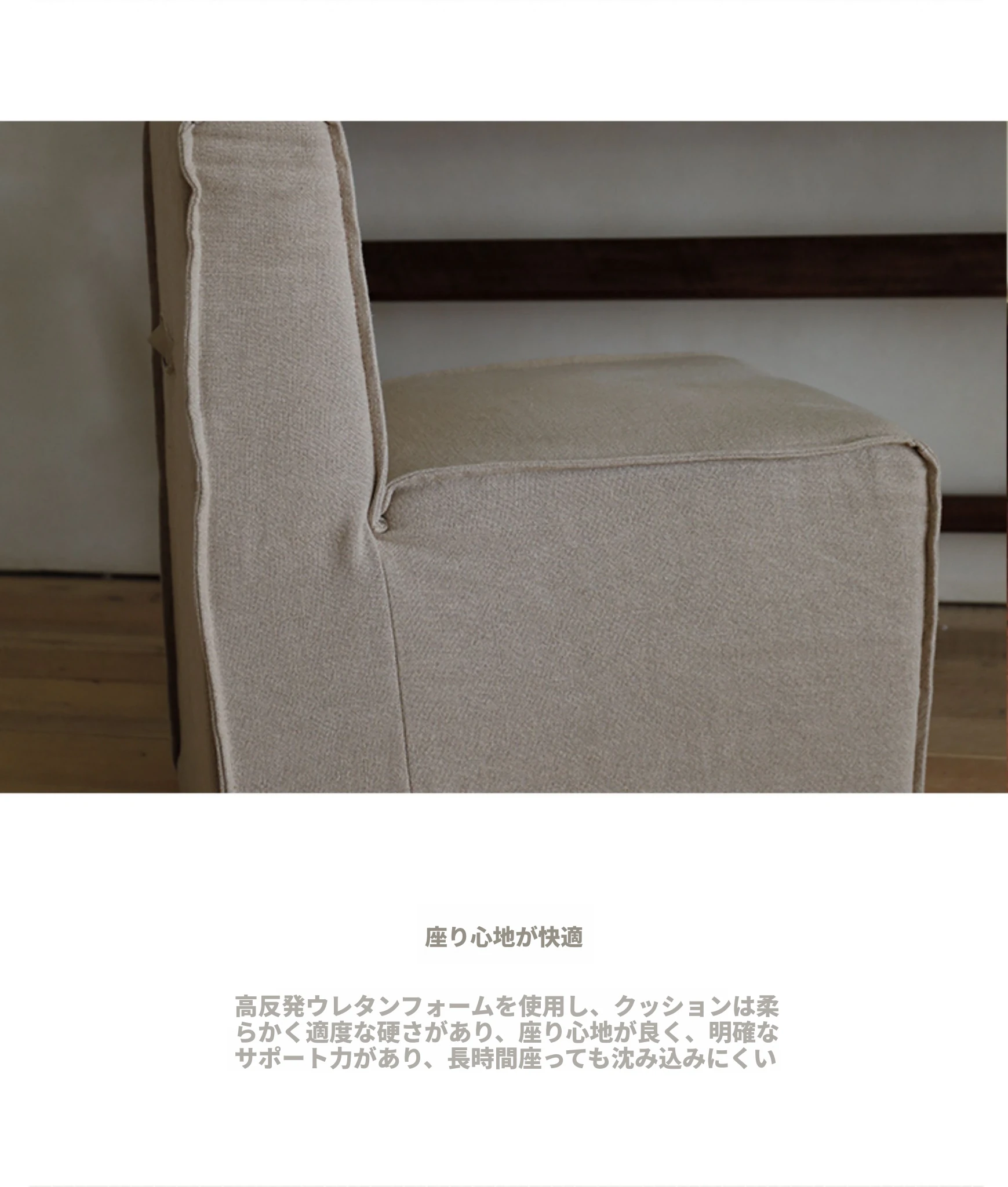 移動可能な和風一人用ソファー、リネン素材のコンビネーション家具。柔らかなクッション付きでお手入れ簡単、キャスター付きで楽々移動!おしゃれなダイニングやリビングにぴったりの洗えるソファです。