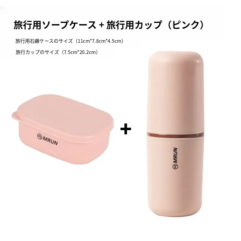 蓋付き石鹸ケース(排水ネット付き)+旅行洗面カップ【ピンク】