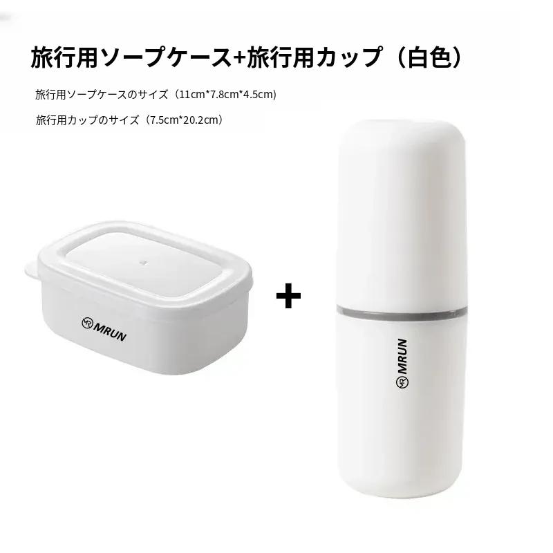 蓋付き石鹸ケース(排水ネット付き)+旅行洗面カップ【白】