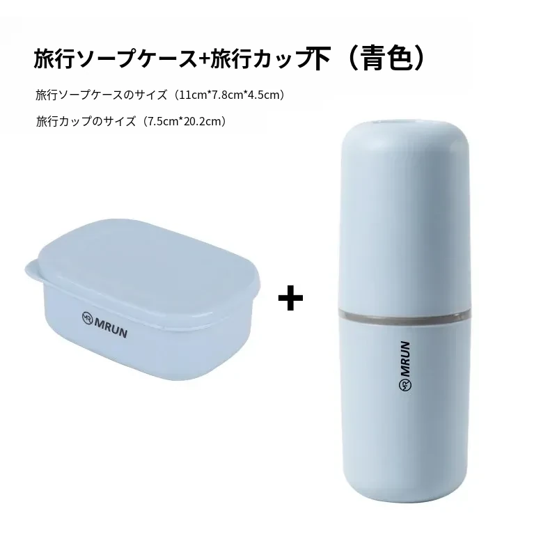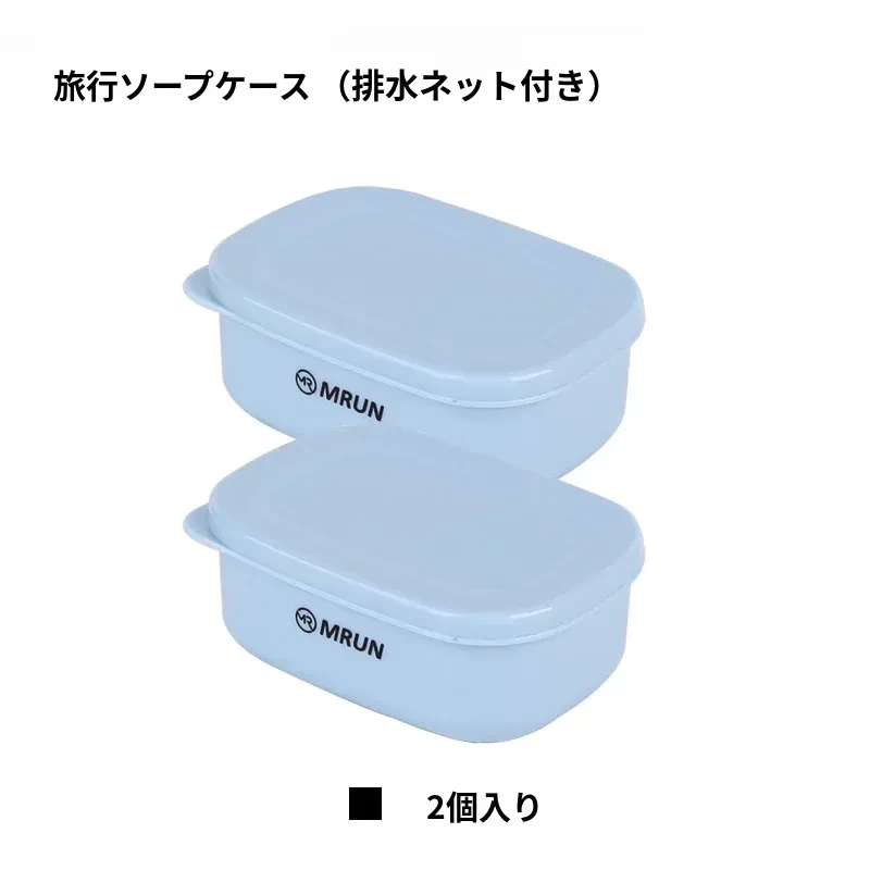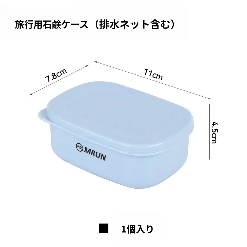 蓋付き石鹸ケース(排水ネット付き)+旅行洗面カップ【青】