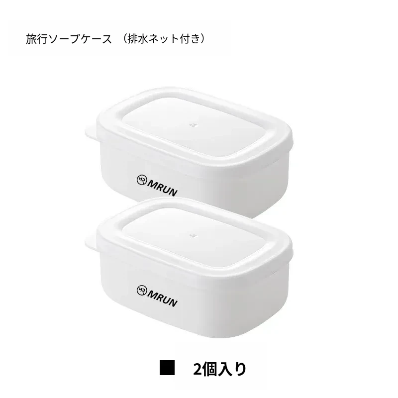 【2個装】白い蓋付き石鹸ケース(排水ネット付き)