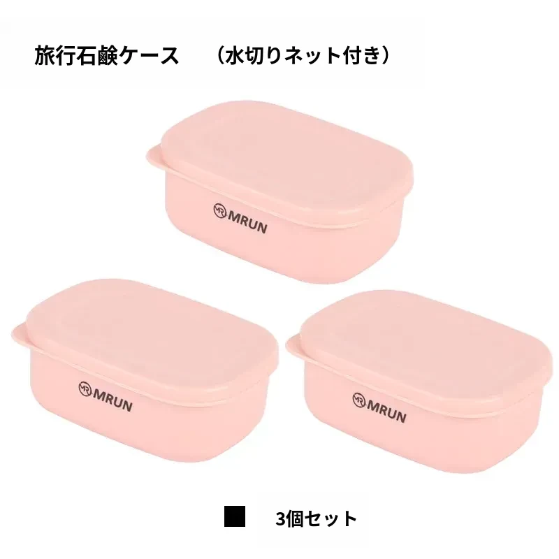 【3個装】ピンクの蓋付き石鹸ケース(排水ネット付き)