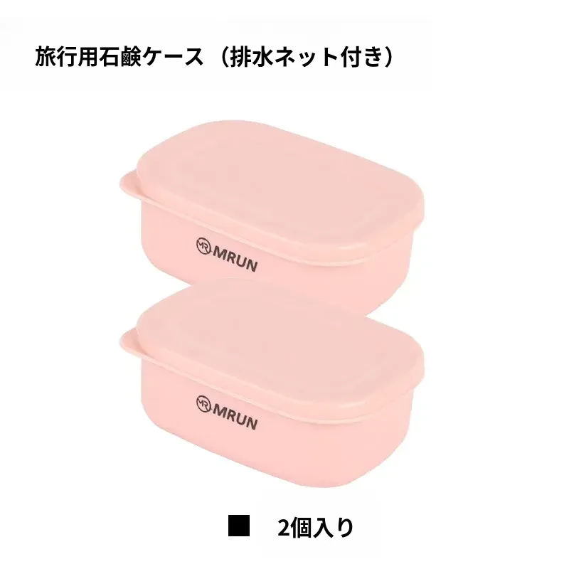 【2個装】ピンクの蓋付き石鹸ケース(排水ネット付き)