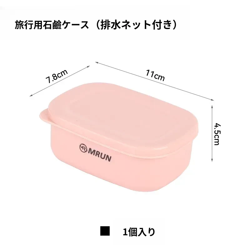 【1個装】ピンクの蓋付き石鹸ケース(排水ネット付き)