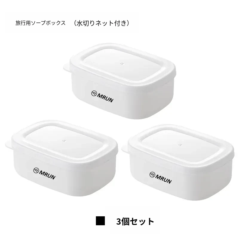 【3個装】白い蓋付き石鹸ケース(排水ネット付き)