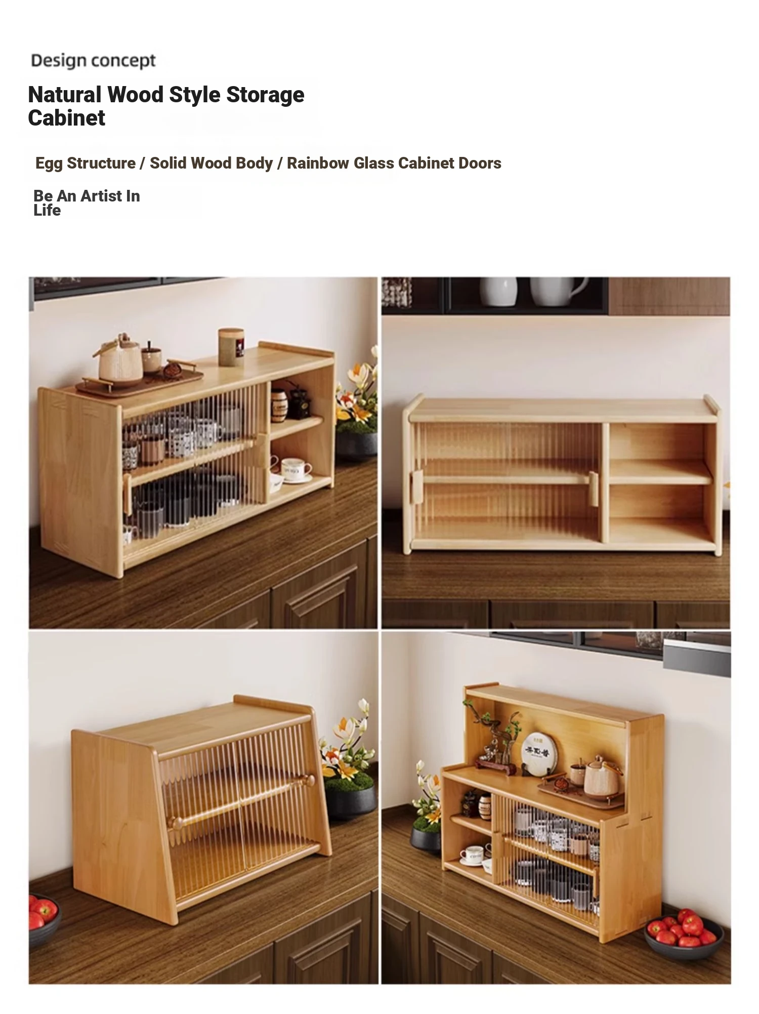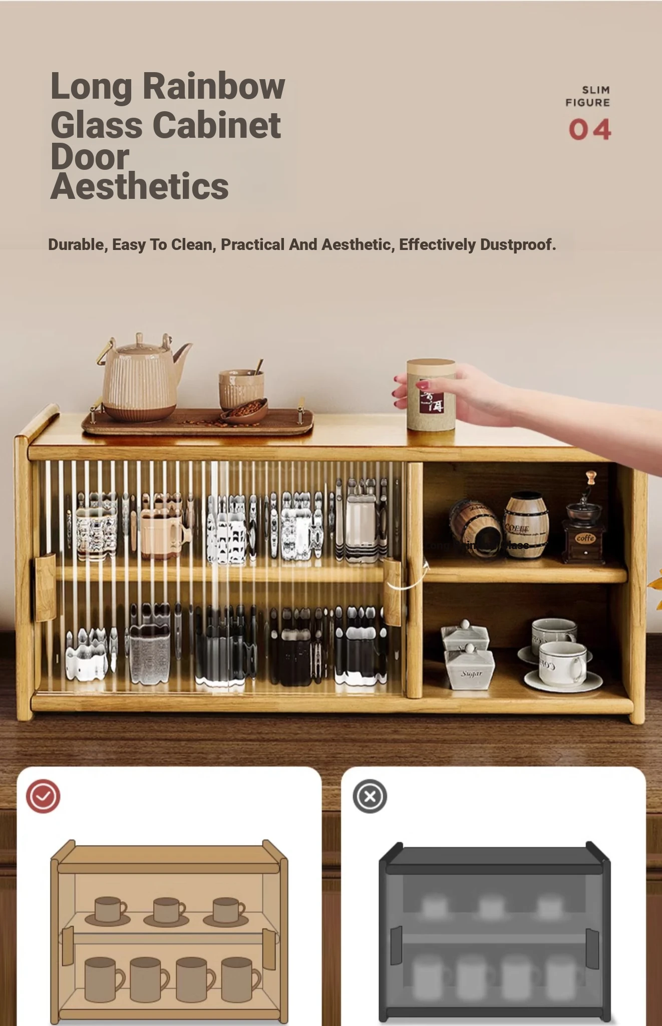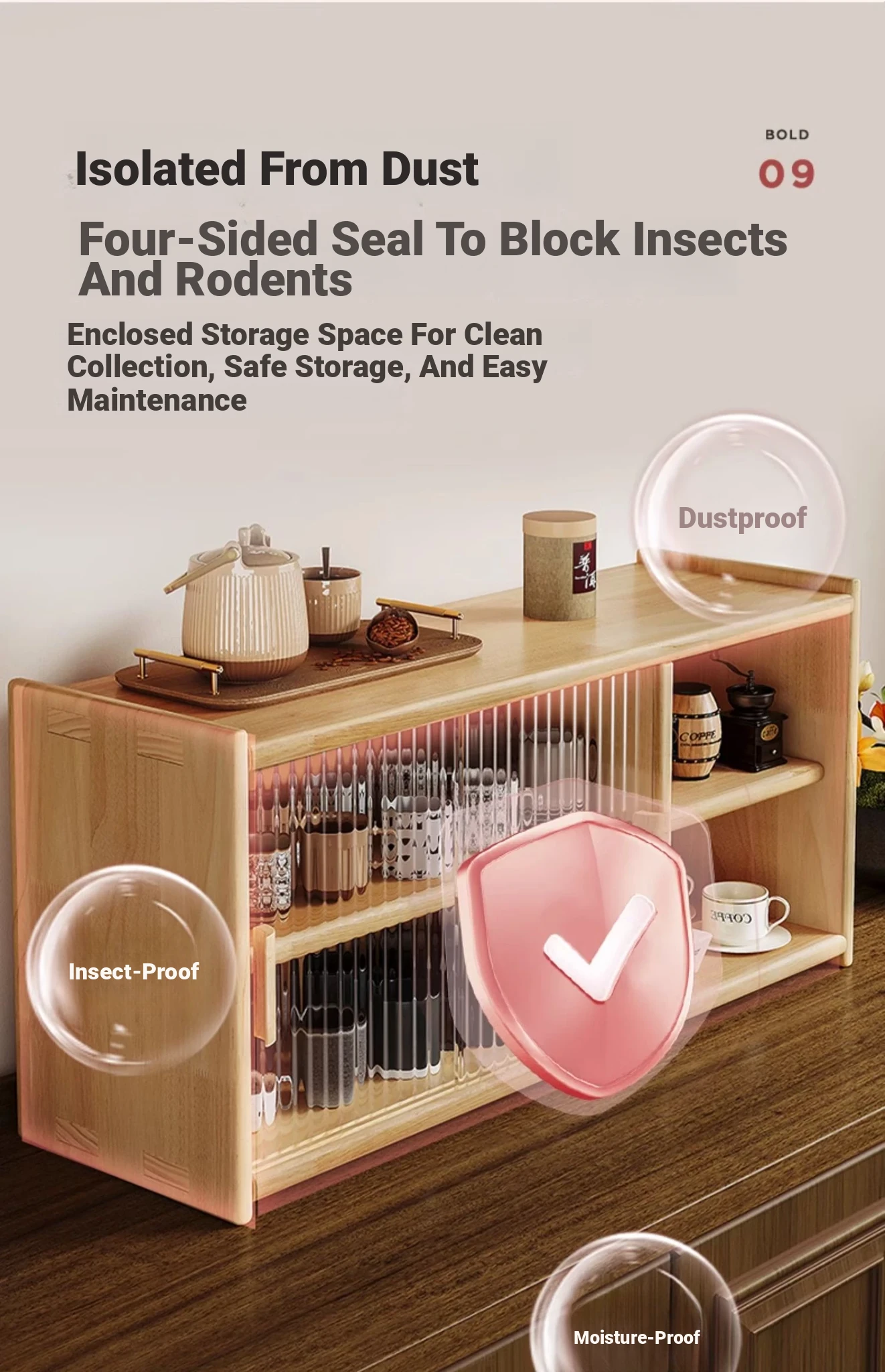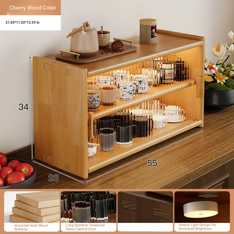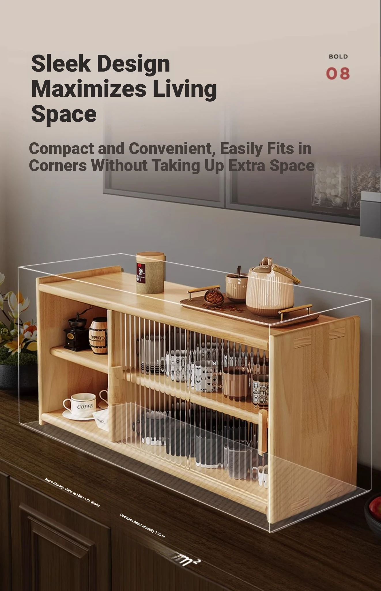 Japanese Style Solid Wood Desk Organizer with Glass Doors - Dustproof Cup Storage Rack, Perfect for Home and Office Use, Ideal for Keeping Your Workspace Tidy and Stylish