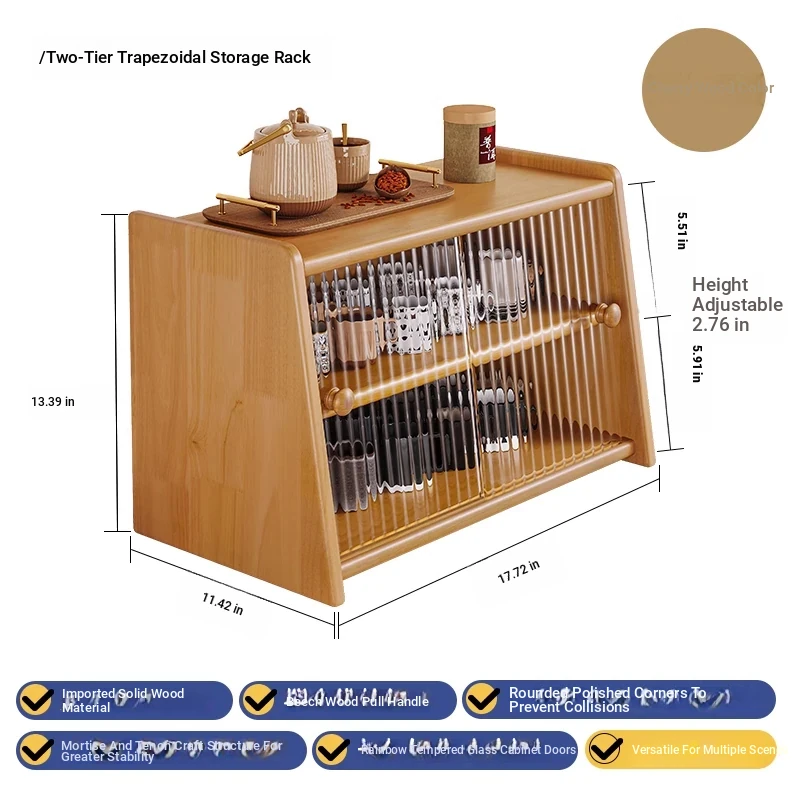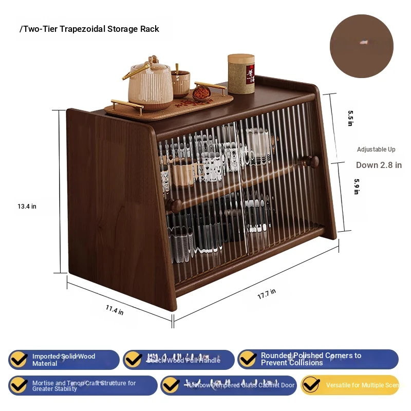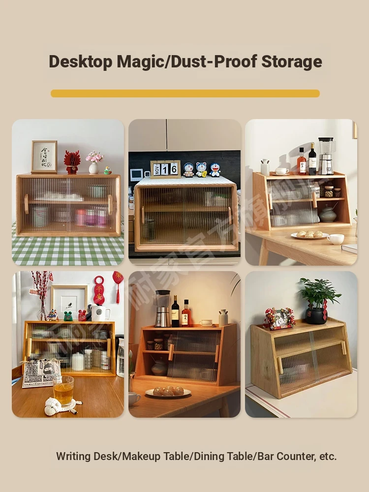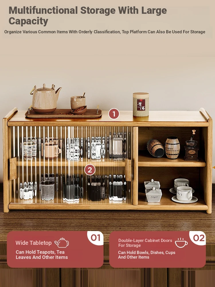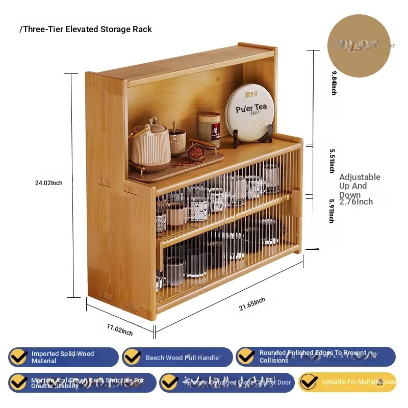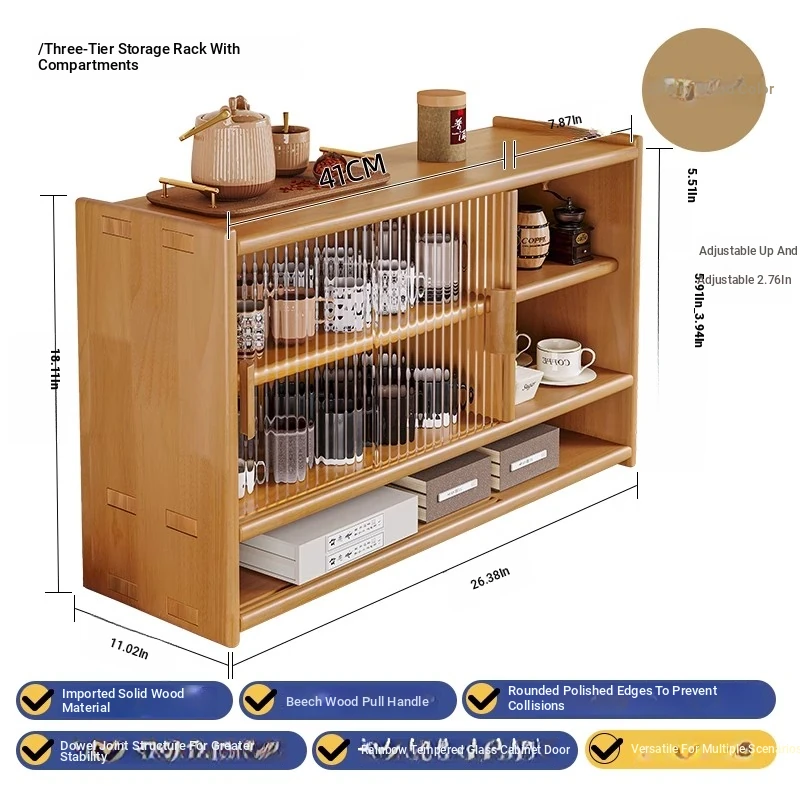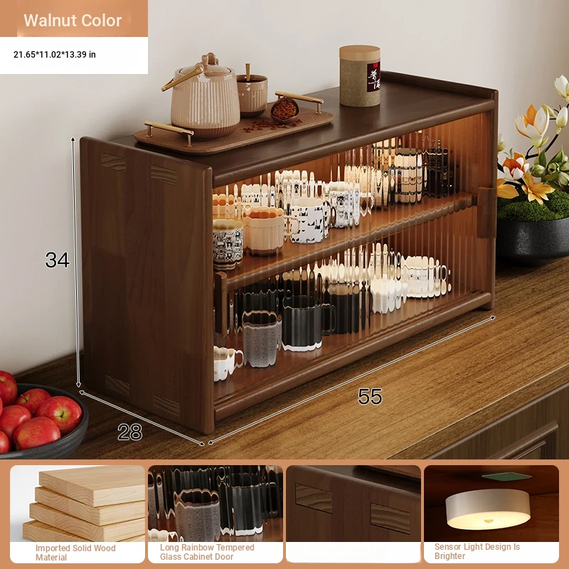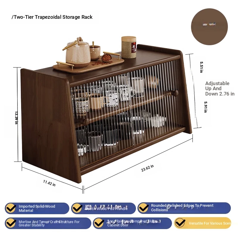 Japanese Style Solid Wood Desk Organizer with Glass Doors - Dustproof Cup Storage Rack, Perfect for Home and Office Use, Ideal for Keeping Your Workspace Tidy and Stylish