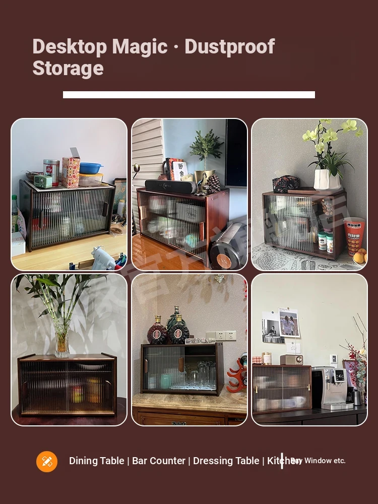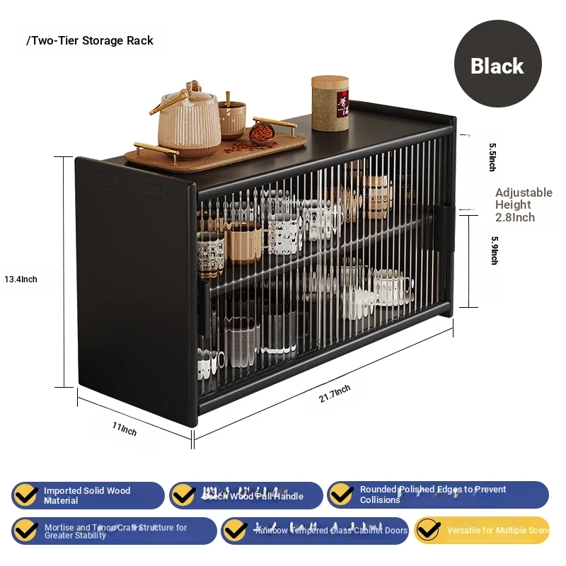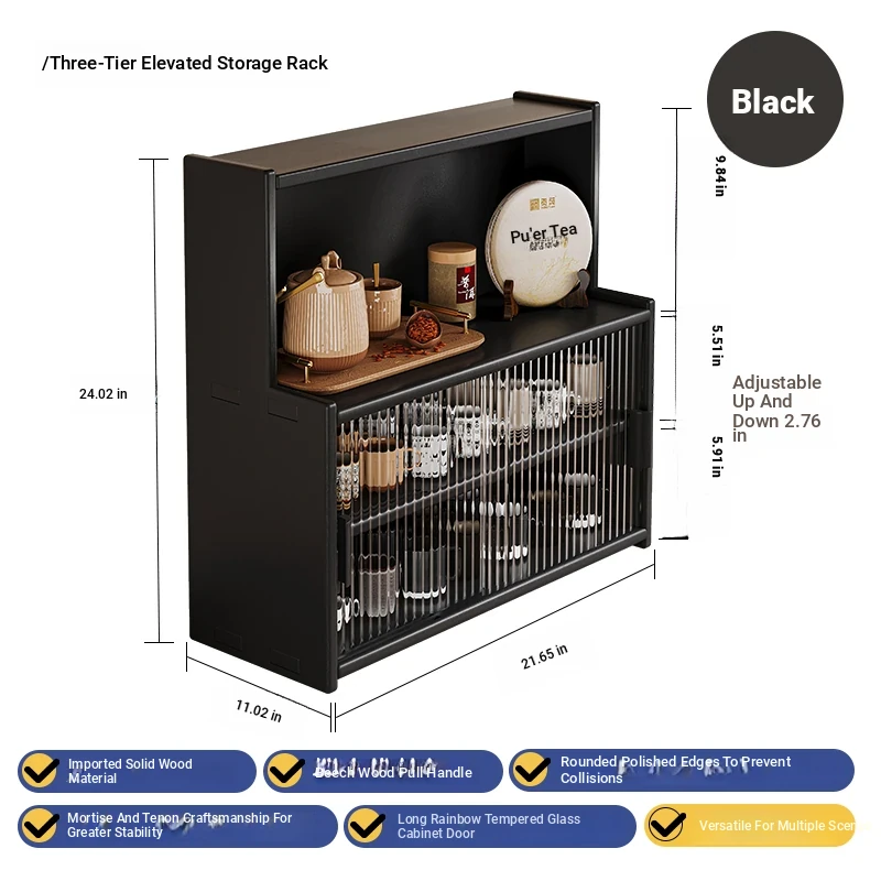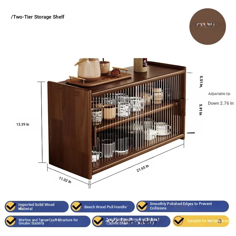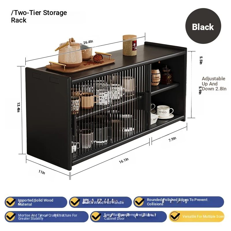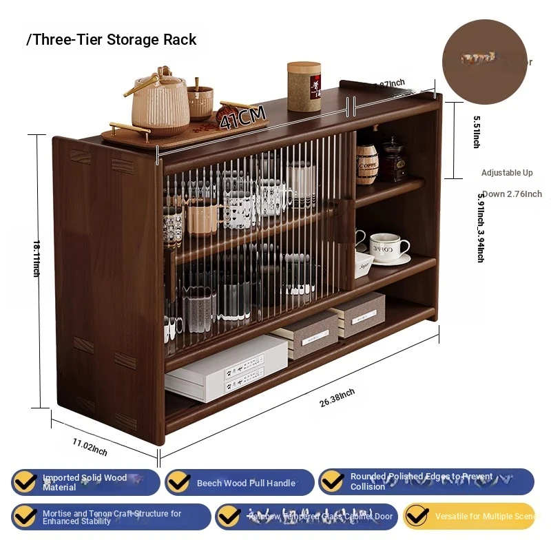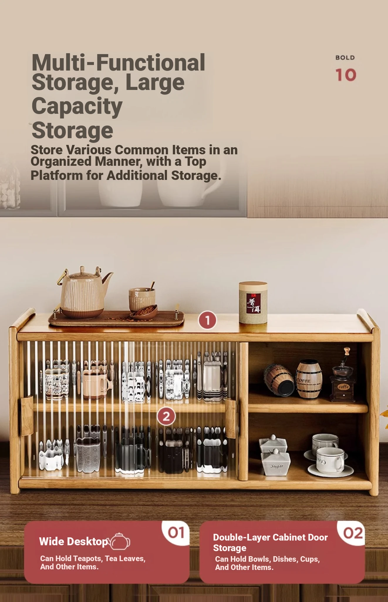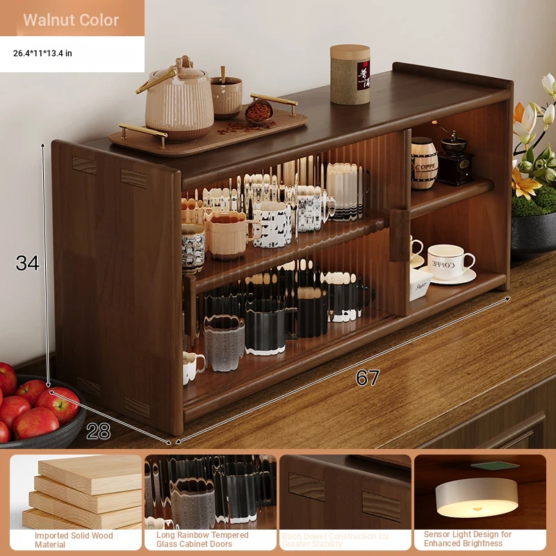 Japanese Style Solid Wood Desk Organizer with Glass Doors - Dustproof Cup Storage Rack, Perfect for Home and Office Use, Ideal for Keeping Your Workspace Tidy and Stylish