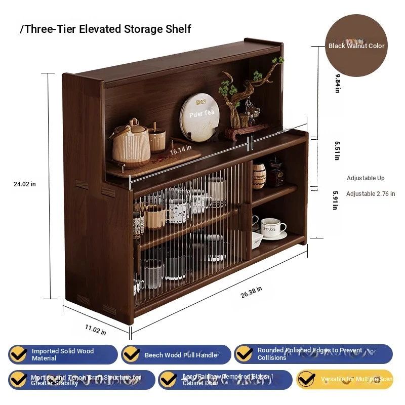 [3-Layer Heightened with Grids] 67X28X61Cm-Black Walnut Color