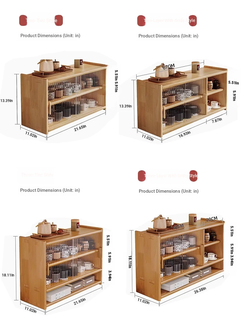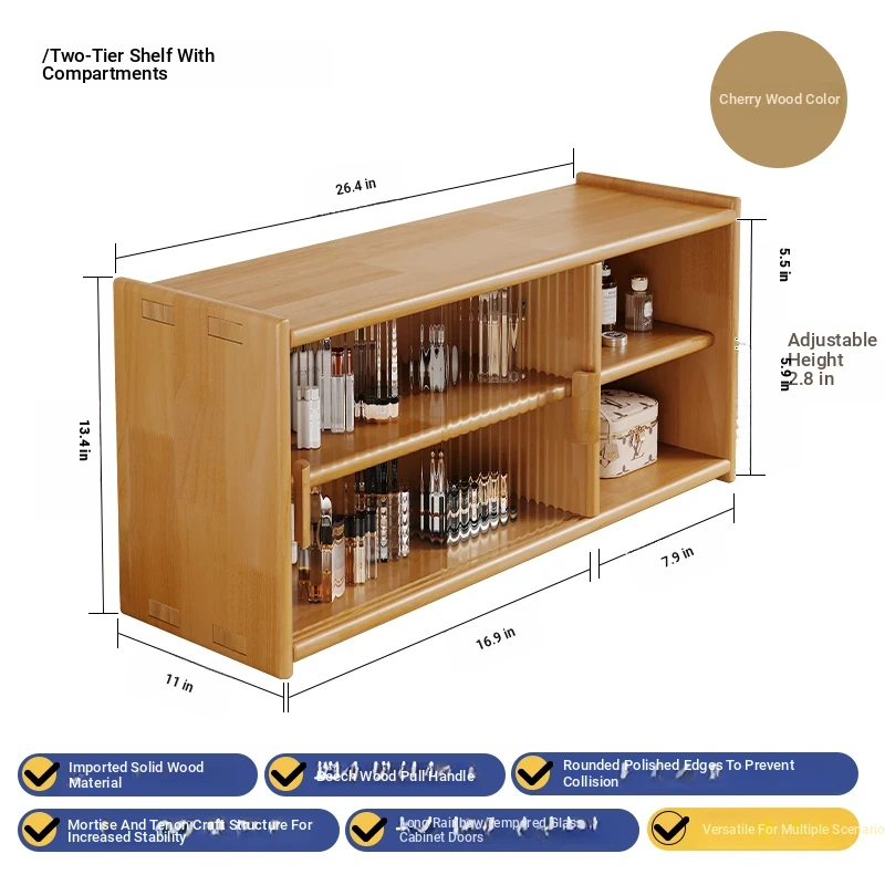 [2 Layers with Grid] 67X28X34Cm-Cherry Wood Color