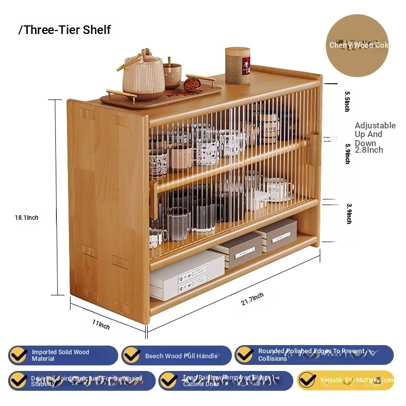 [3-Layer Heightened with Grids] 67X28X61Cm-Cherry Wood Color